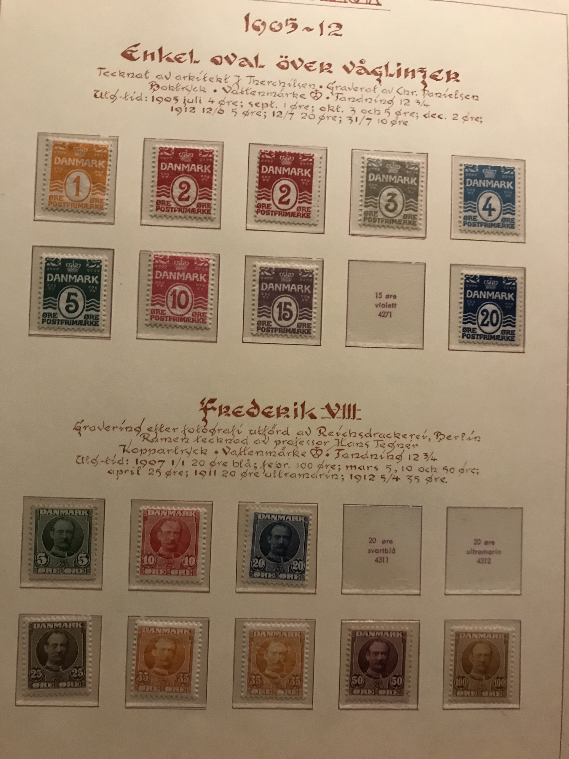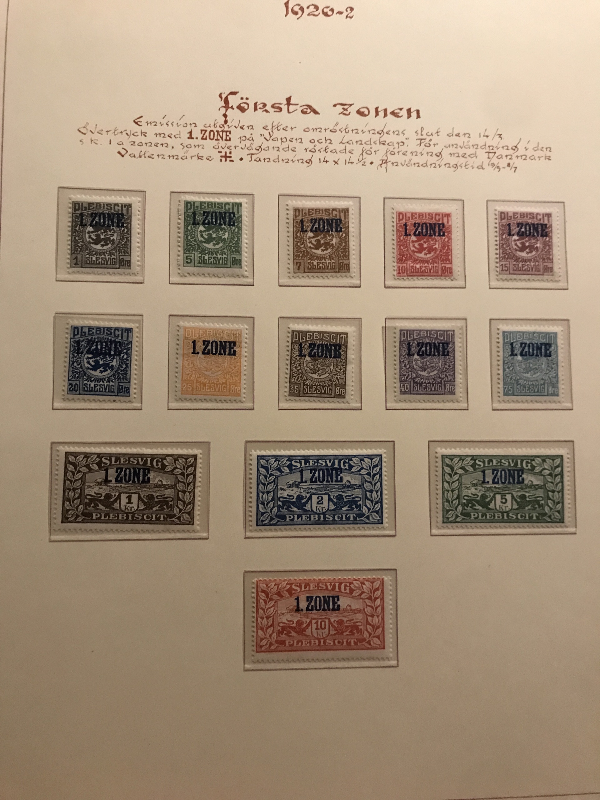 Denmark. ★★/★. Collection 1875–1988 in two Estett albums incl. e.g. F67–75 and 213–17 *, F184–93 and 201–12 **, better back-of-the-book and also Slesvig F1–28 mostly **. Please see a selection of scans at www.philea.se.