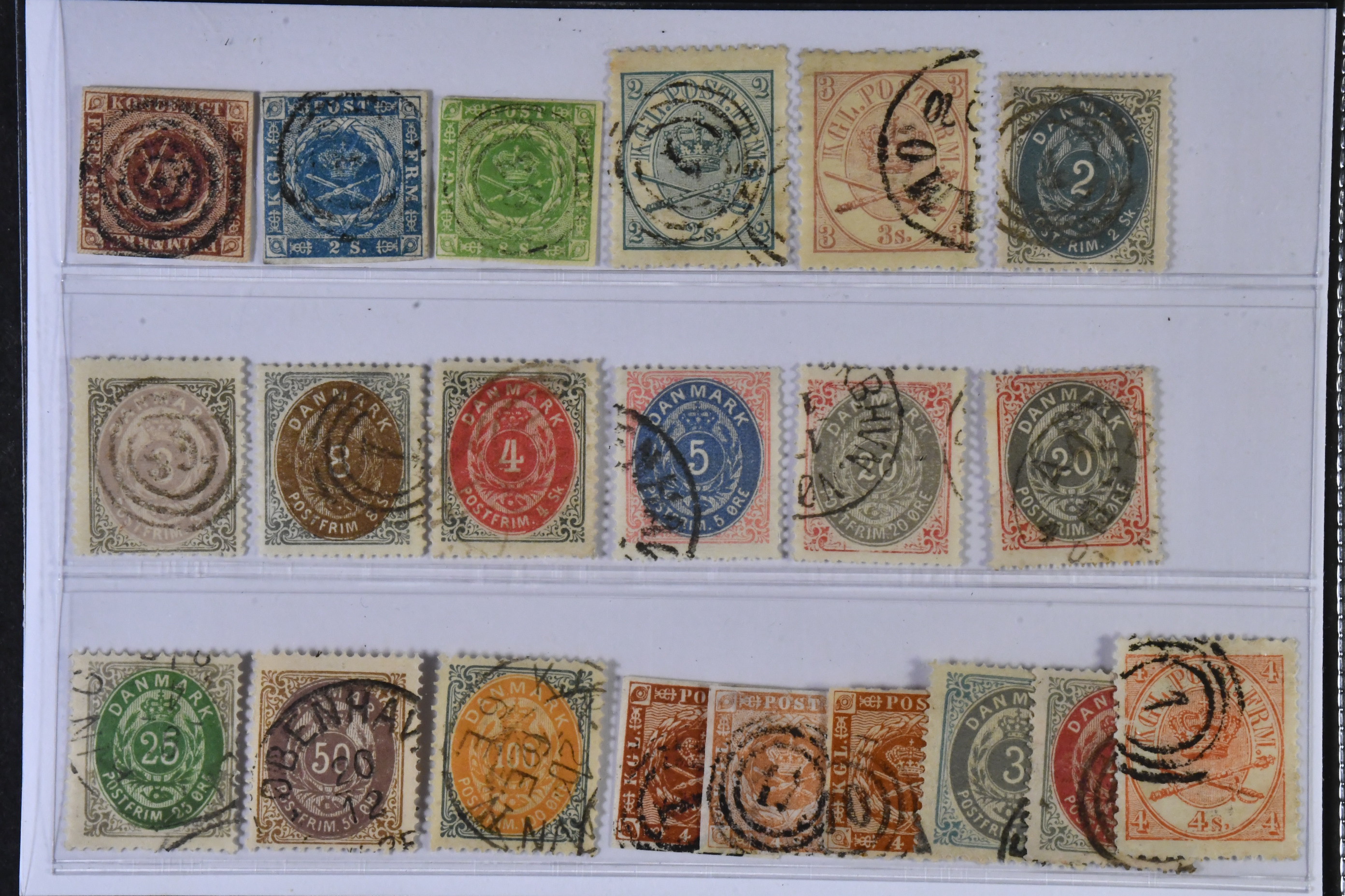 Denmark. Used 1851–1905. All different, e.g. F 2-3, 5, 11-12, 20-21, 23, 26, 30, 34, 34v1, 35-37. Mostly good quality. F SEK 10300 (21)