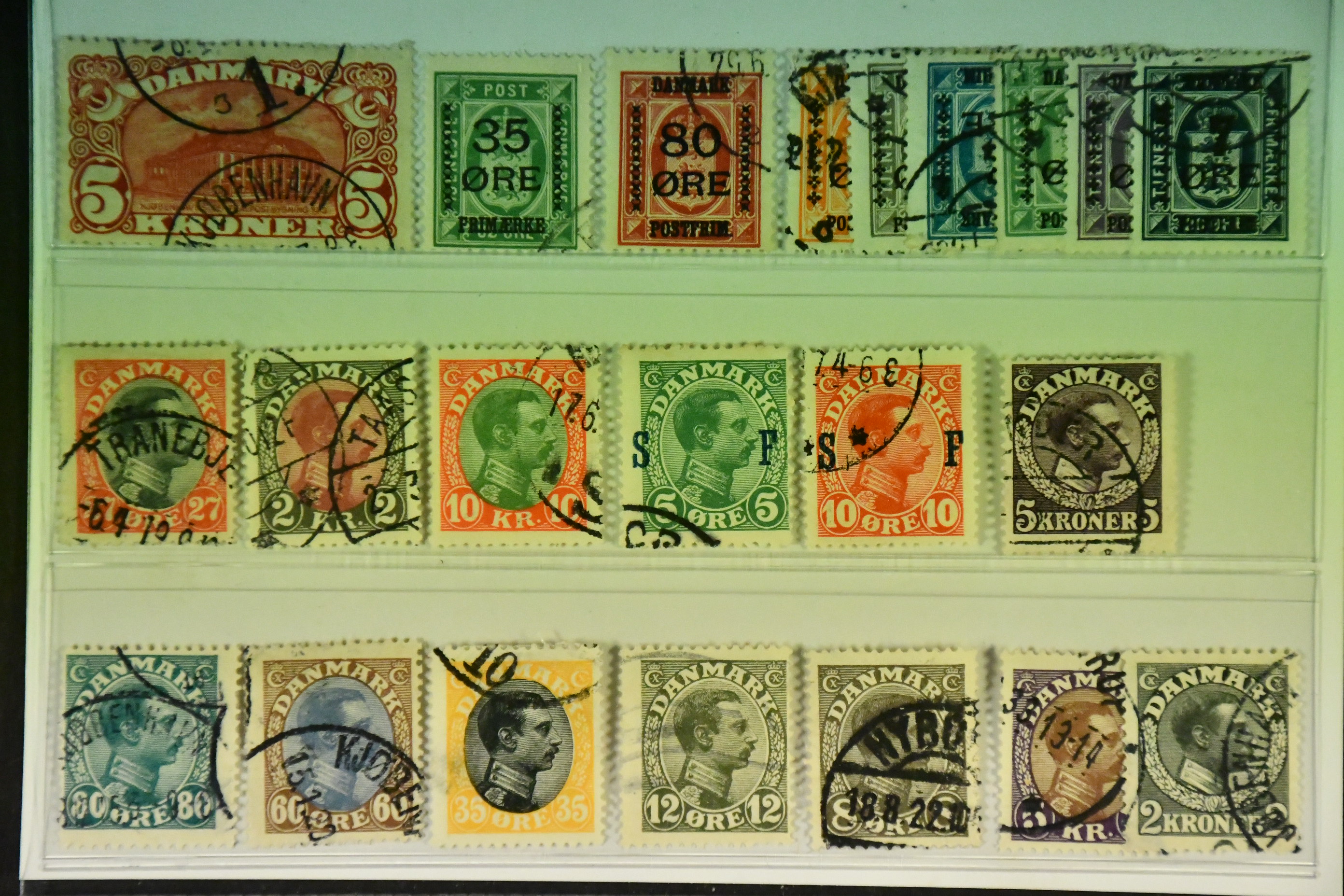 Denmark. Used 1915–1928. All different, e.g. F 121, 122–26, 128–30, 144, 162, 164, 168–69. Mostly good quality. F SEK 6900 (22)