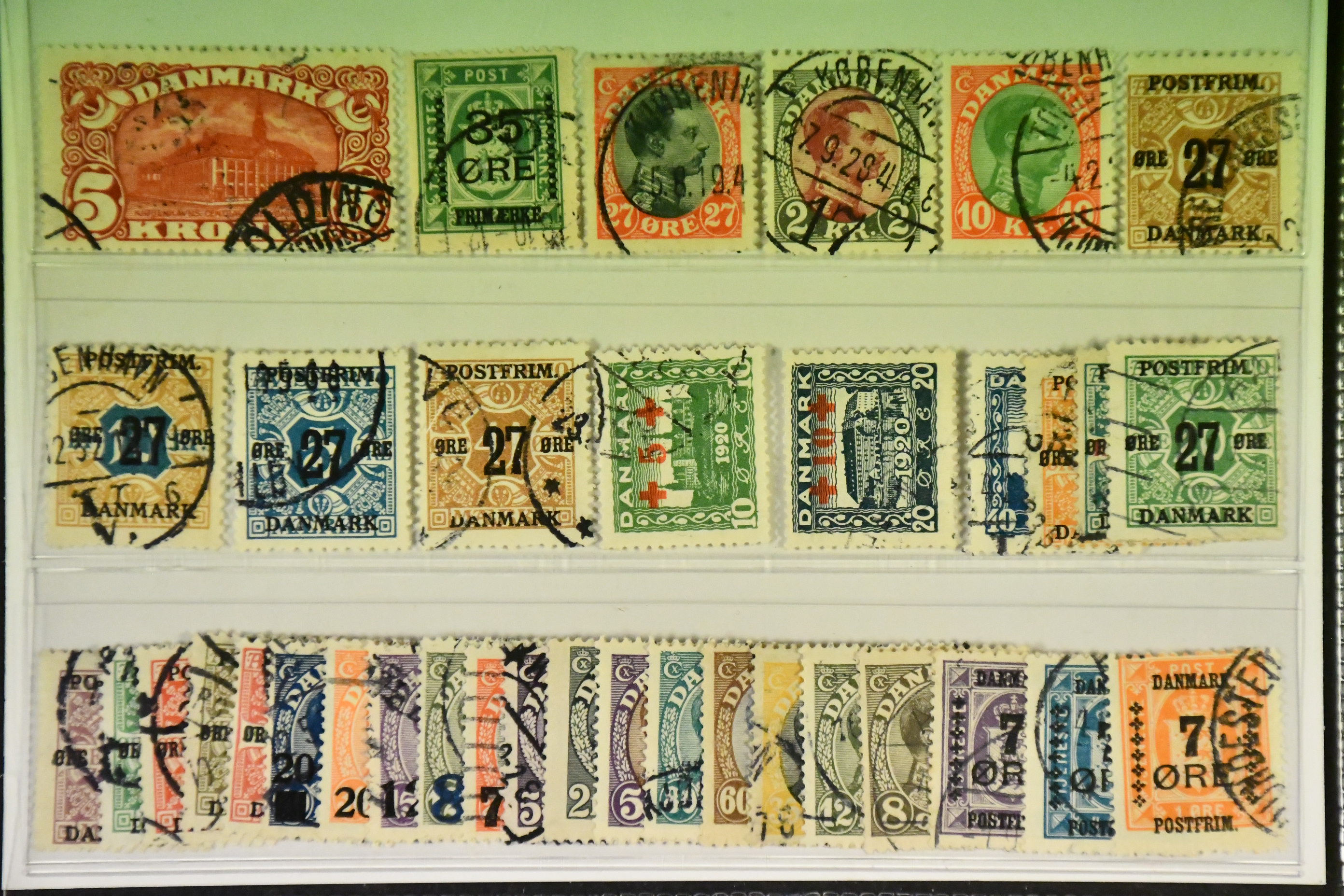 Denmark. Used 1915–1928. All different, e.g. F 121–22, 144, 162, 164, 181, 183, 185, 192, 199–200. Mostly good quality. F SEK 7700 (36)