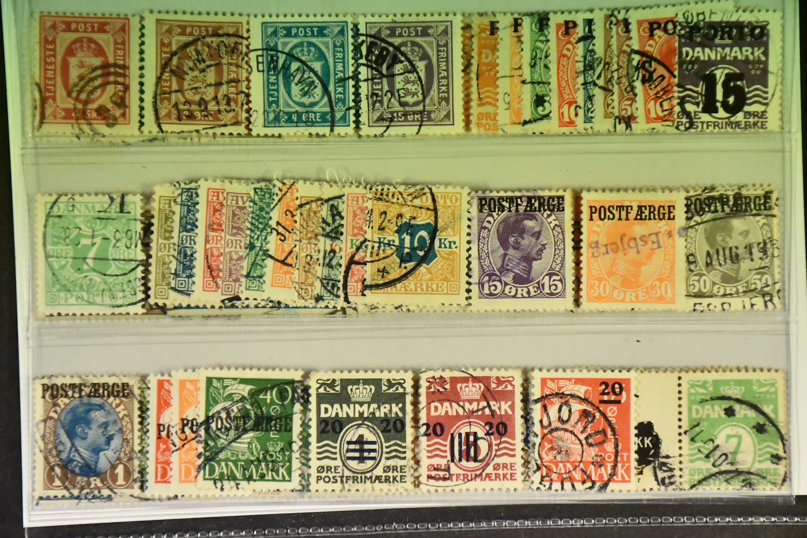 Denmark. Used 1871–1955. Back-of-the-book. All different, e.g. Tj 2, 6, 18, 23, L 1–9, 14, TI 1–10, PF 2–3, 6b, 7, 23–25, Slesvig 1–14, Faroes 4–6. Mostly good quality. F SEK 7895 (62)