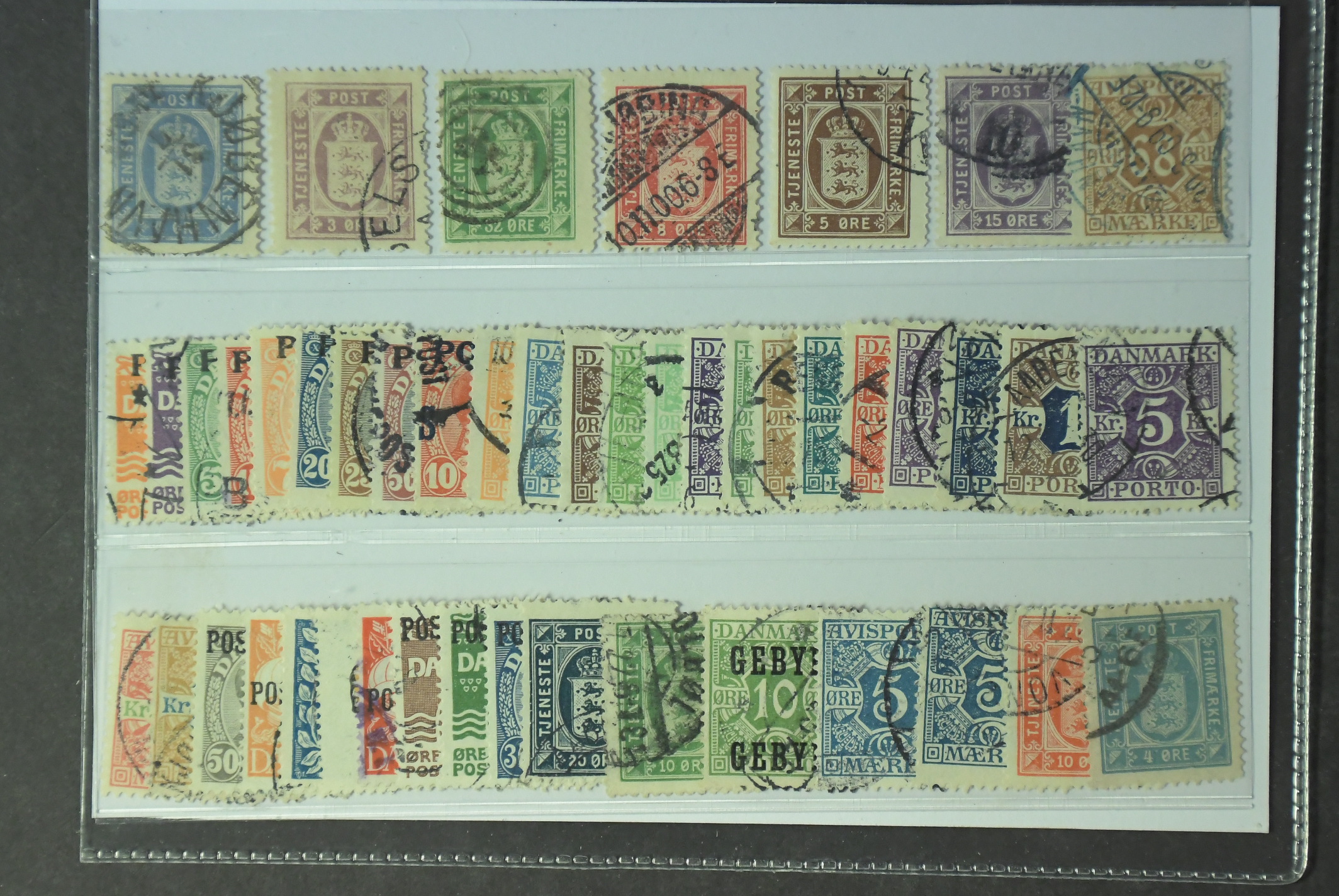 Denmark. Used 1871–1942. Back-of-the-book. All different, e.g. Tj1, 6, 9, 14, 20, 23, L1–18, 23–25, TI7, 9–10, P 6, 16–17, 24. Mostly good quality. F SEK 7025 (47)