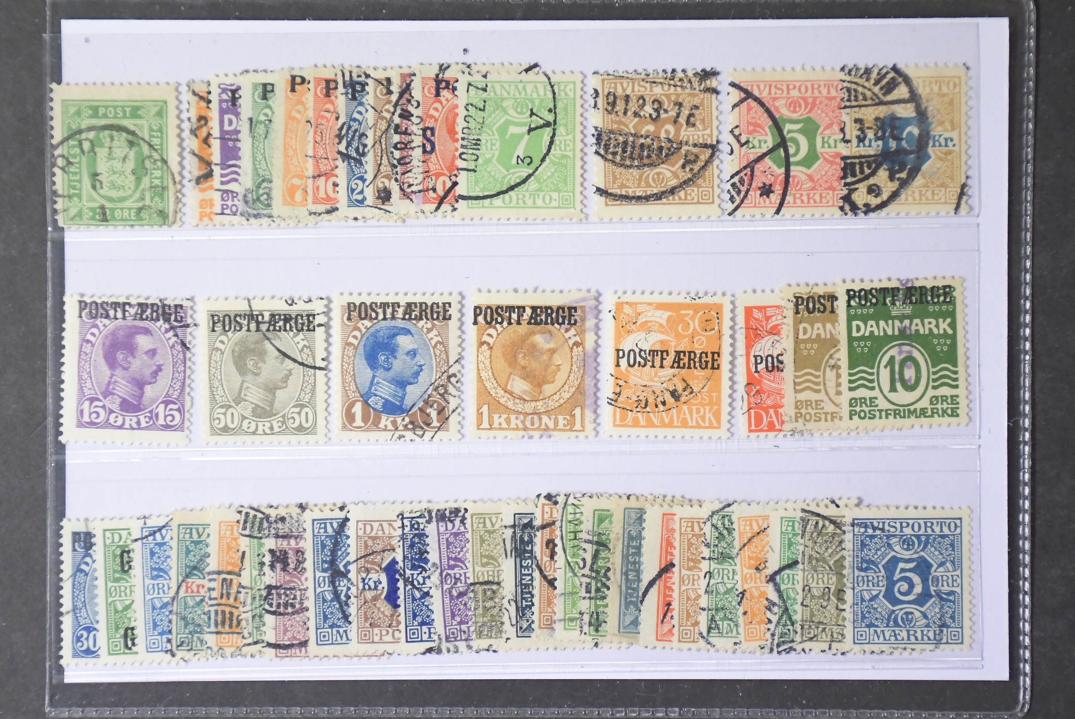 Denmark. Used 1875–1942. Back of the book. All different, e.g. Tj9, L1–9, 14, TI7, 9–10, PF2, 6–7, 10, 24. Mostly good quality. F SEK 6355 (45)