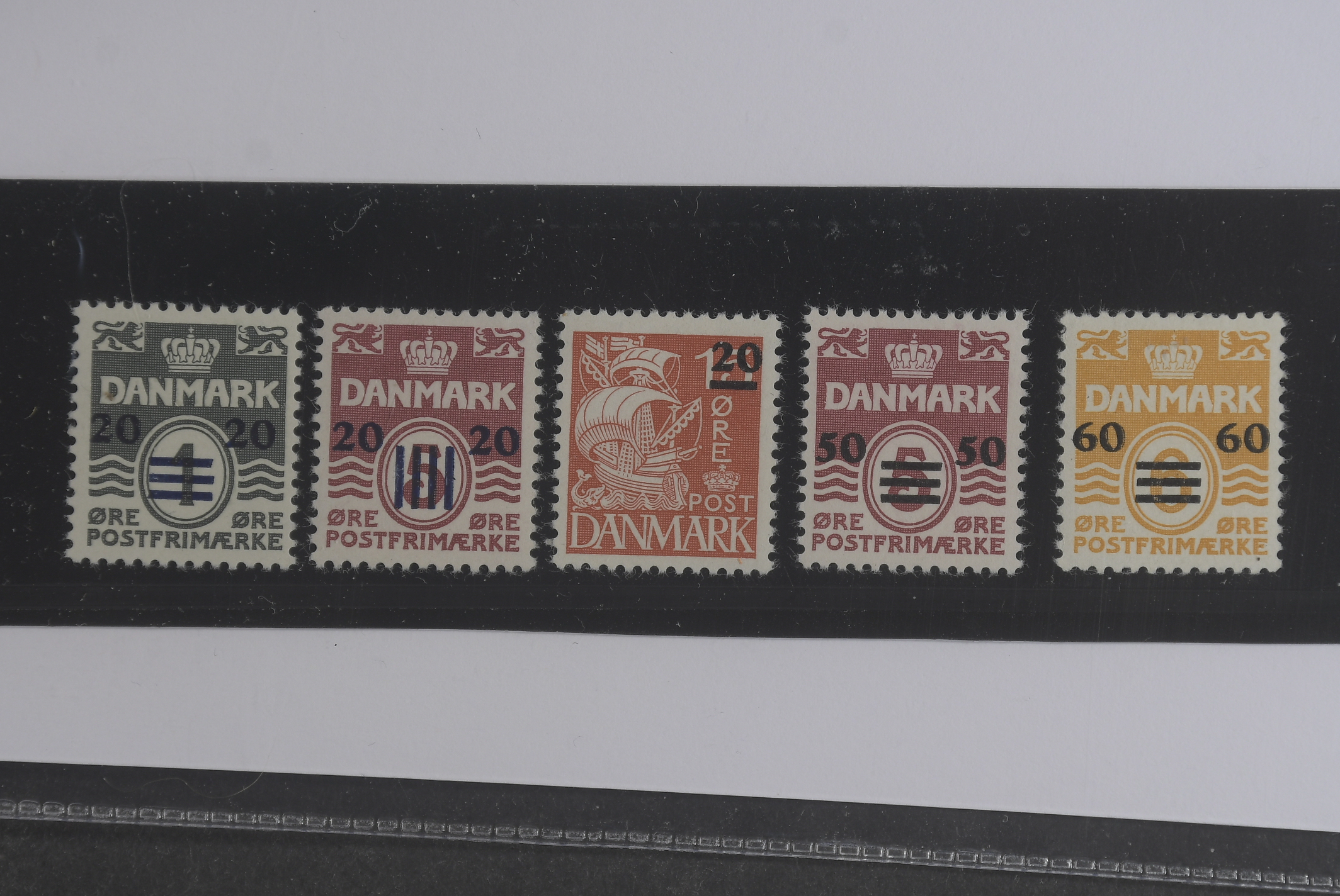 The Faroes. Facit 4–8 ★, 1940 Surcharge on Wavy-line type and Ship. Cpl set (5). SEK 3900