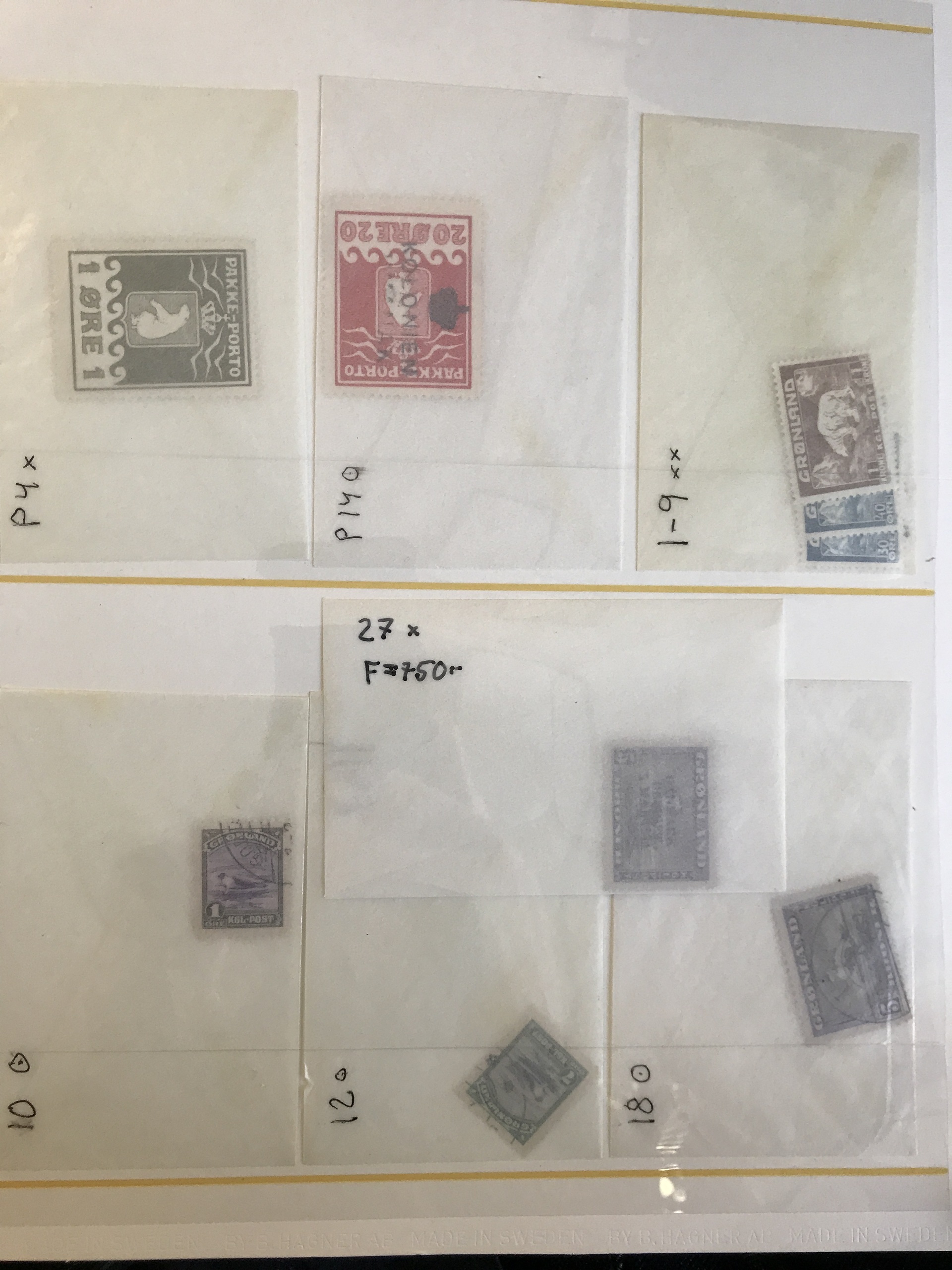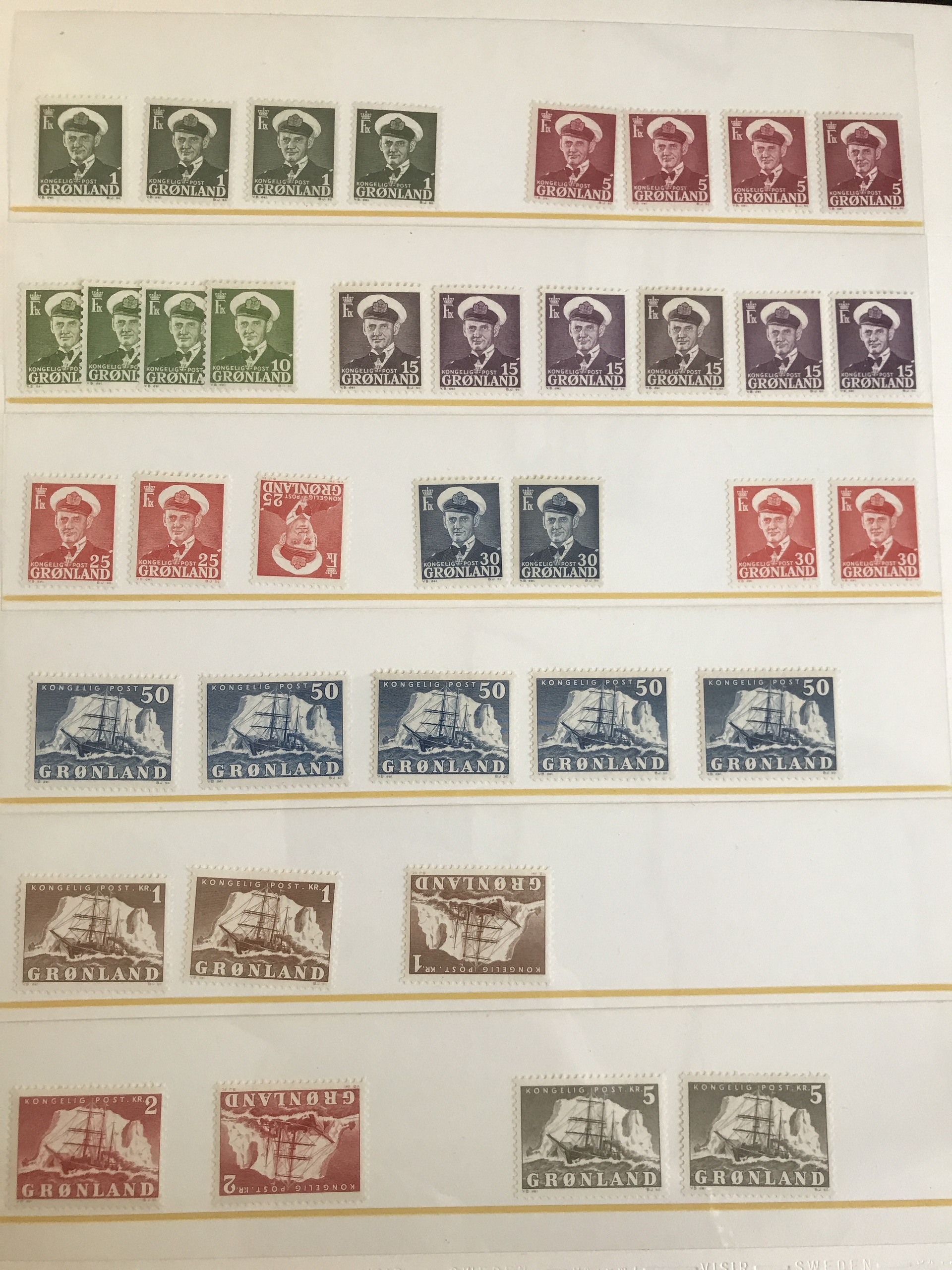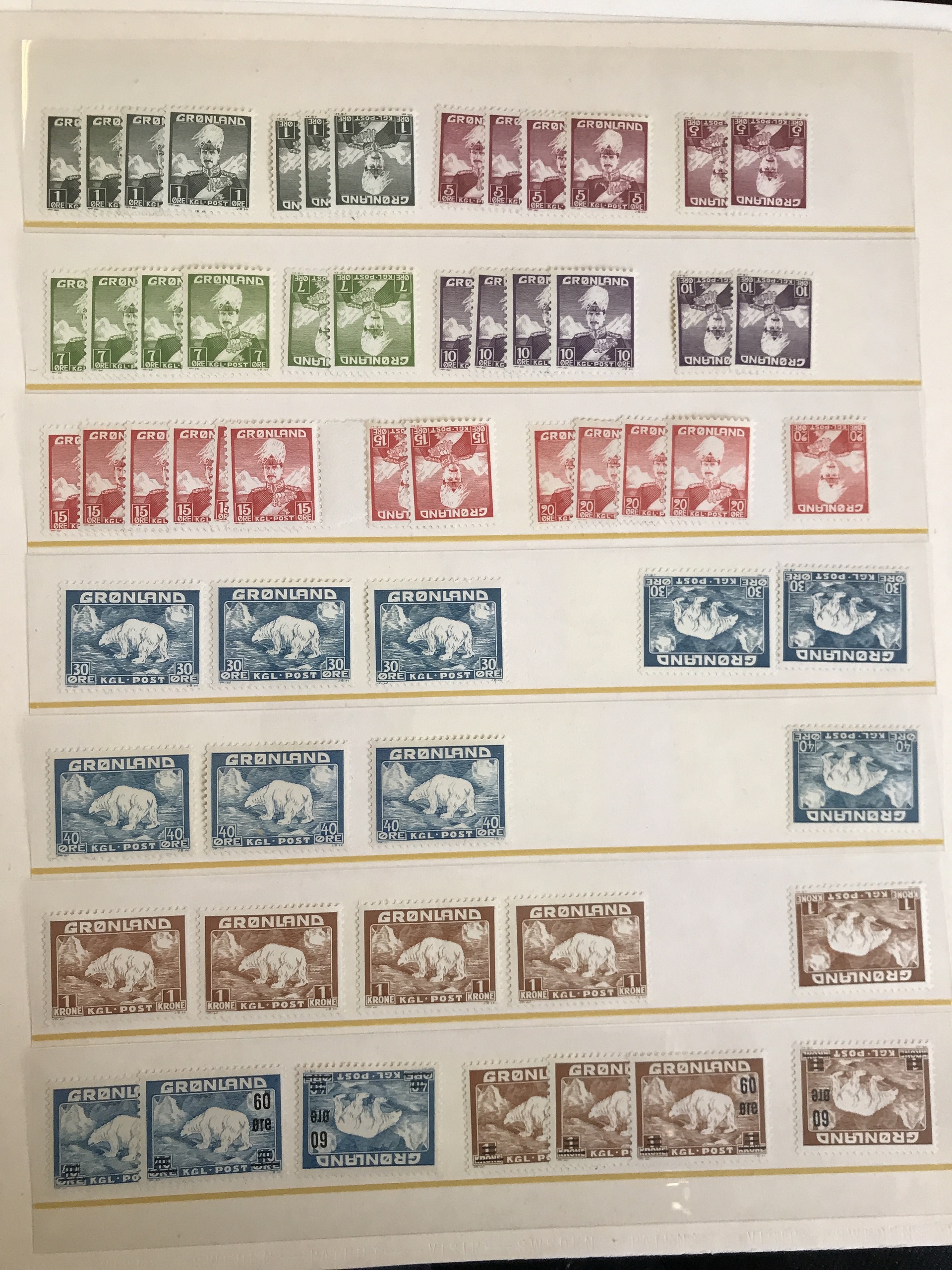 Greenland. ★★/★/⊙. Lot 1915–56 on visir leaves incl. e.g. four * sets Various Designs 1945, nine F33, 60 copies Thule incl. 10 øre in ** block-of twenty, etc. Facit ca 32000. Please see a selection of scans at www.philea.se. Fine quality.