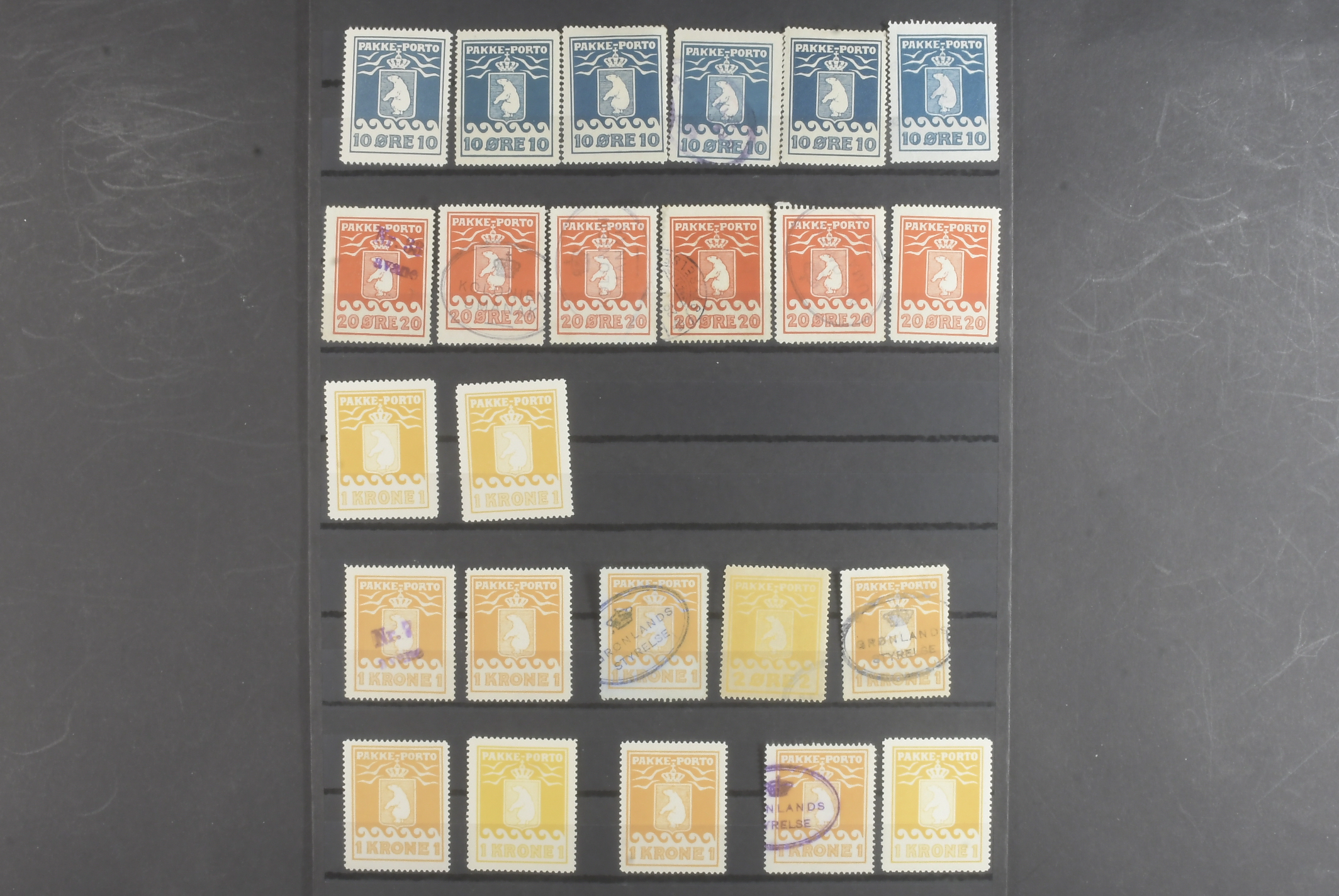 Greenland. Lot ★★/★/⊙ 1915–1937 on visir leave. Pakke–Porto with some better. The entire lot is presented at www.philea.se. Mostly fine quality. (32)