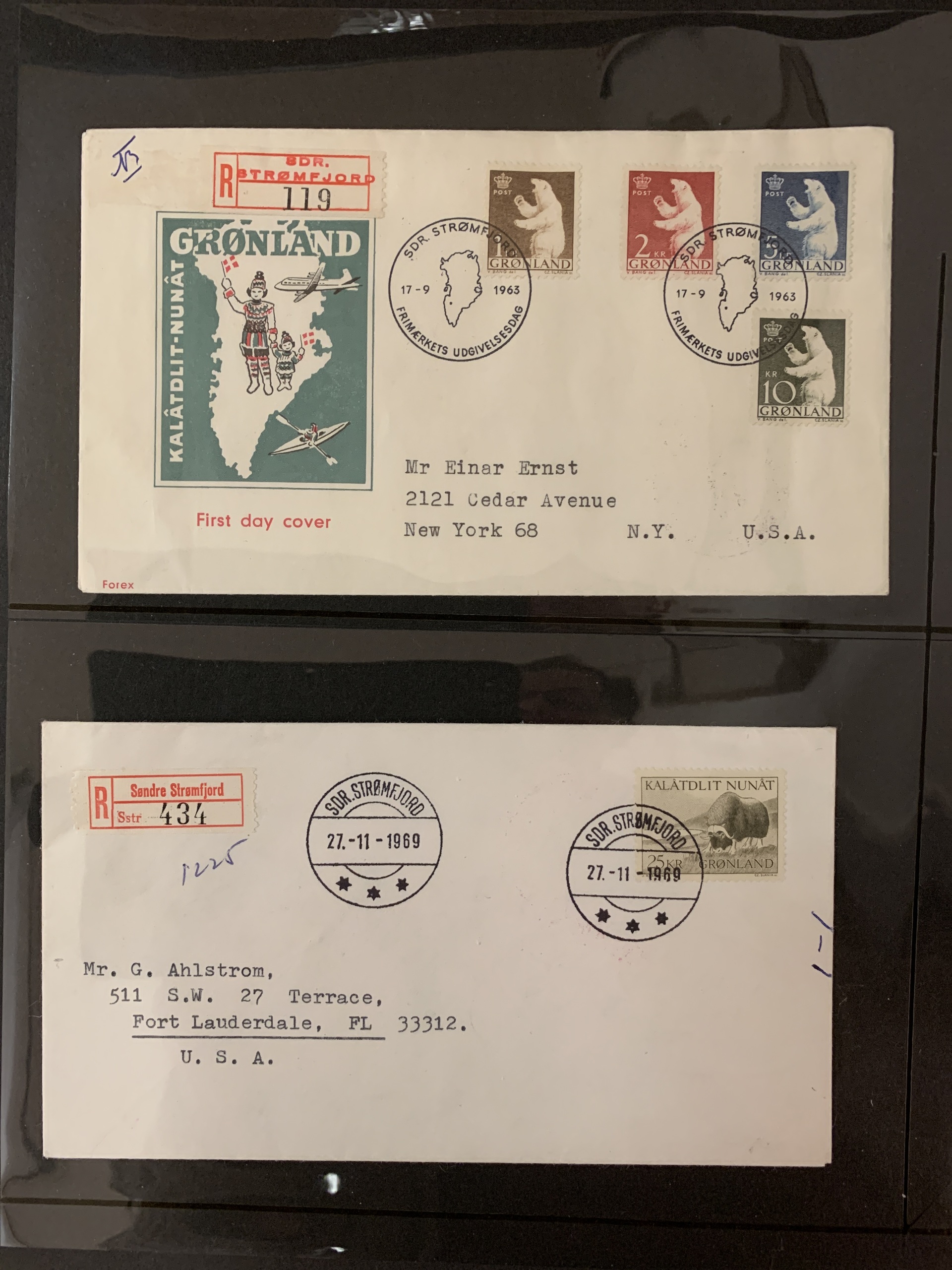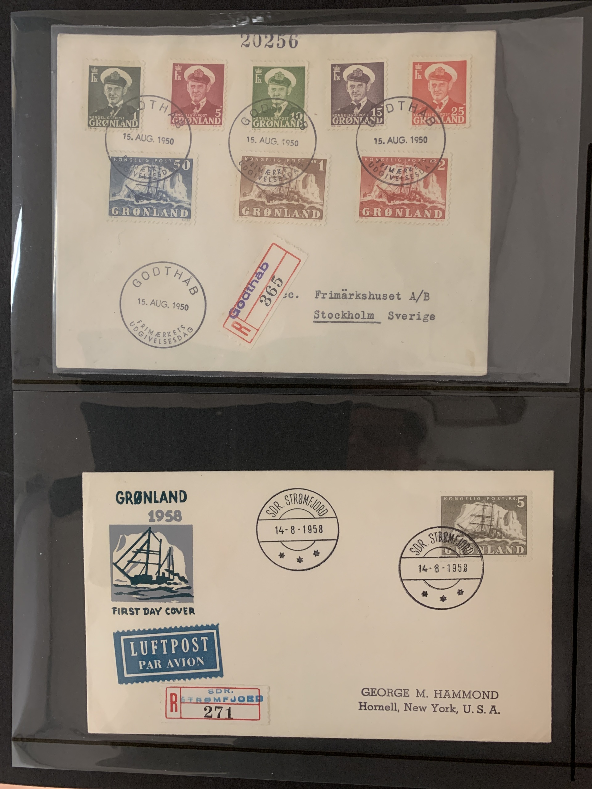 Greenland. FDCs. Four better, Facit 28–35, 4, 58–61 and 74. Facit 2850. The entire lot is presented at www.philea.se.