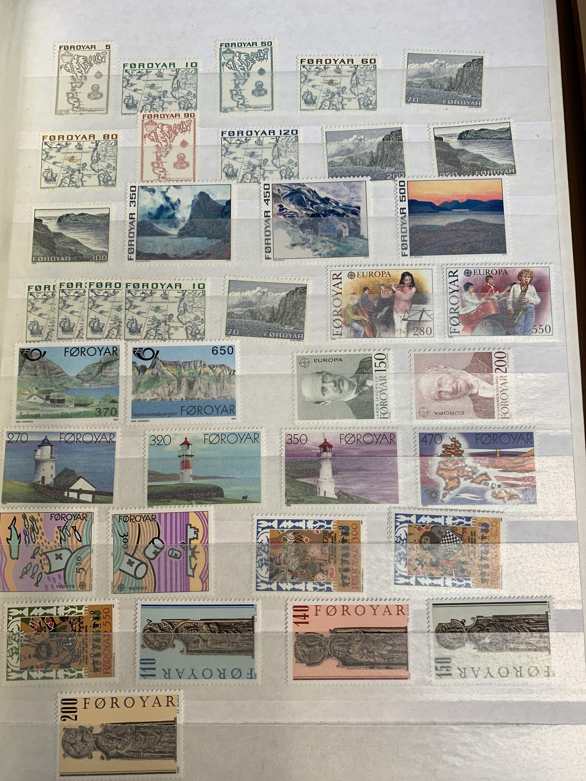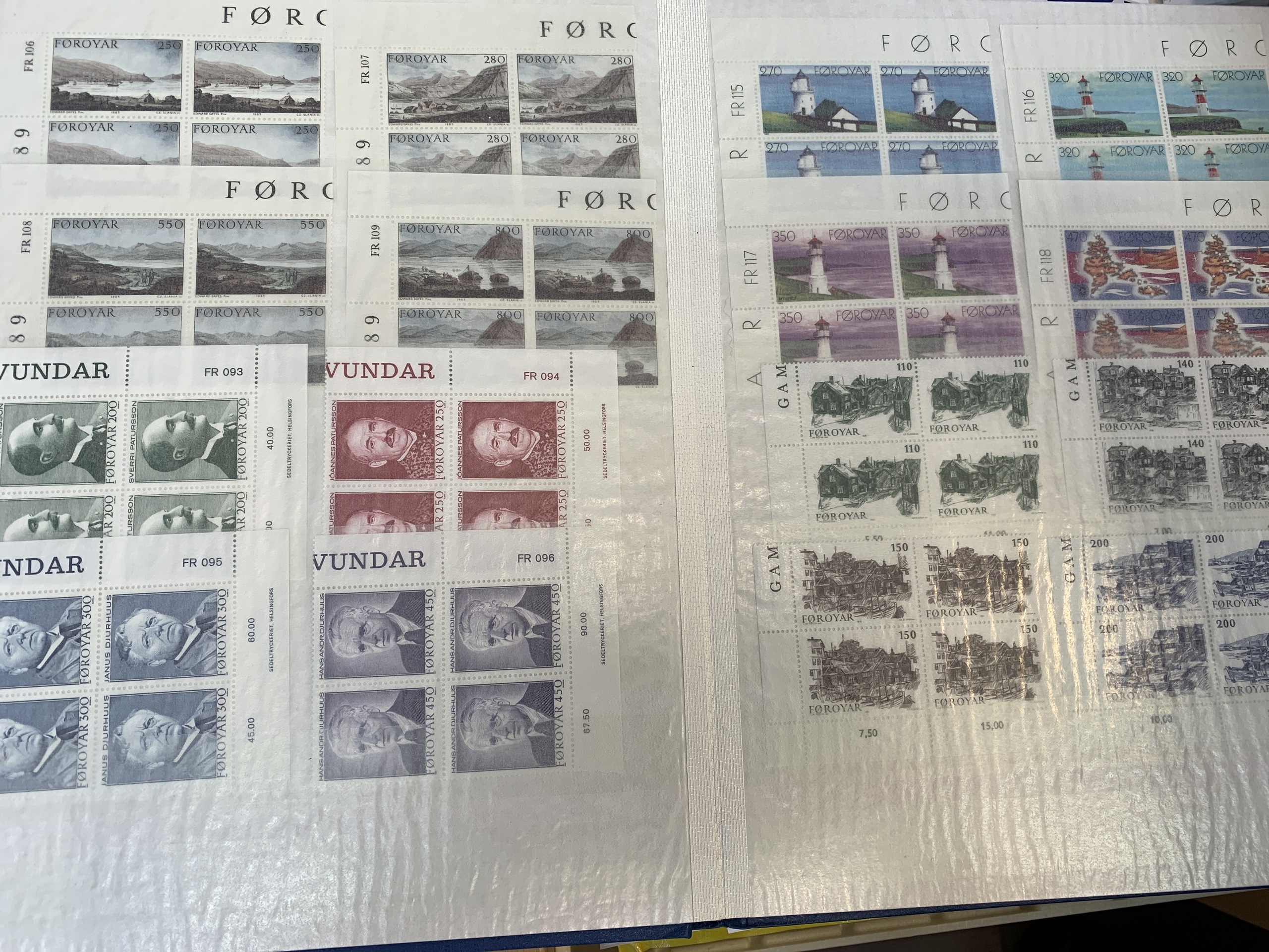 The Faroes. Miscellaneous, accumulation. Stockbook with ** and FDCs, three year sets 2002, 2003 and 2006, Danish stamps with cancellations from The Faroes and ditto covers. Christmas seals in whole sheets 1970–2009. Please see a selection of scans at www.philea.se.
