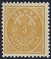 Iceland. Facit 20 ★★, 1897 Aur values 3 aur orange, small “3” perf 12¾. SEK 3600