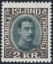 Iceland. Facit 156 ★★, 1931 King Christian X 2 Kr green-grey/brown close, unbroken lines. SEK 9500