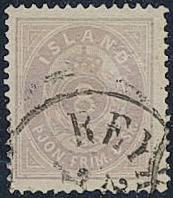 Iceland. Official Facit Tj2 used, 1873 Number in frame 8 sk lilac, perf 14 × 13½. SEK 6500
