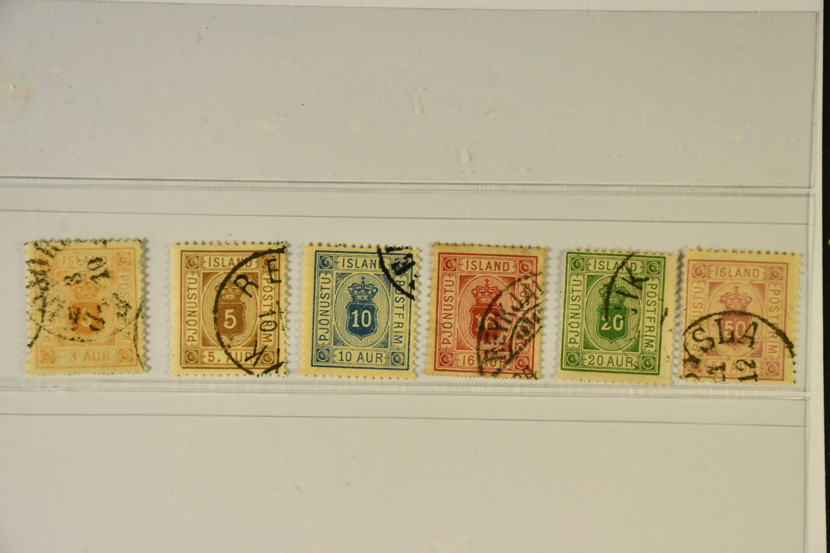 Iceland. Official Facit Tj4–9 used, 1876–1900 Coat-of-Arms SET (6). SEK 2500