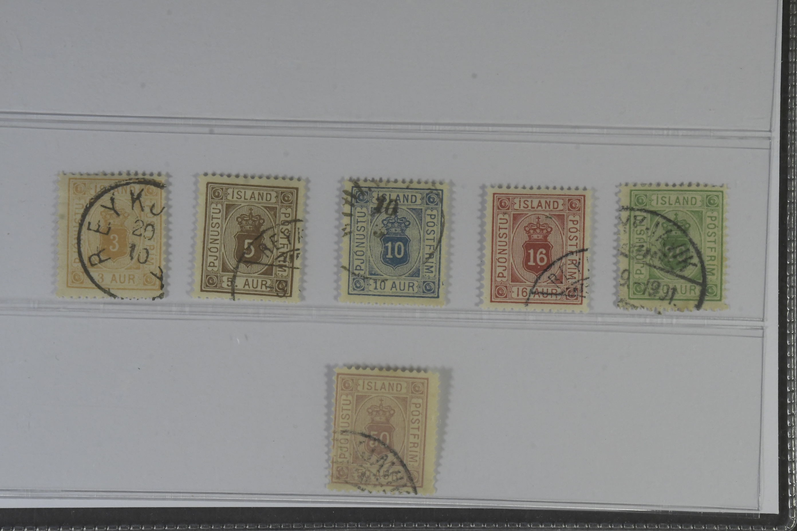 Iceland. Official Facit Tj4–9 used, 1876-1904 Cout-of-arms SET (6). SEK 2.480
