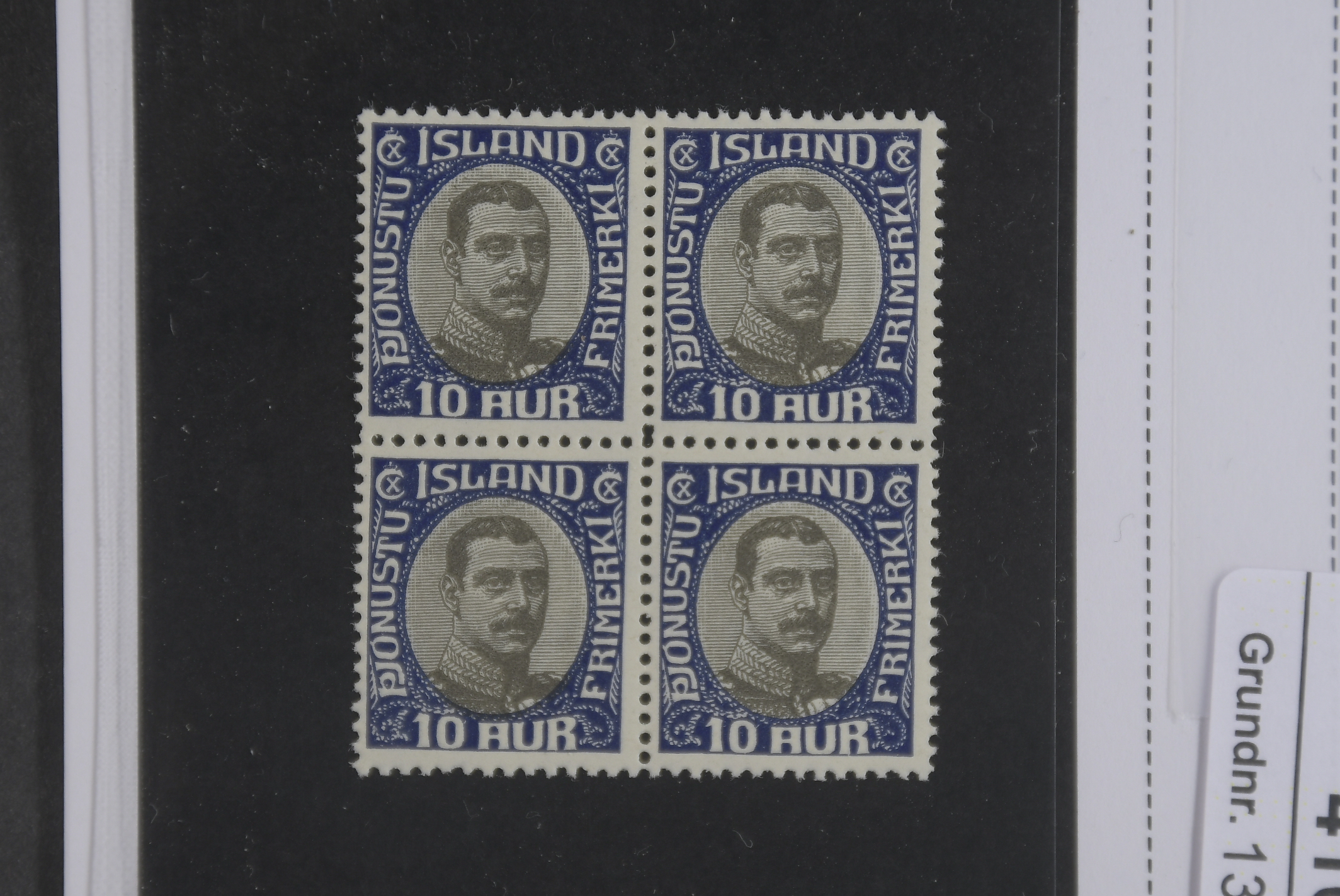 Iceland. Official Facit Tj45 ★★, 1920 King Christian X 10 aur grey/dark blue in a very fresh block-of-four. SEK 5200