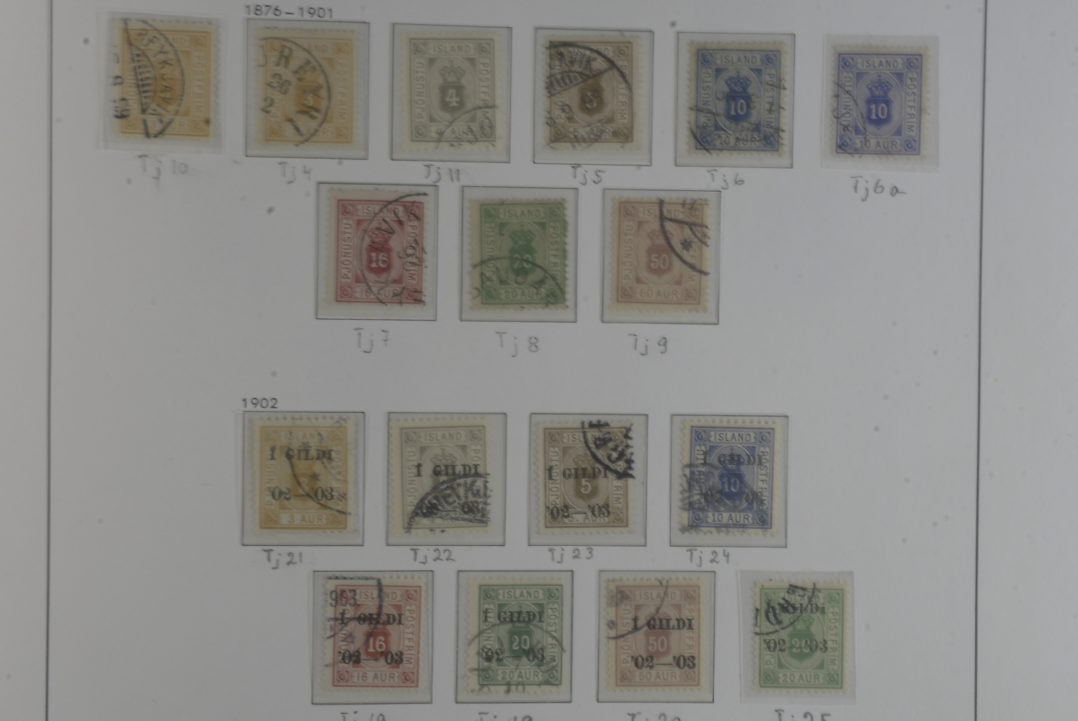 Iceland. Collection used 1873–1989 in DAVO album. Well filled seems complete 1930–1979 and just a few gaps before and after. Also a good section of officials. Please see a selection of scans at www.philea.se. Mostly fine quality. (ca. 600)