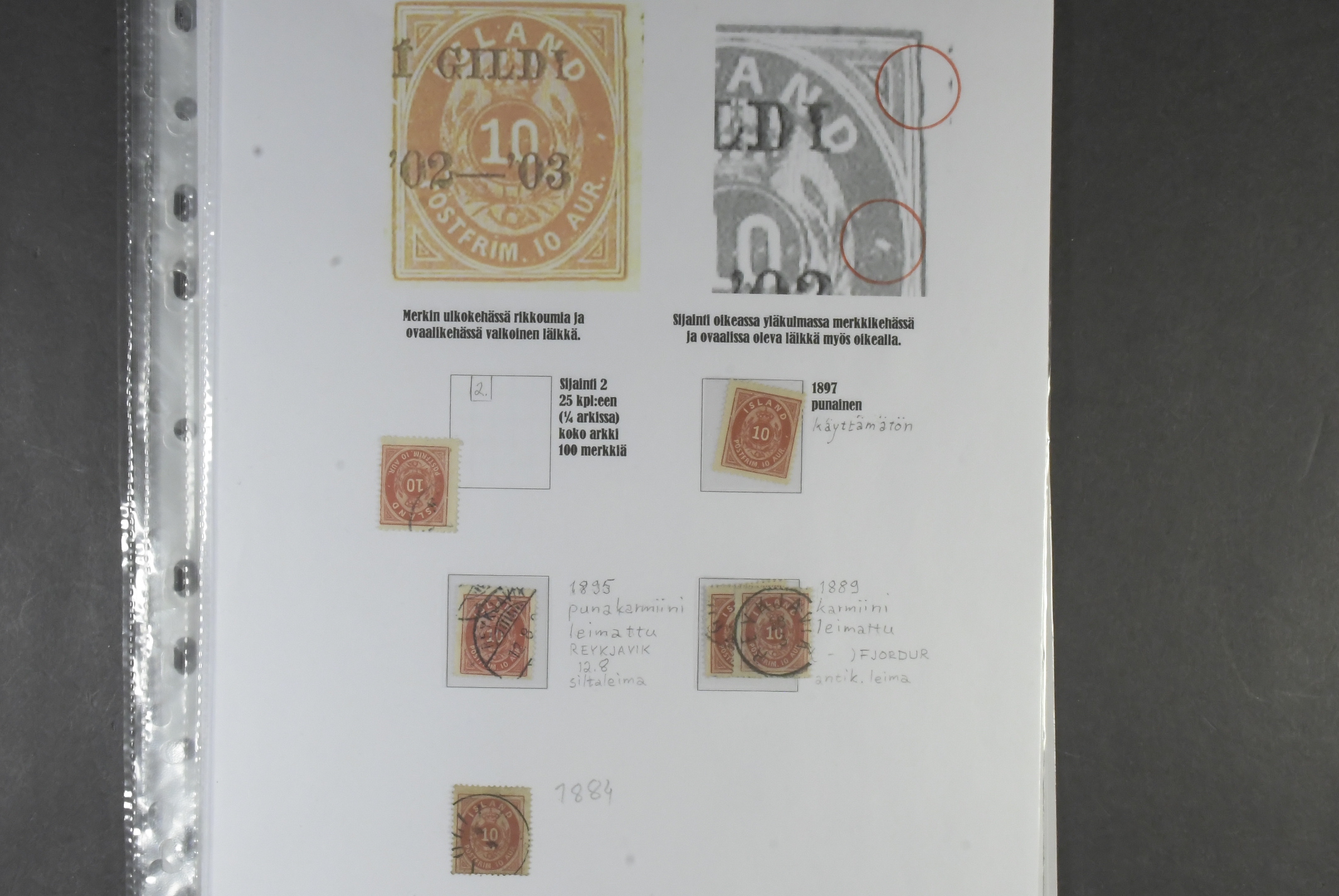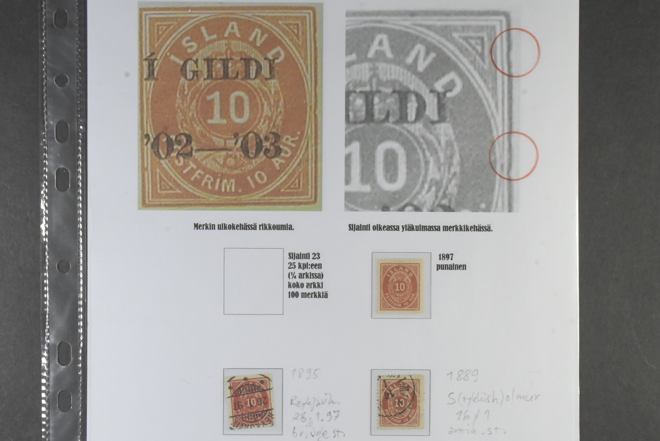 Iceland. Used. Specialized collection Oval 10 aur red on leaves with a lot of notes.