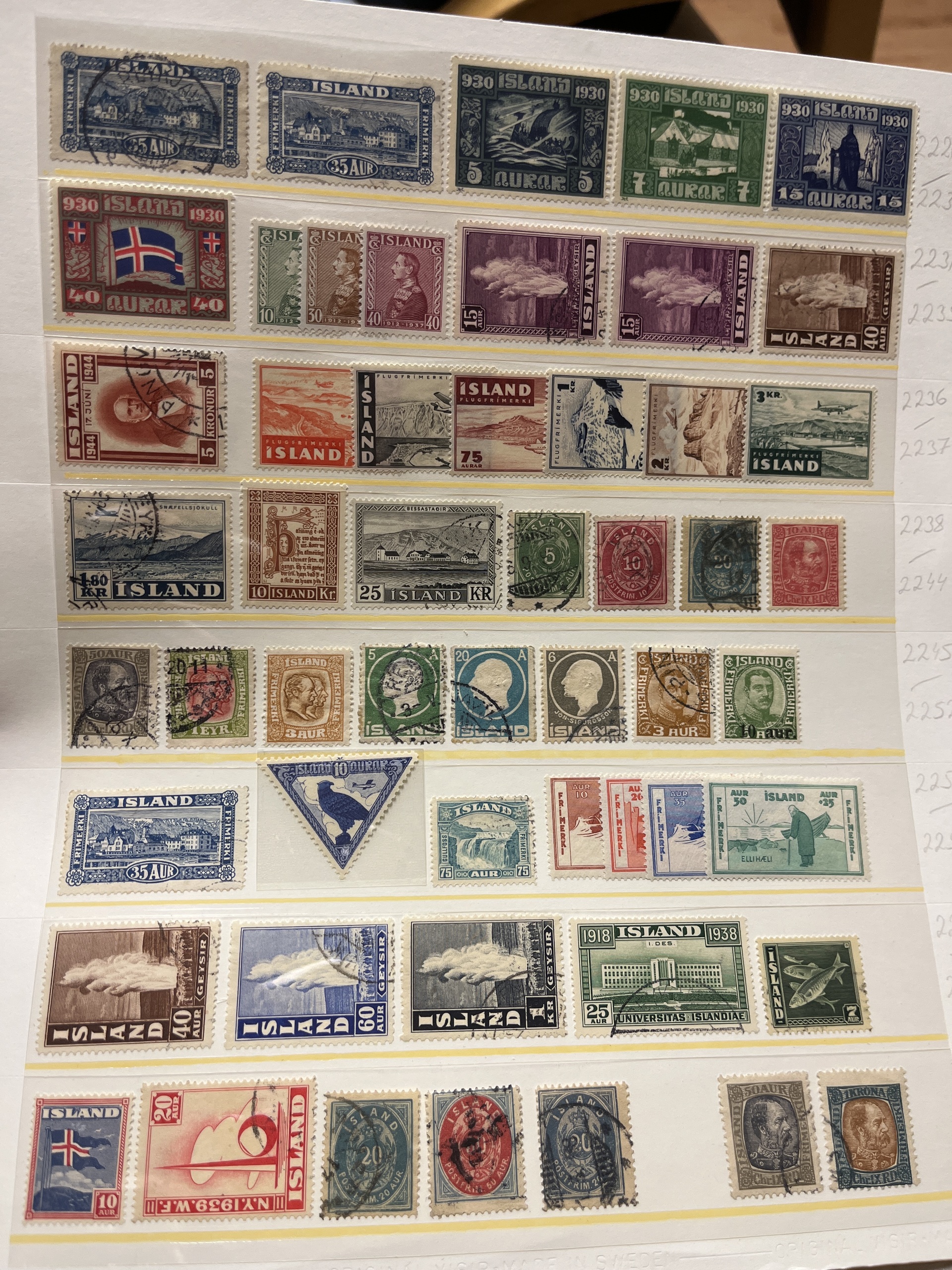 Iceland. Accumulation ★★/★/⊙ 1876–1960 on seven visir leaves. With several Aur values, and some other better stamps. Please see a selection of scans at www.philea.se. Somewhat mixed quality. (250+)