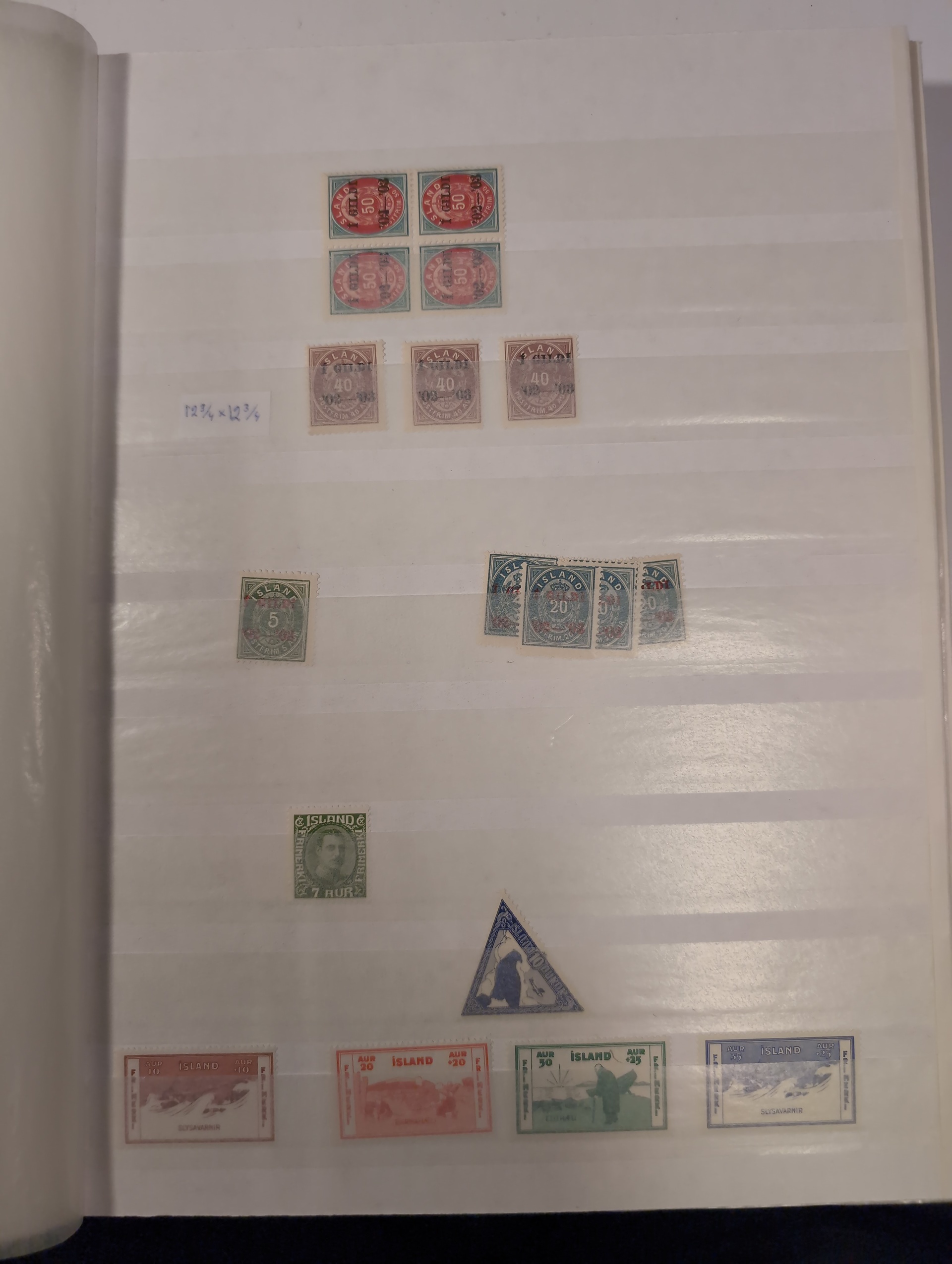 Iceland. Accumulation ★★ 1950s–1998 in three albums. One visiralbum and two stockbooks with mint never hinged stamps. incl some better sets from the 1950s. Please see a selection of scans at www.philea.se. Mostly fine quality. (1000)