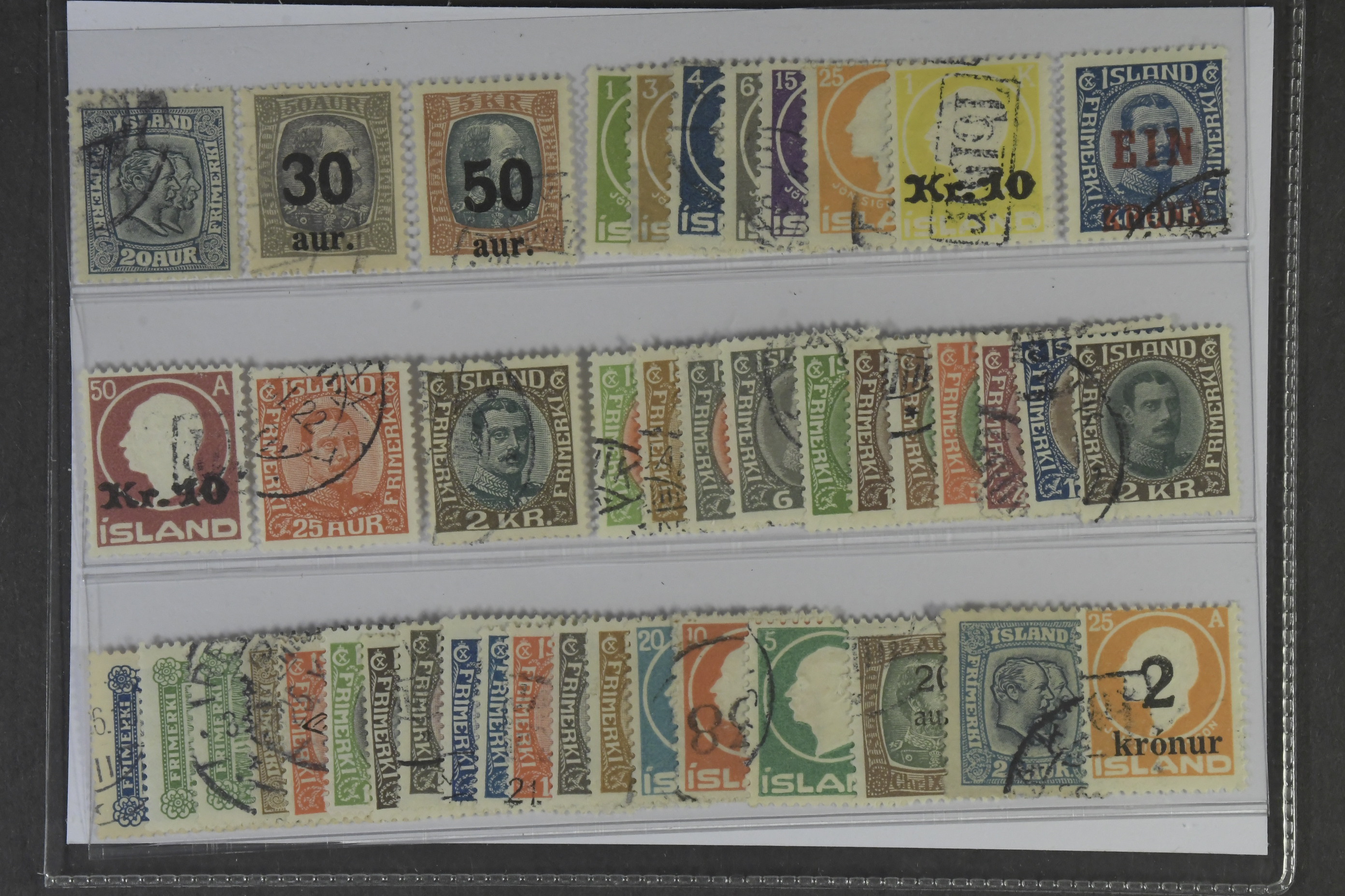 Iceland. Used 1907-25. All different, e.g. F 97, 101-02, 108-13, 122v, 123v, 137, 143, 145-56, 159. Three high values with TOLLUR cancel. Mostly good quality. F SEK 6.595 (44)