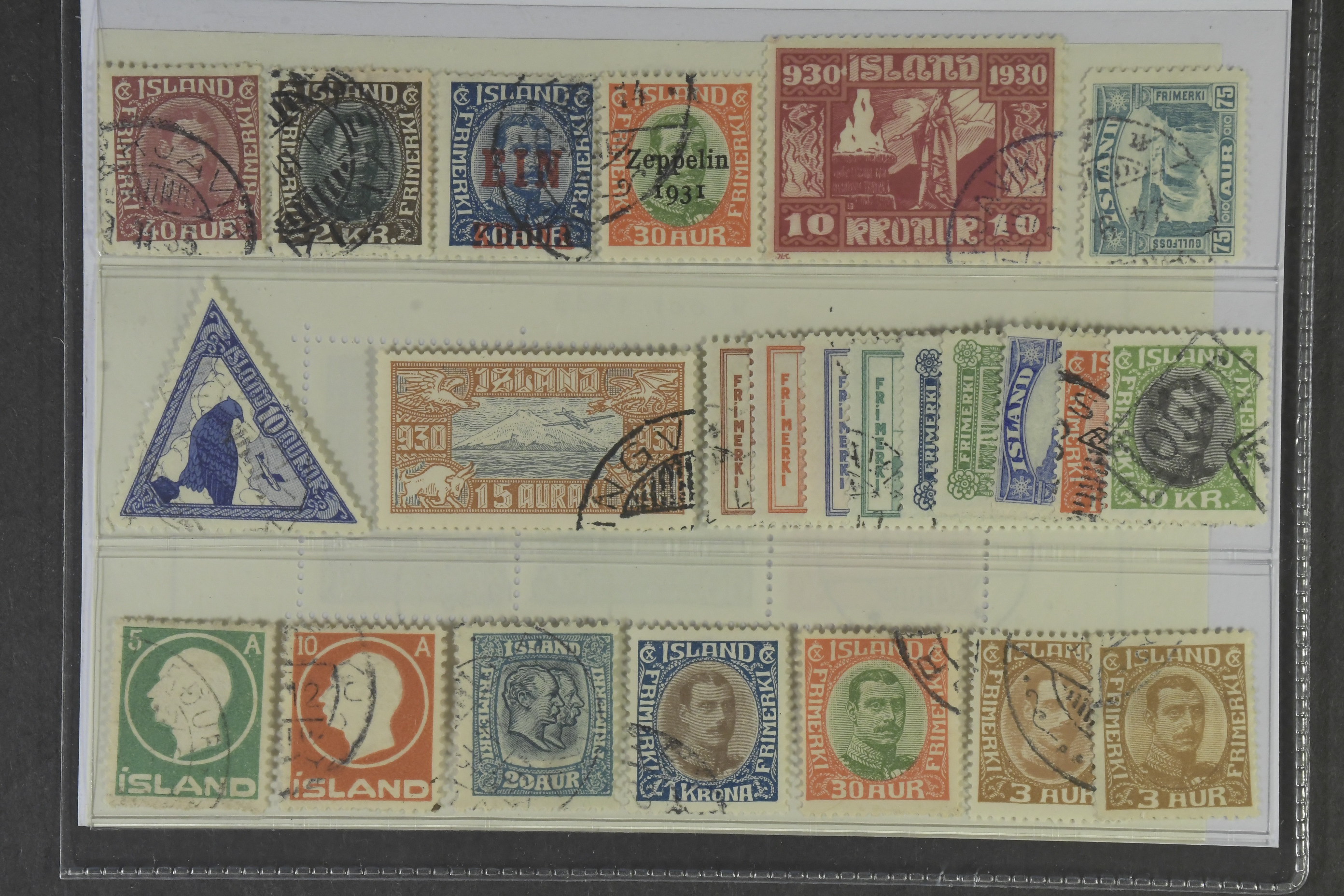 Iceland. Used 1907-38. All different, e.g. F 154, 156, 159, 162, 187-88, 189, 199, 200-03, souv.sheet 2. 10 Kr with TOLLUR cancel. Mostly good quality. F SEK 6.605 (25)