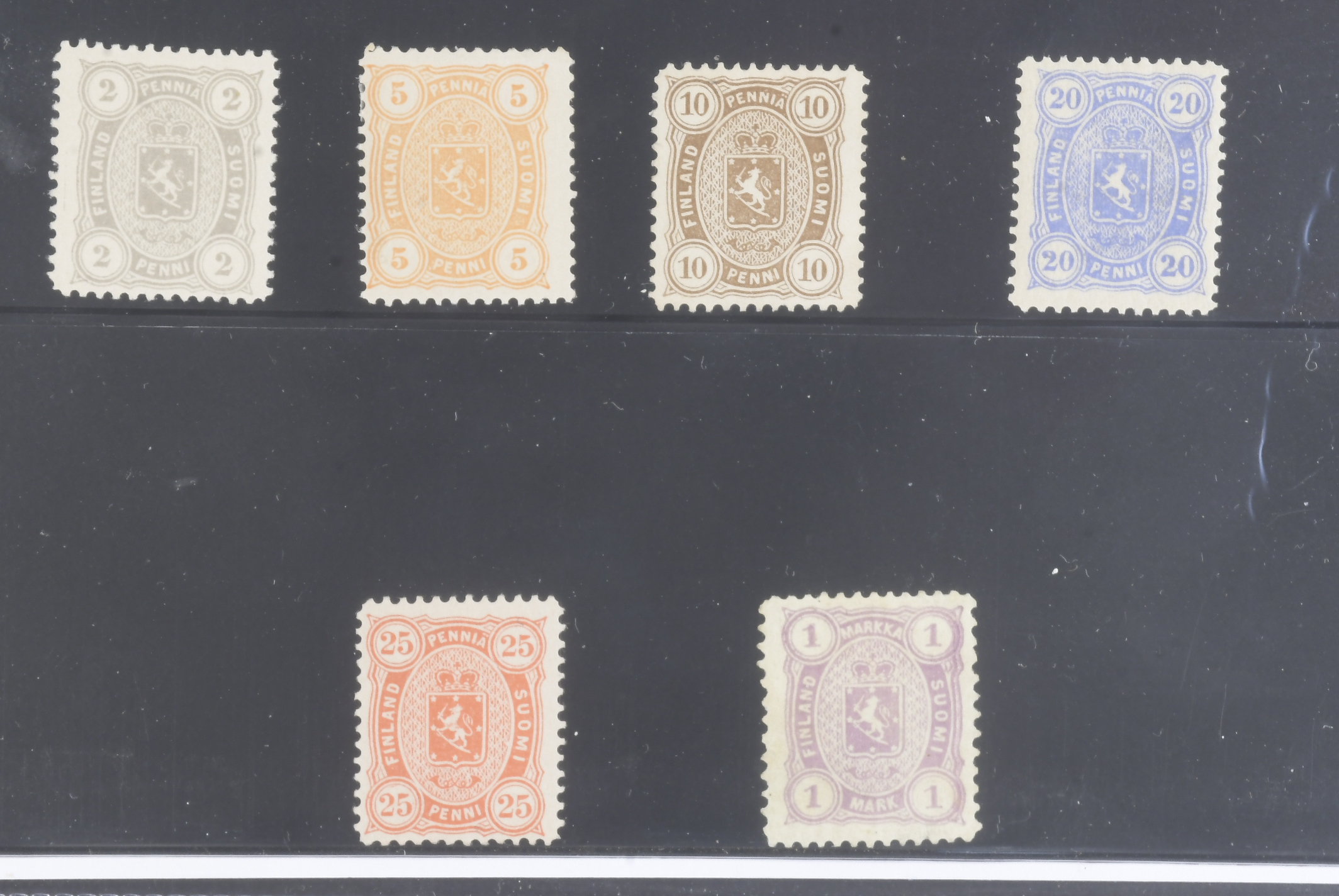 Finland. Facit 12L ★, 1882 Coat of Arms m/75, Stamp Office Printing,perf 12½. Complete set 10 p without gum. SEK 450