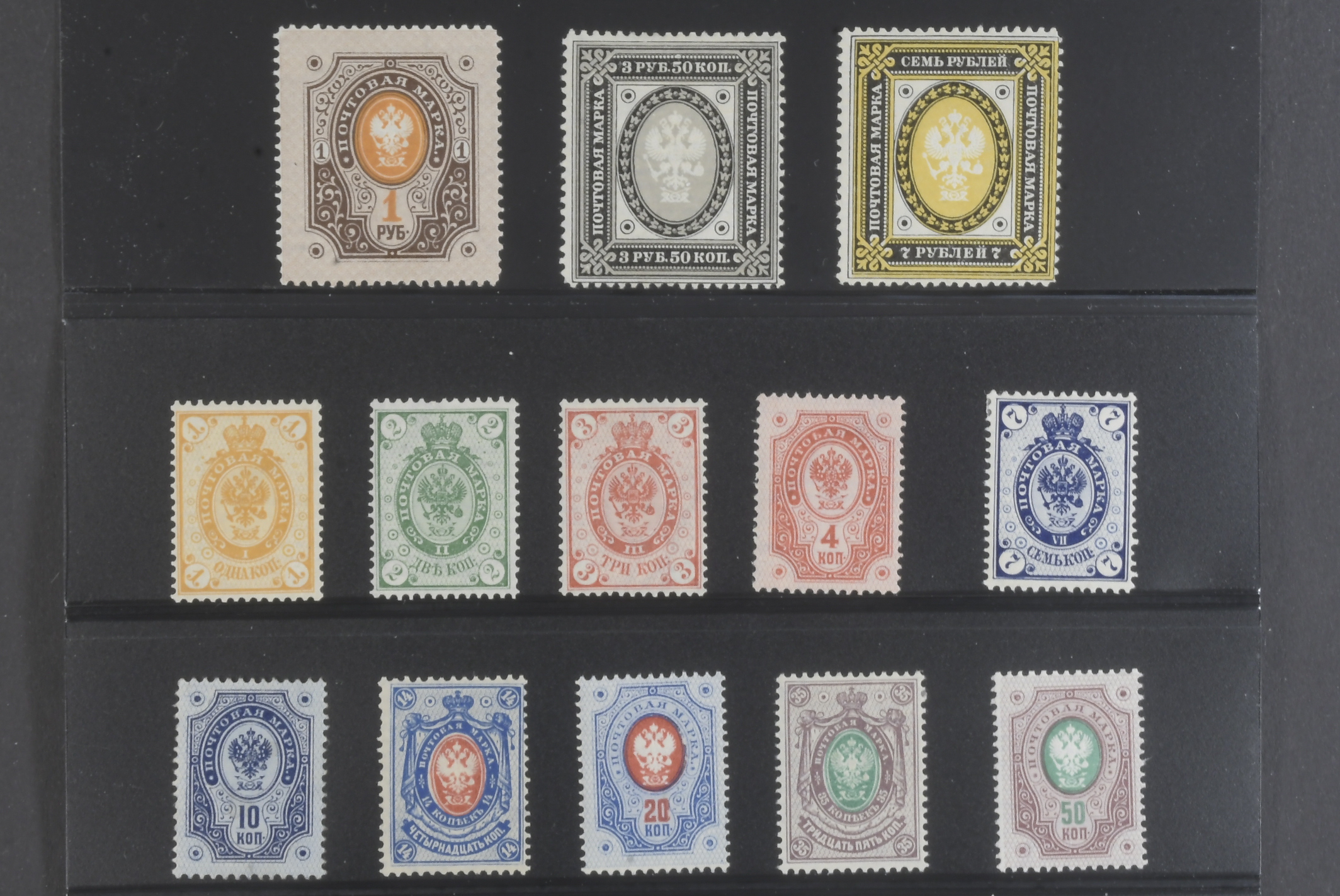 Finland. Facit 35–47 ★★/★, 1891 Russian types with rings SET (13). 1, 2, 4 and 50 k are **. SEK 6000+