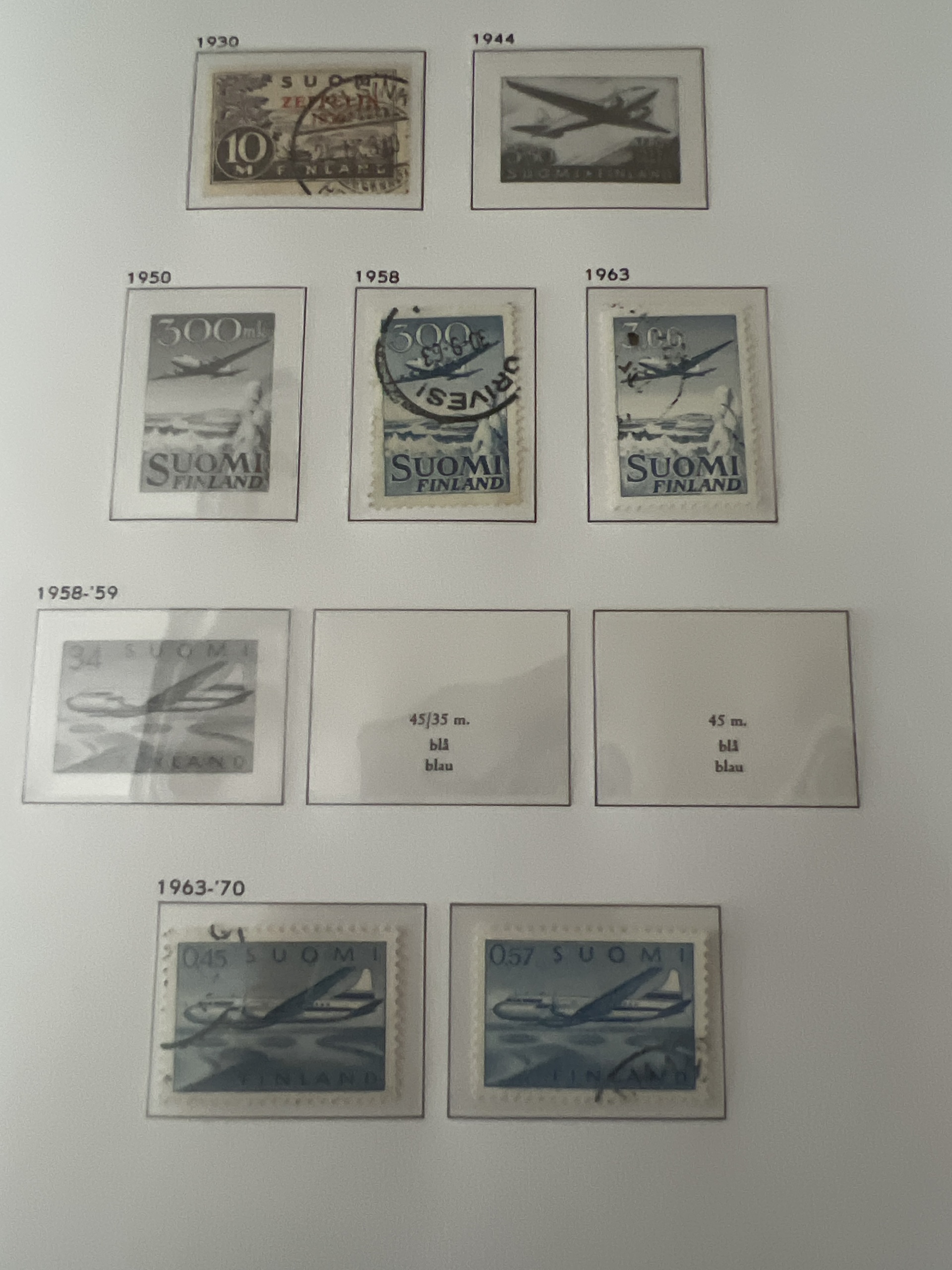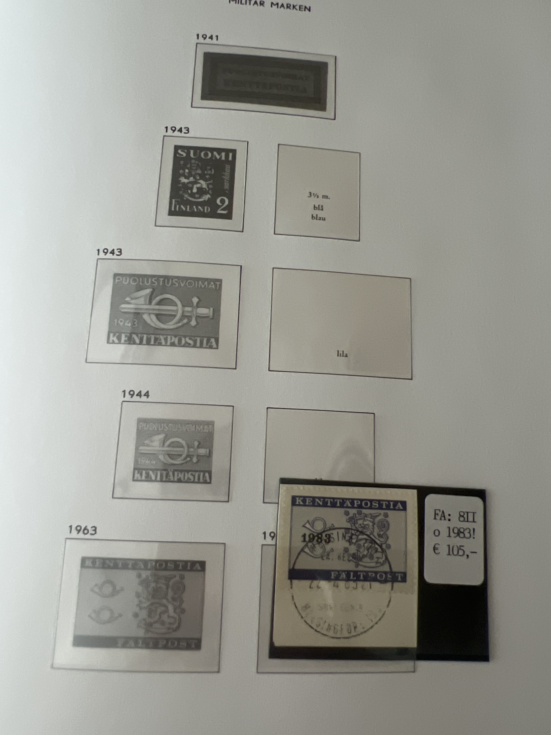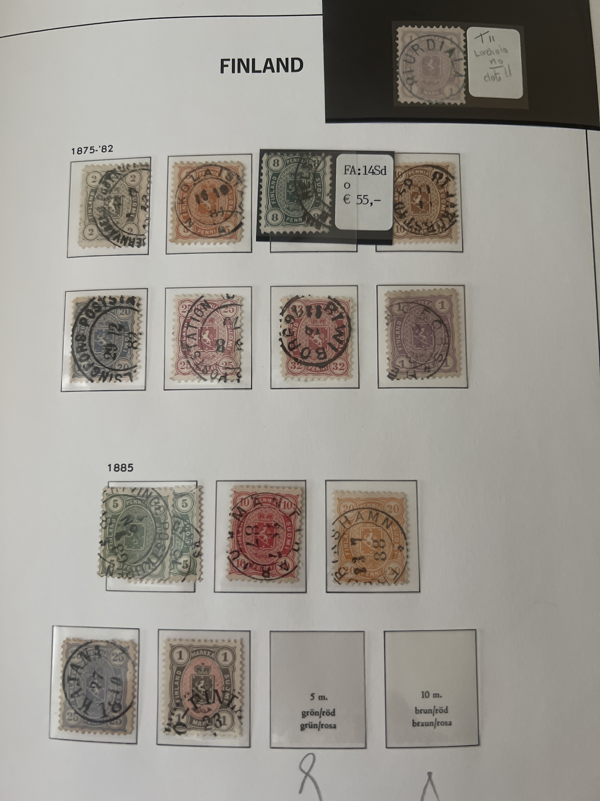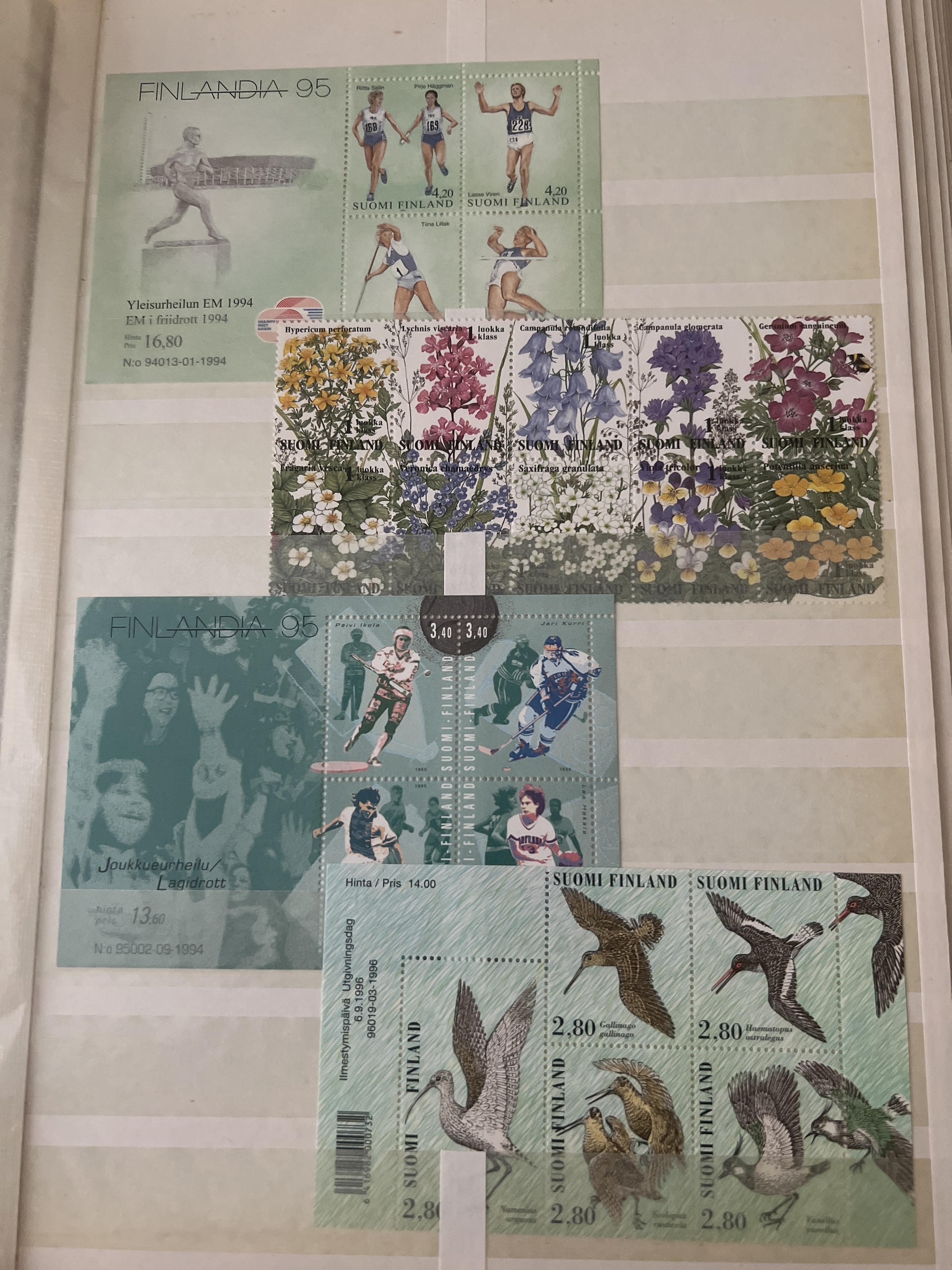 Finland. Collection/accumulation ★★/★/⊙ 1860–1999 in two albums. First album is a Davo album with 5 serpentines incl. 1mk all very fine. Then some better four numbered and three numbered issues. 1930s with some better sets and Zeppelin, also some back of the book. Stockbook with mint stamps incl. some early reprints and better stamps incl 1r and 3.50R with rings. Please see a selection of scans at www.philea.se. Mostly fine quality. (1000+)