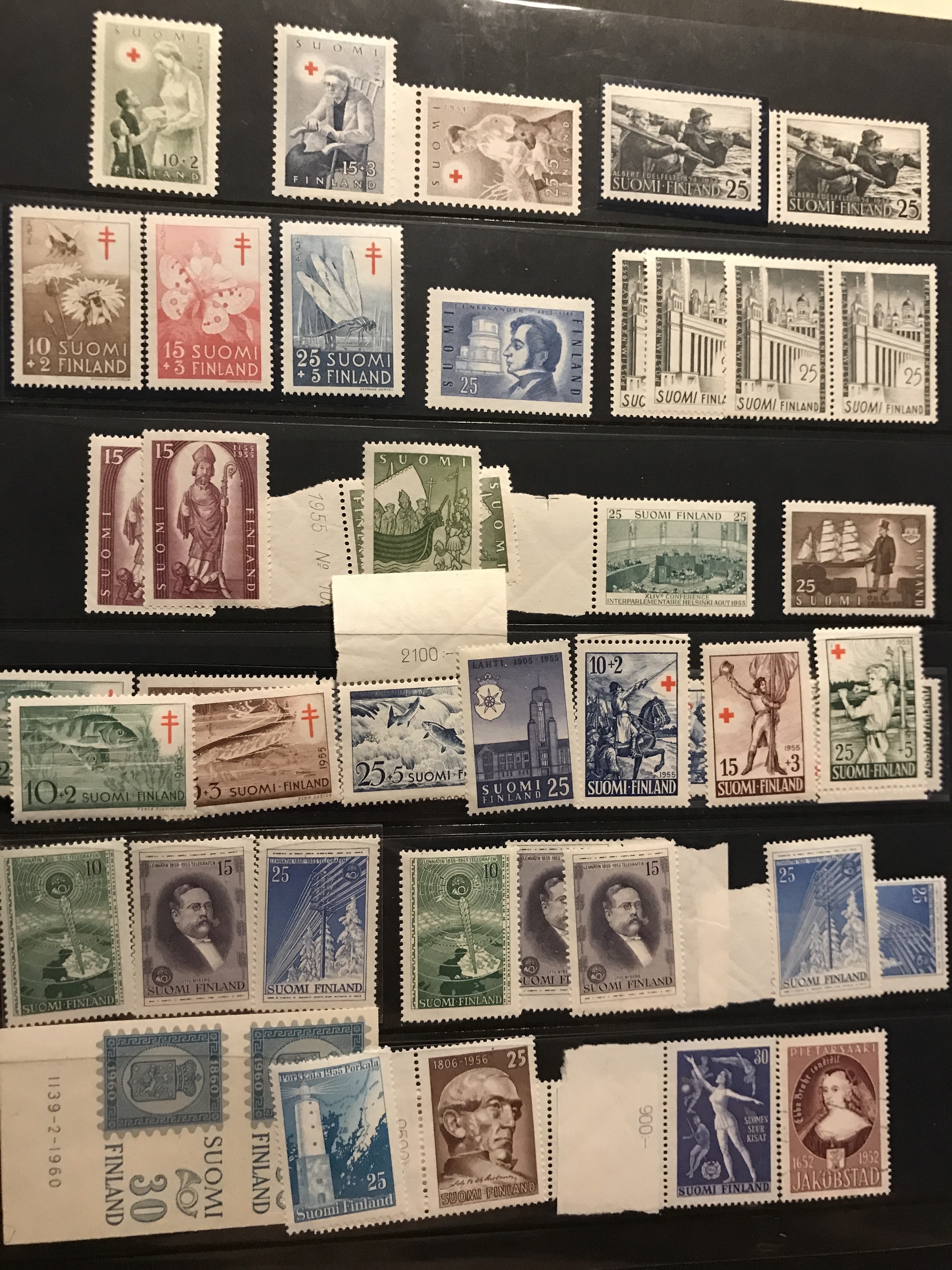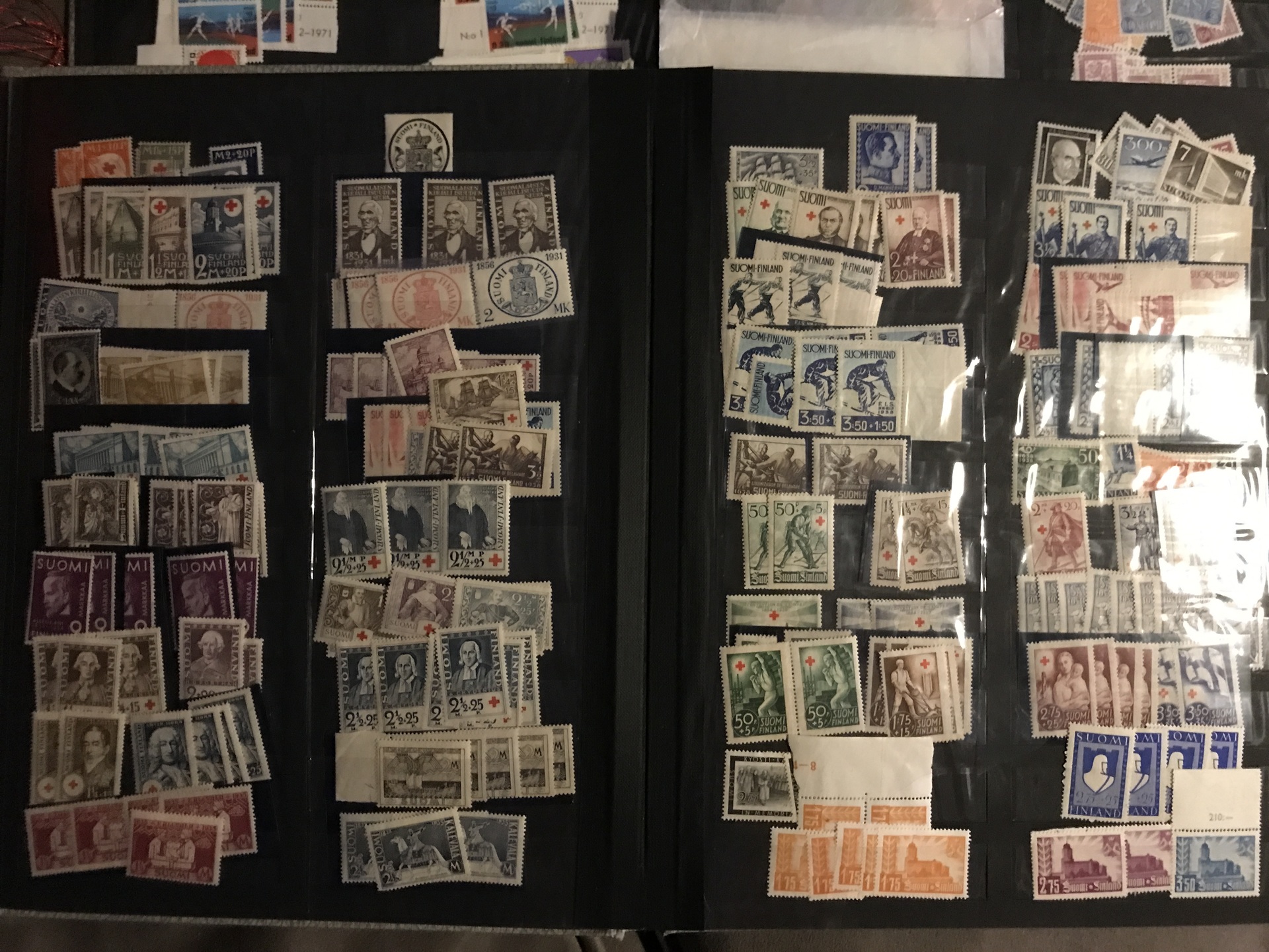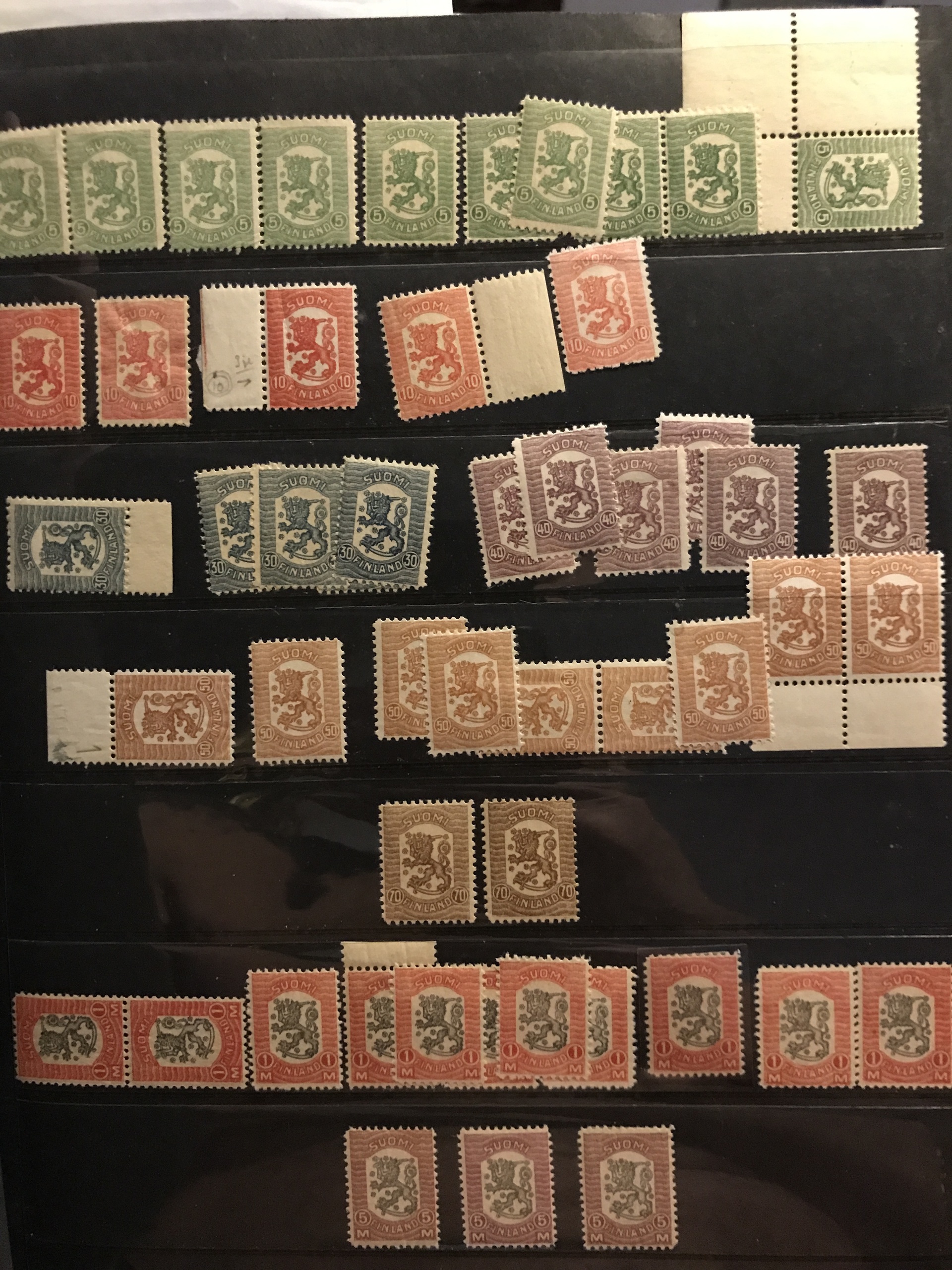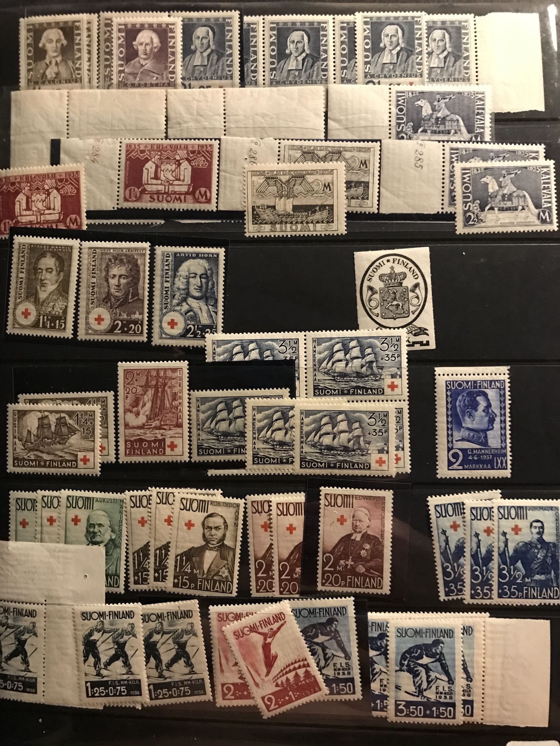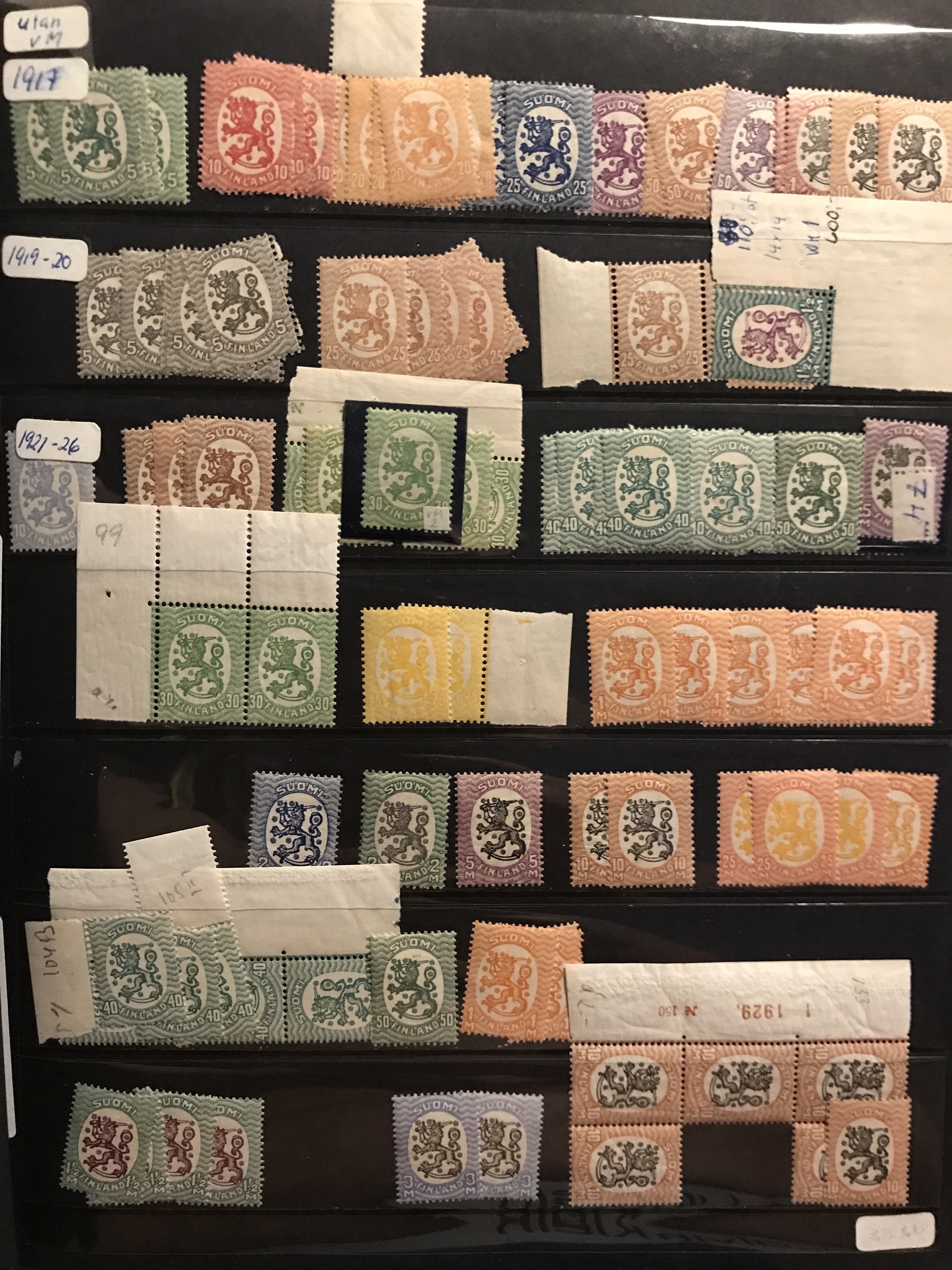 Finland. ★★/★. Three stockbooks with 1000s of stamps 1860–1980s incl. e.g. Rings F35–45, F165 *, several Lion types, Red Cross- and Tuberculosis sets, some units, etc.