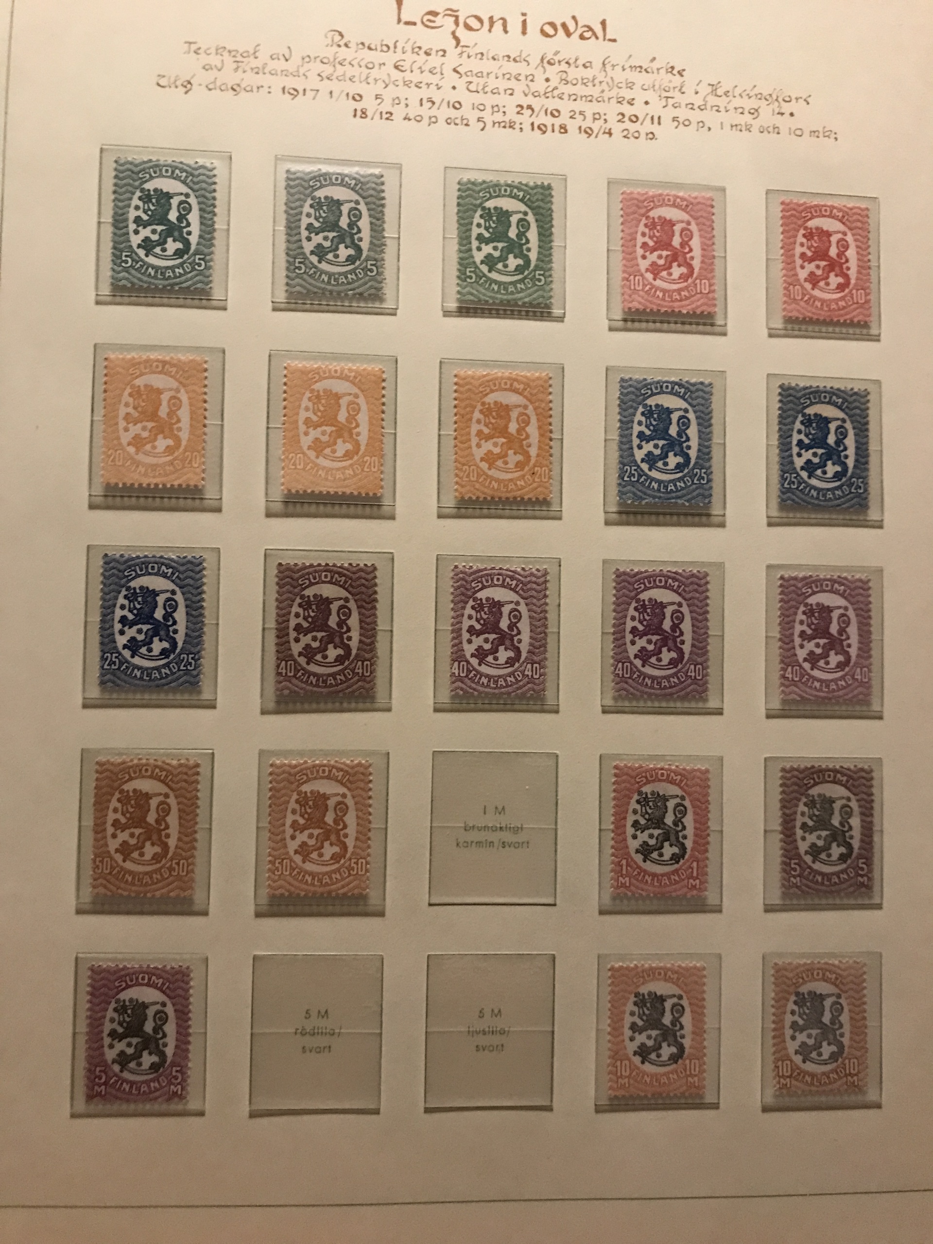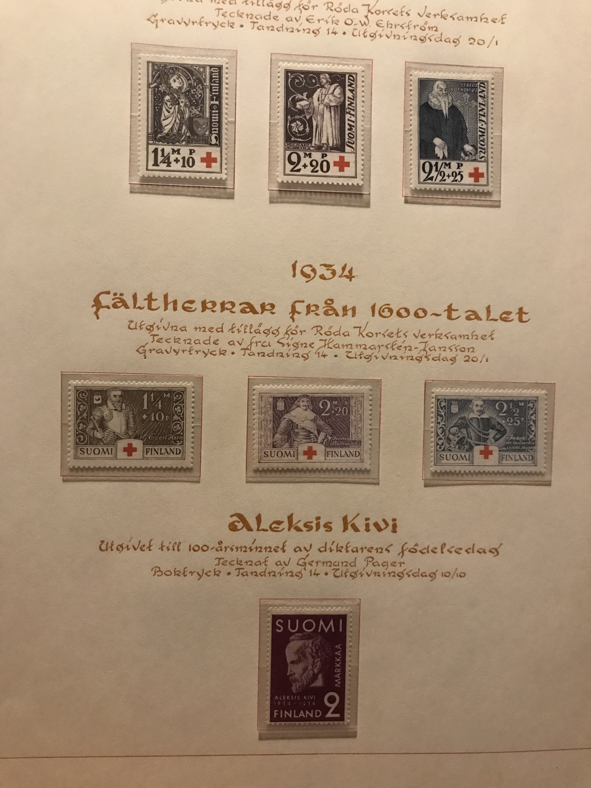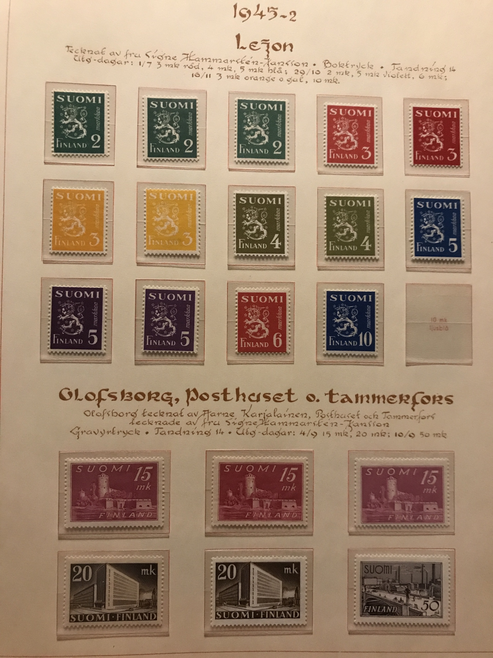 Finland. ★★/★. Collection 1889-1990 in two Estett albums incl. some Occupied areas. */** to 1947 and seemingly ** from 1948. Almost cpl from 1933. Please see a selection of scans at www.philea.se.