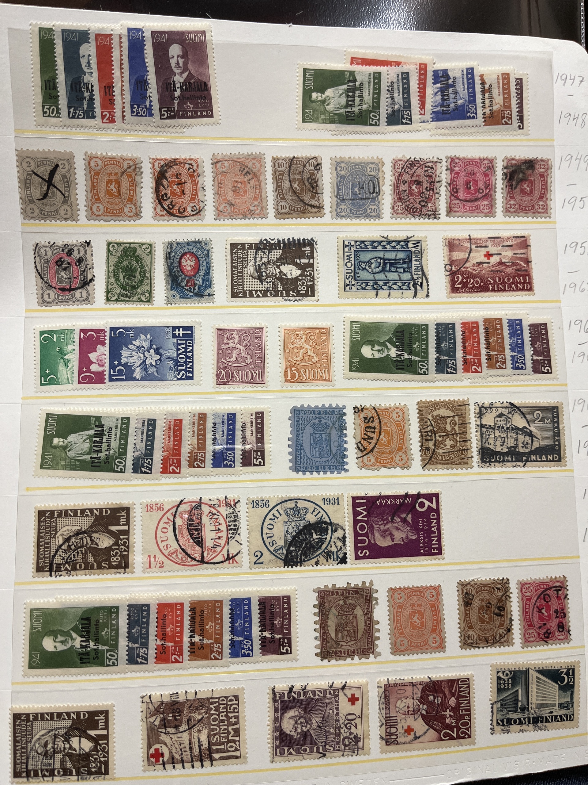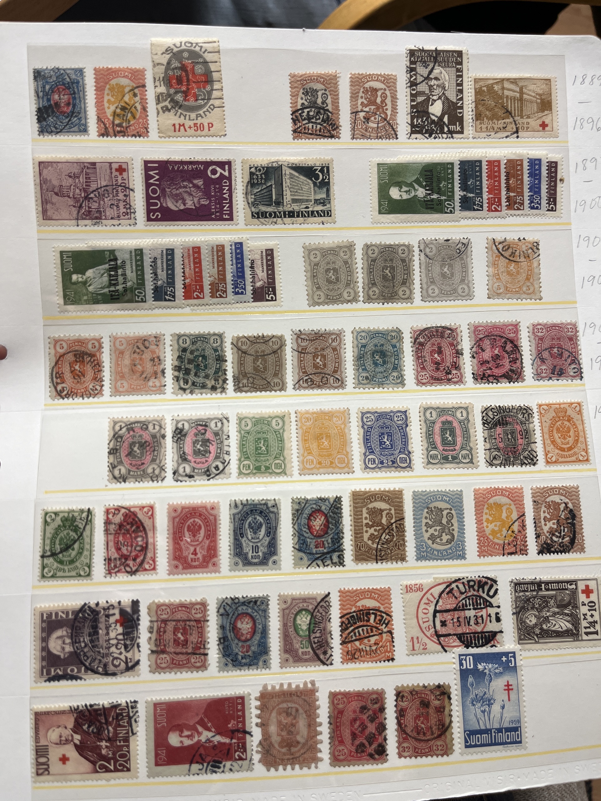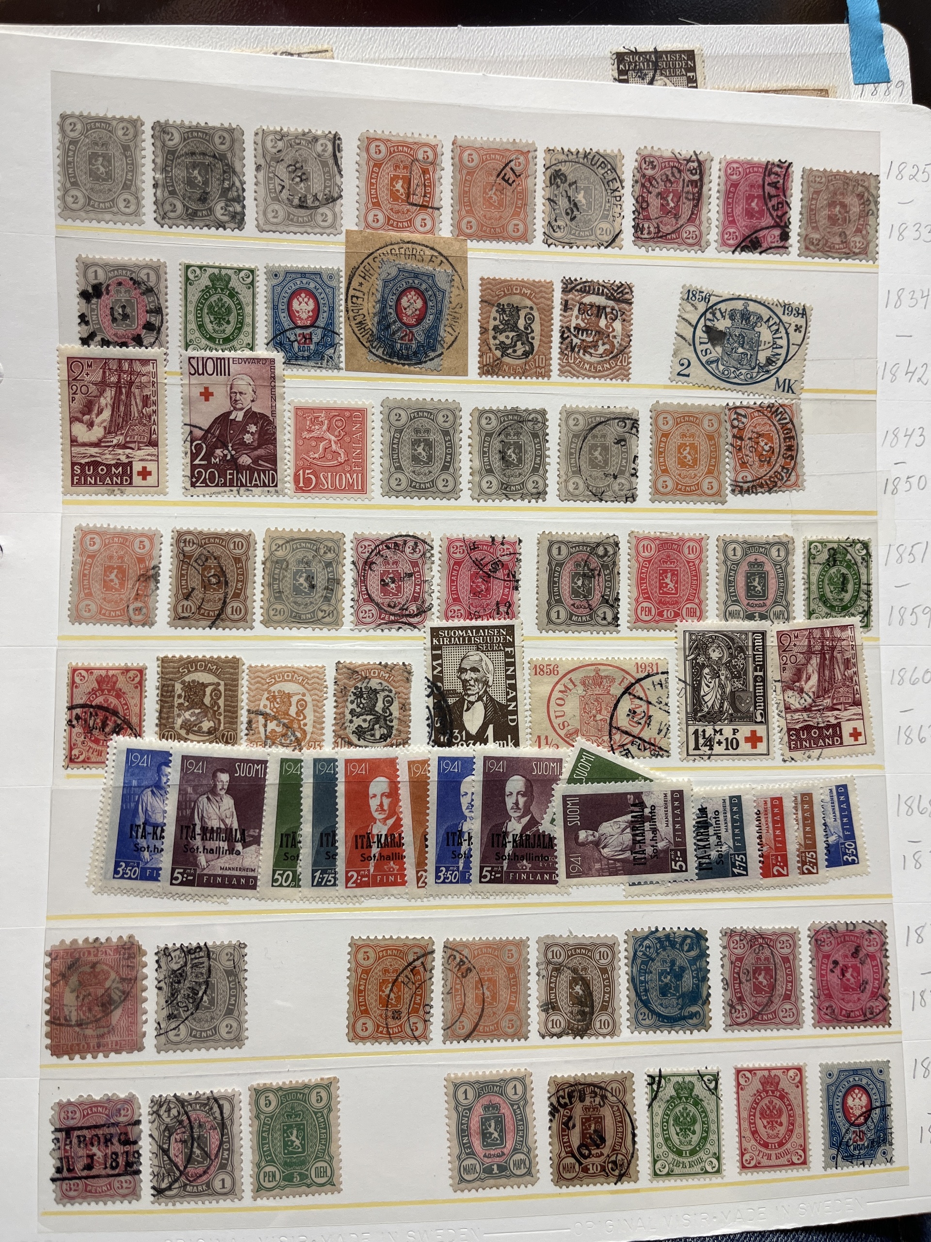 Finland. Accumulation ★★/★/⊙ 1860–1930s on three visir leaves. interesting lot with several medium priced stamps. The entire lot is presented at www.philea.se. Somewhat mixed quality. (ca. 100)