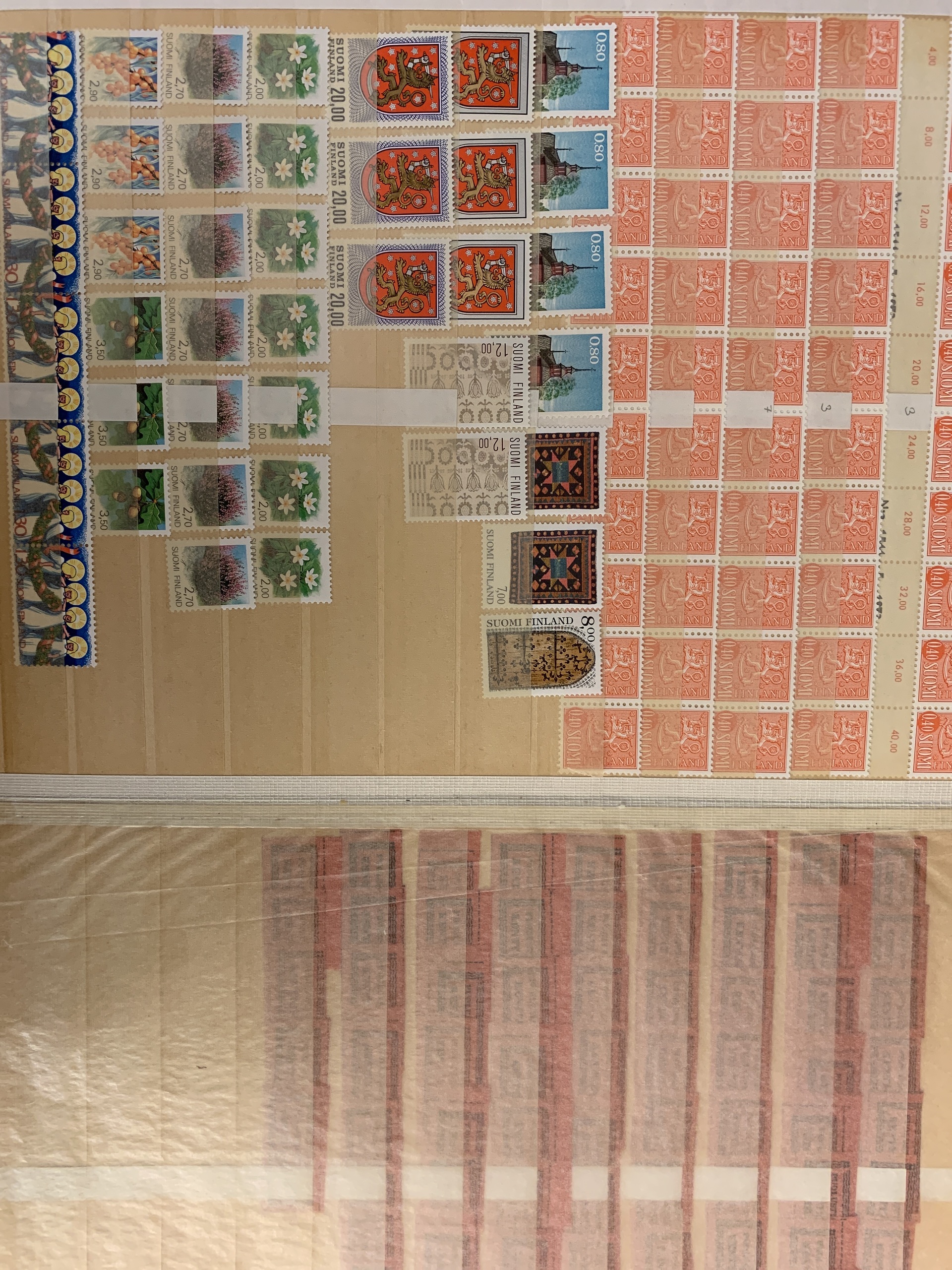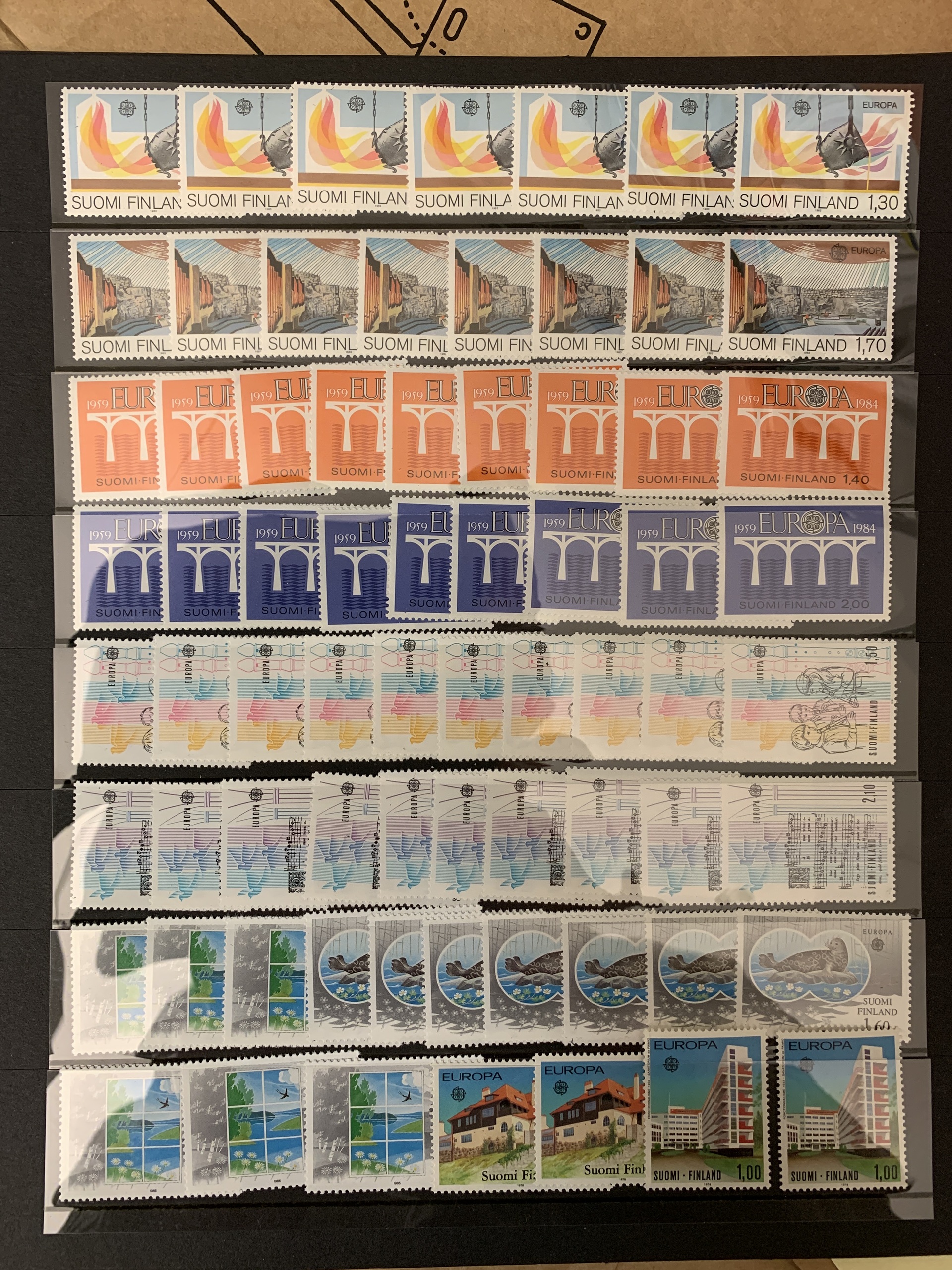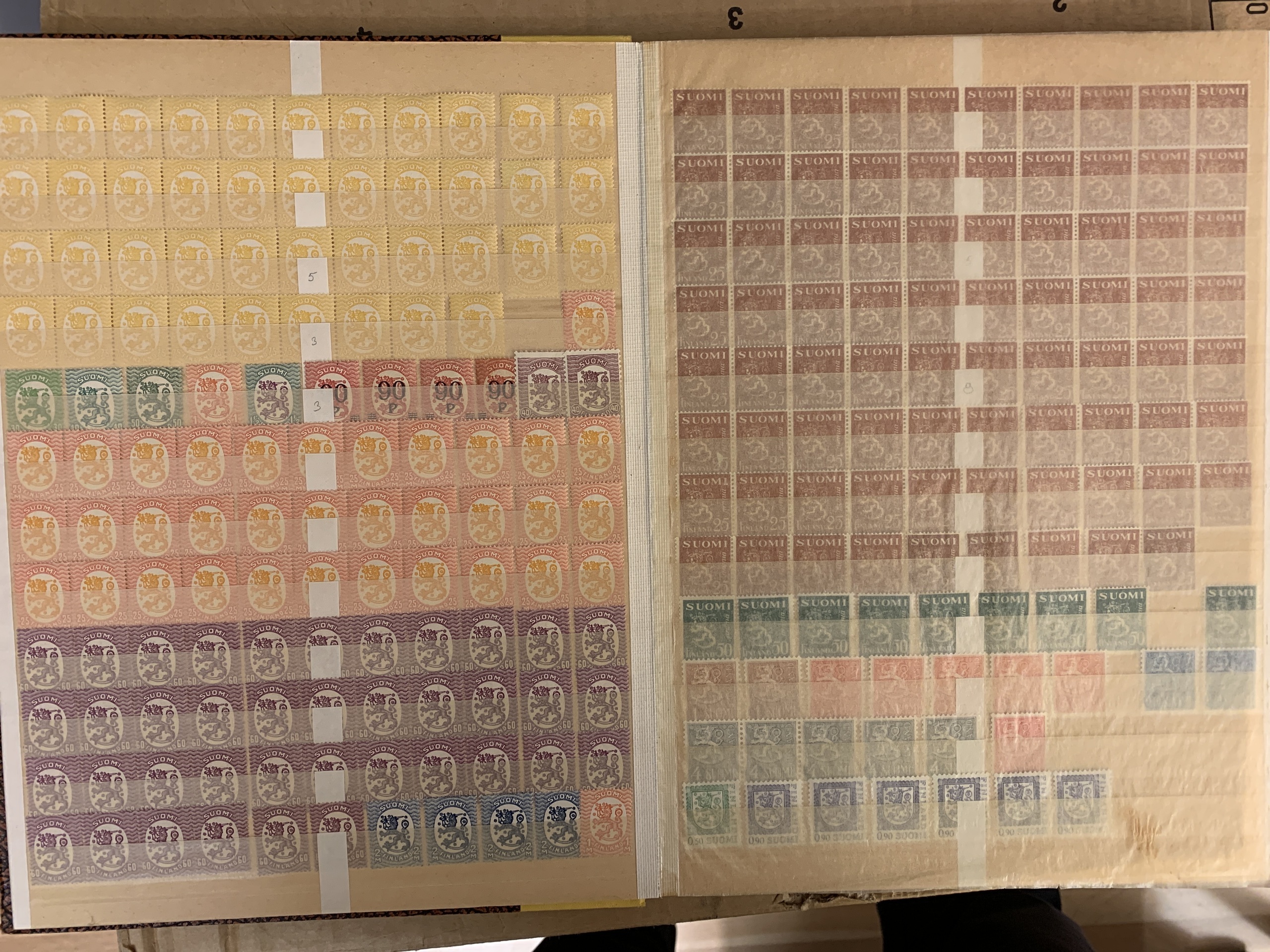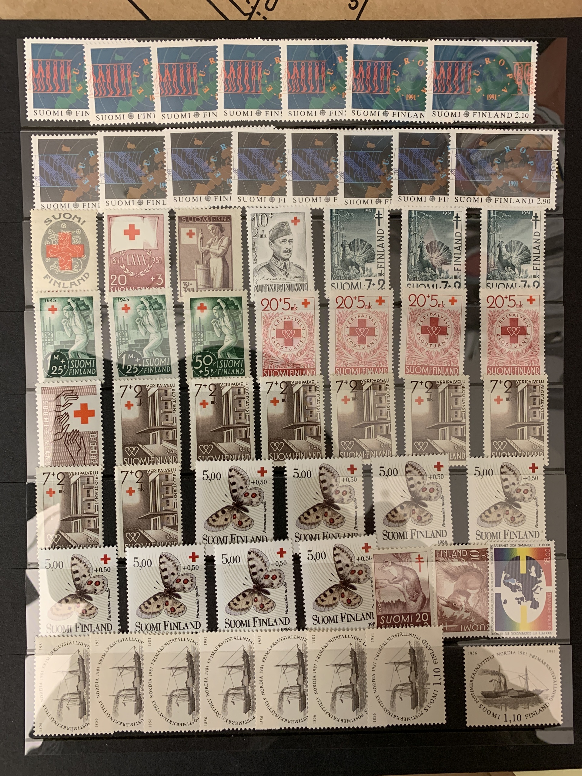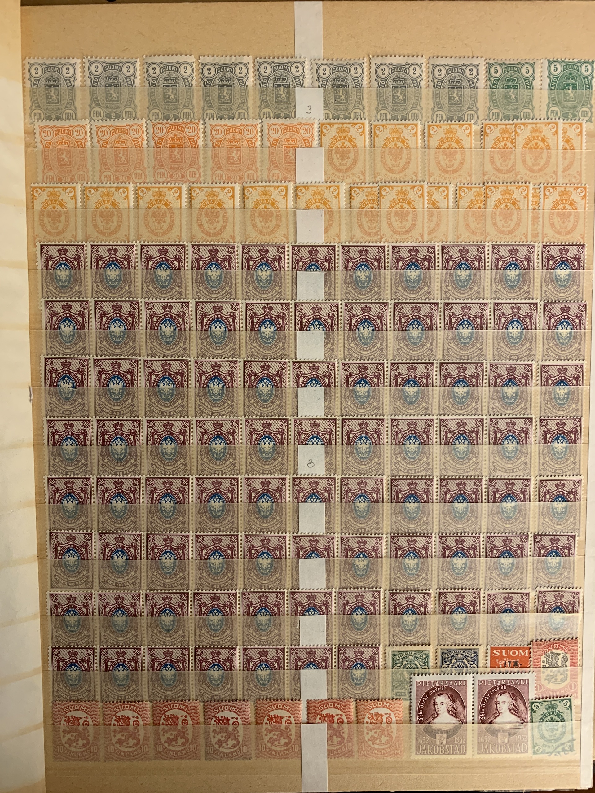 Finland. Accumulation ★★ in box. Stockbook, four Visir leaves with u/m stamps and sets + small box with stamps with plate flaws 1889–1917. Please see a selection of scans at www.philea.se.