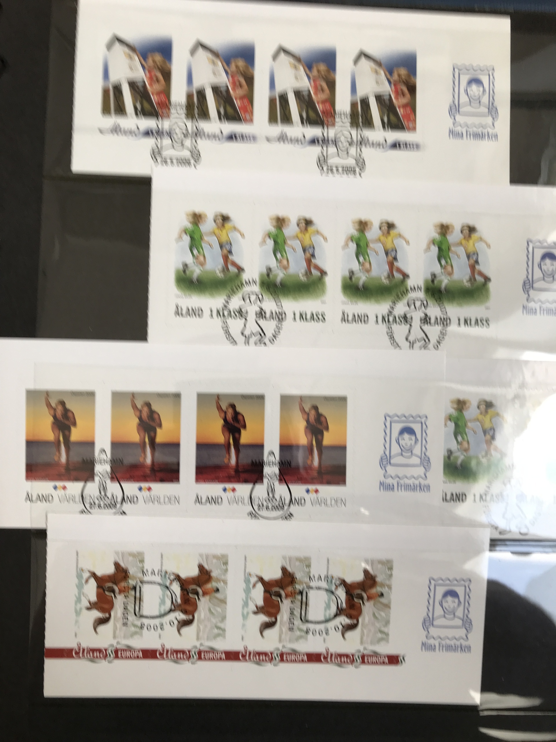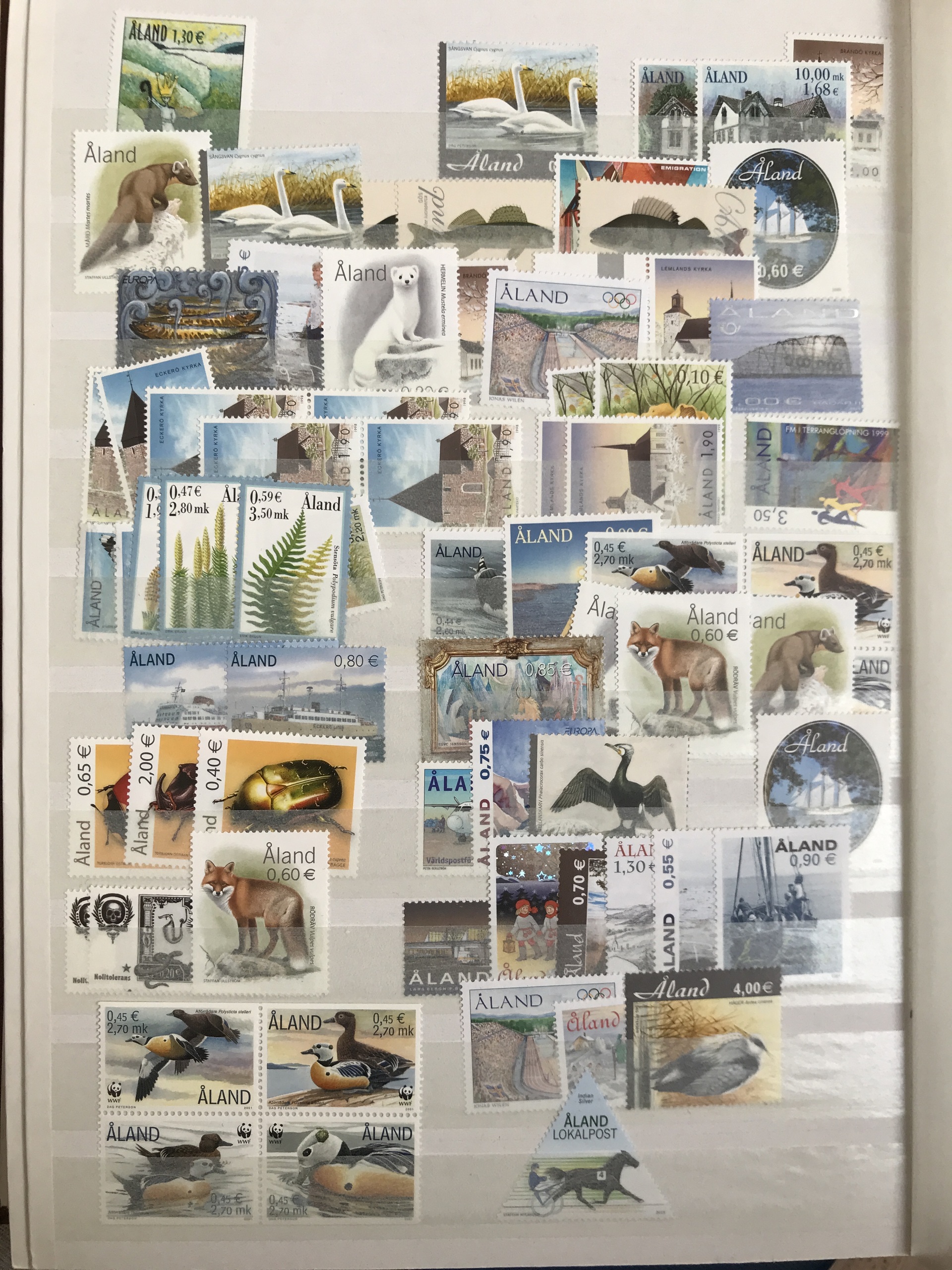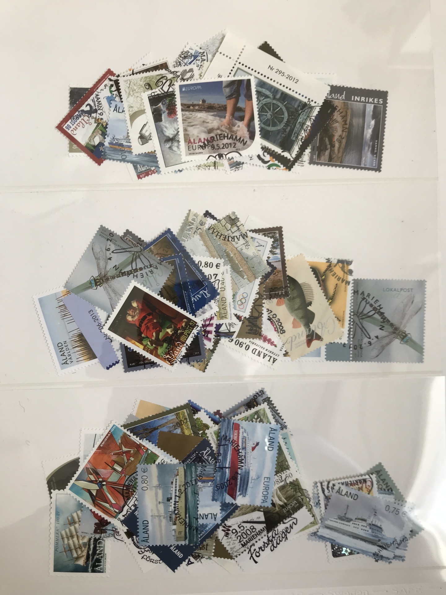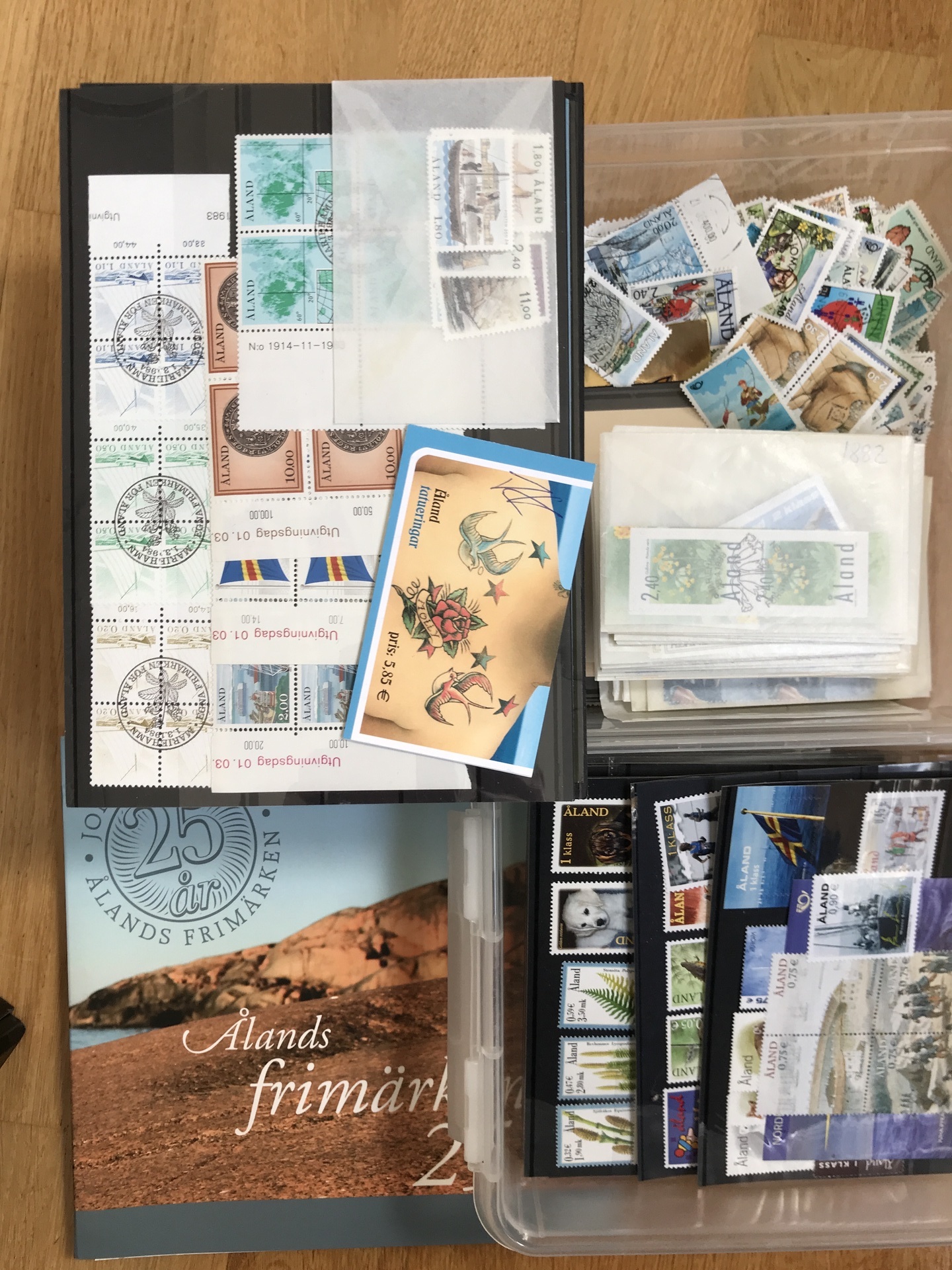 Åland. ★★/⊙. Interesting accumulation 1984–2015 in e.g. seven albums/binders incl. blocks-of-four, strips, several beautiful cancellations, 1000s of used stamps in envelopes, some sheets and cards, etc. Please see a selection of scans at www.philea.se. Approx. 17 kg.