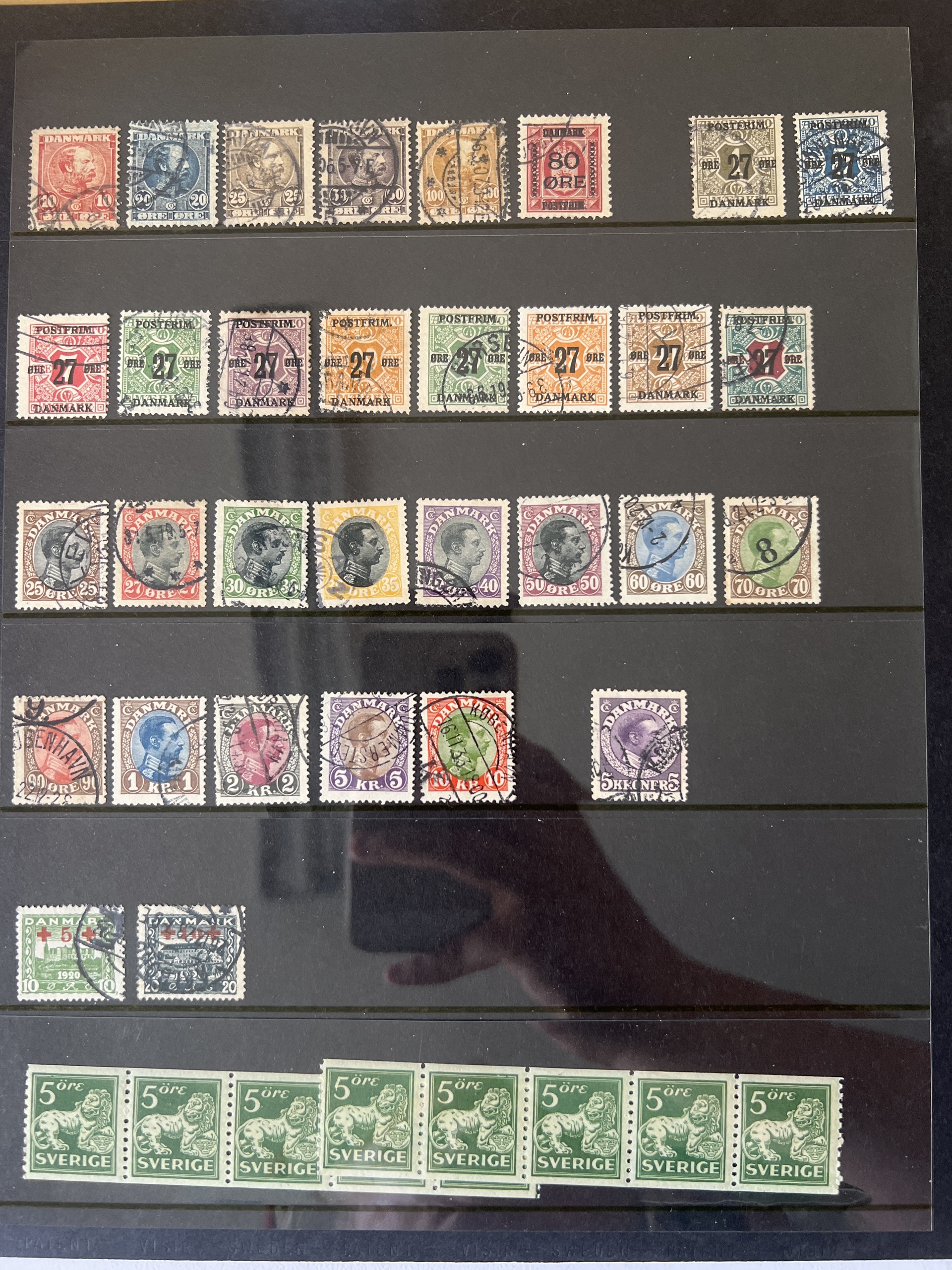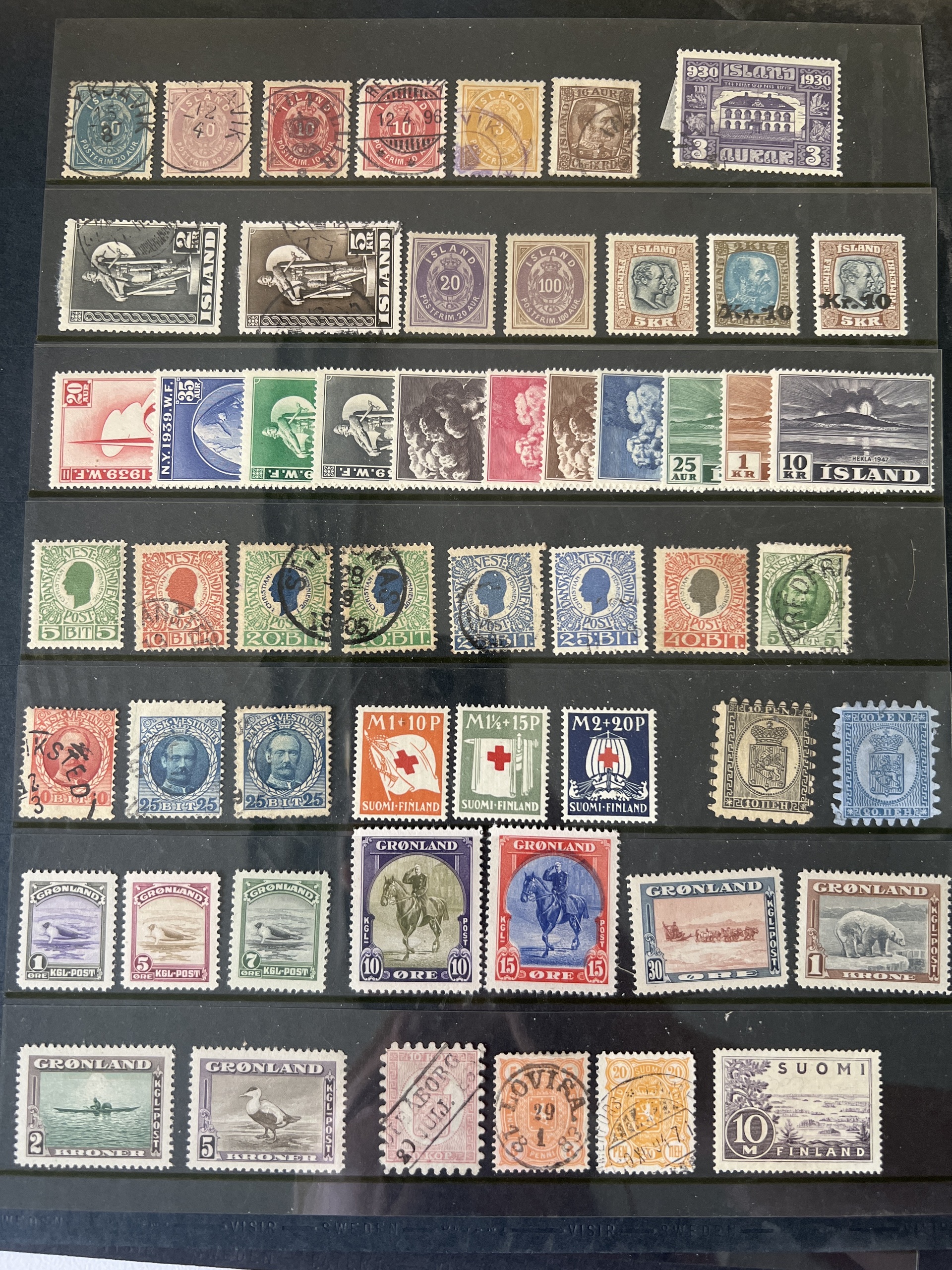 NORDIC COUNTRIES. Accumulation ★★/★/⊙ 1851–1930s on five visir leaves. Good part Denmark with many better stamps, a few better Iceland e.g. F107 *, Greenland 10–18 ** and a few Finland. The entire lot is presented at www.philea.se.