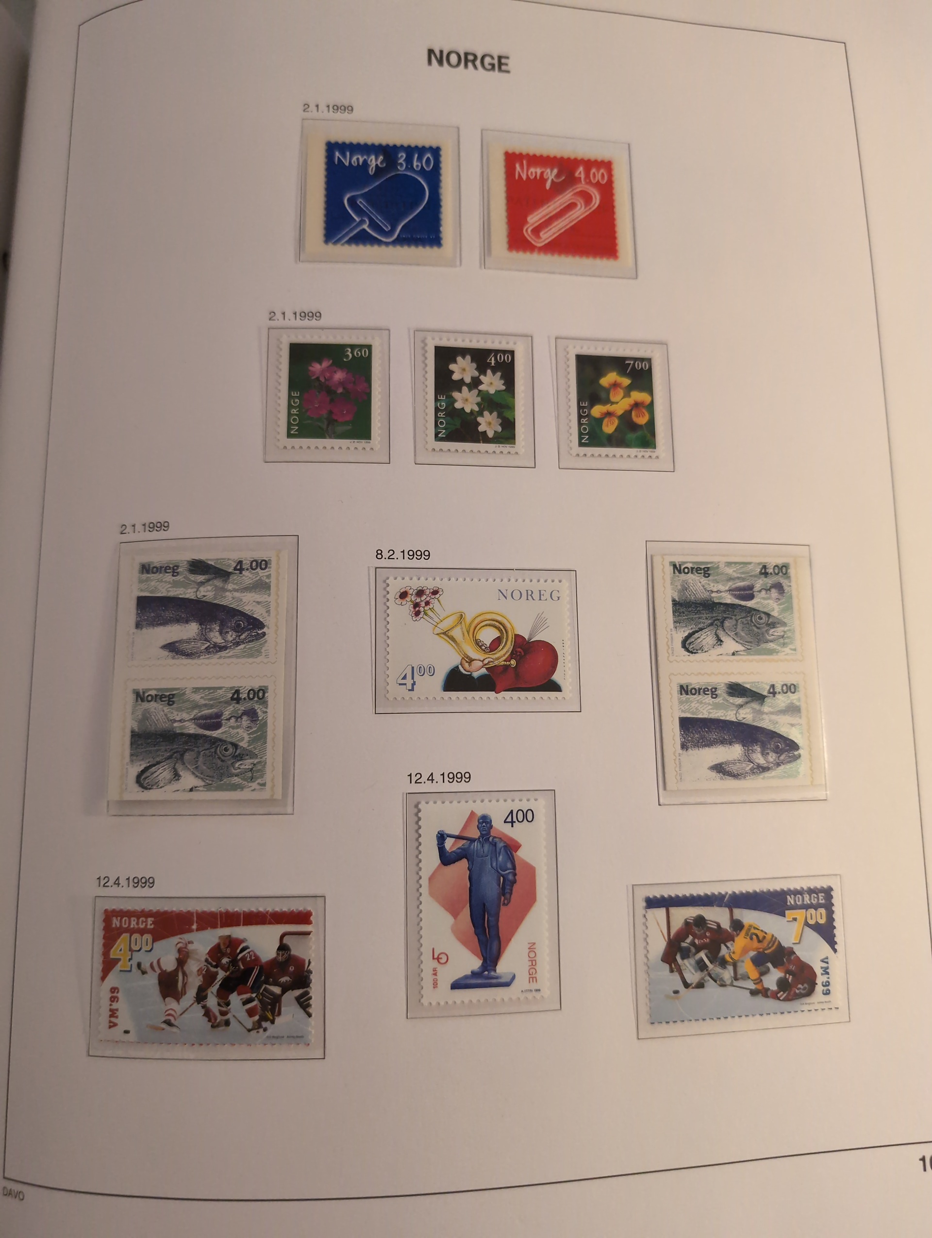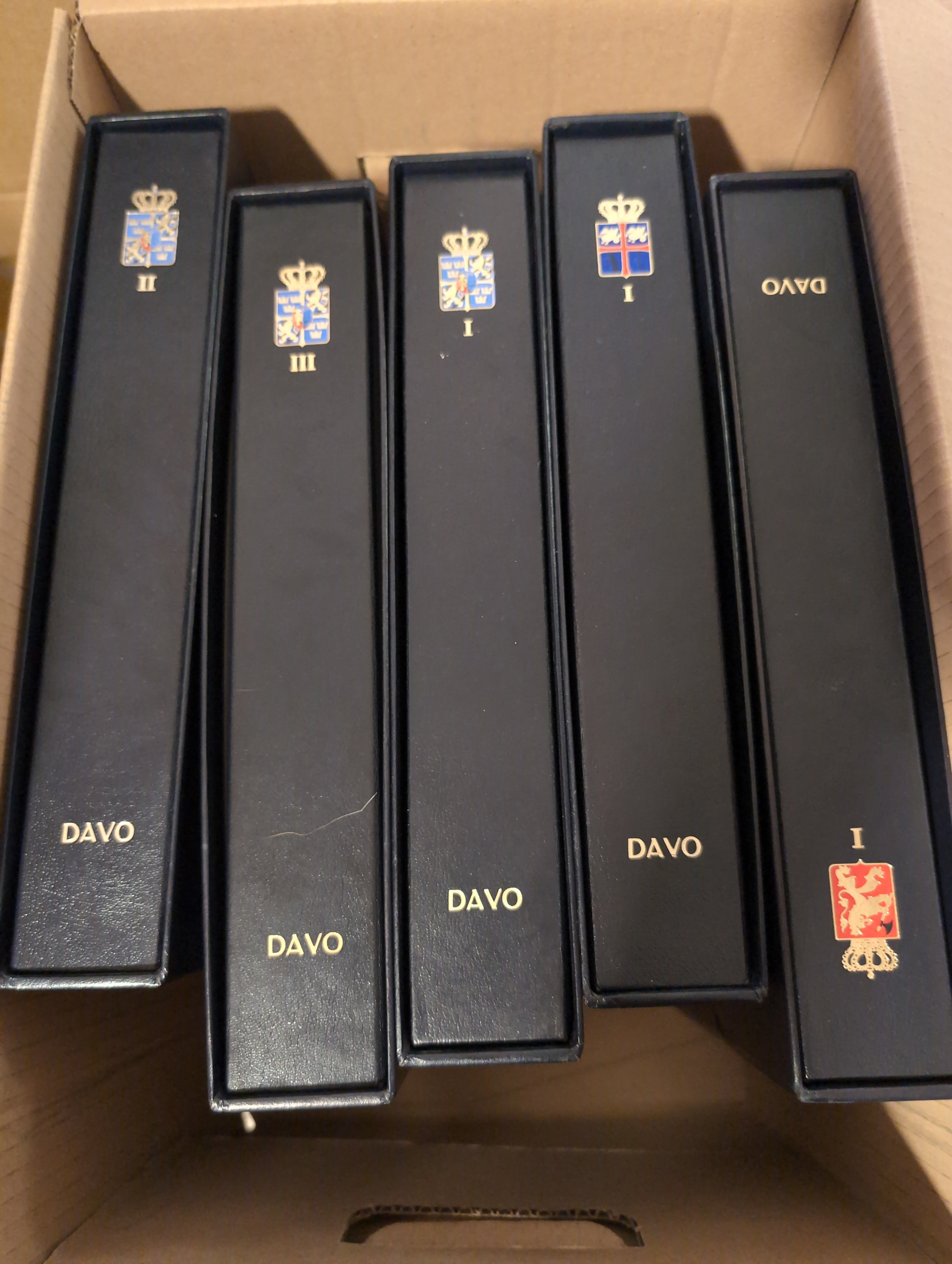 NORDIC COUNTRIES. ★★/★/⊙. Very nice Davo albums with mounts from Sweden (3), Iceland and Norway from 1945. All with pages up to 2002/2003. Rather sparsley filled. Albums look brand new and Sweden with modern face value of 6220 (incl. 'Sverige BREV' stamps). Please see a selection of scans at www.philea.se. Approx. 14 kg.