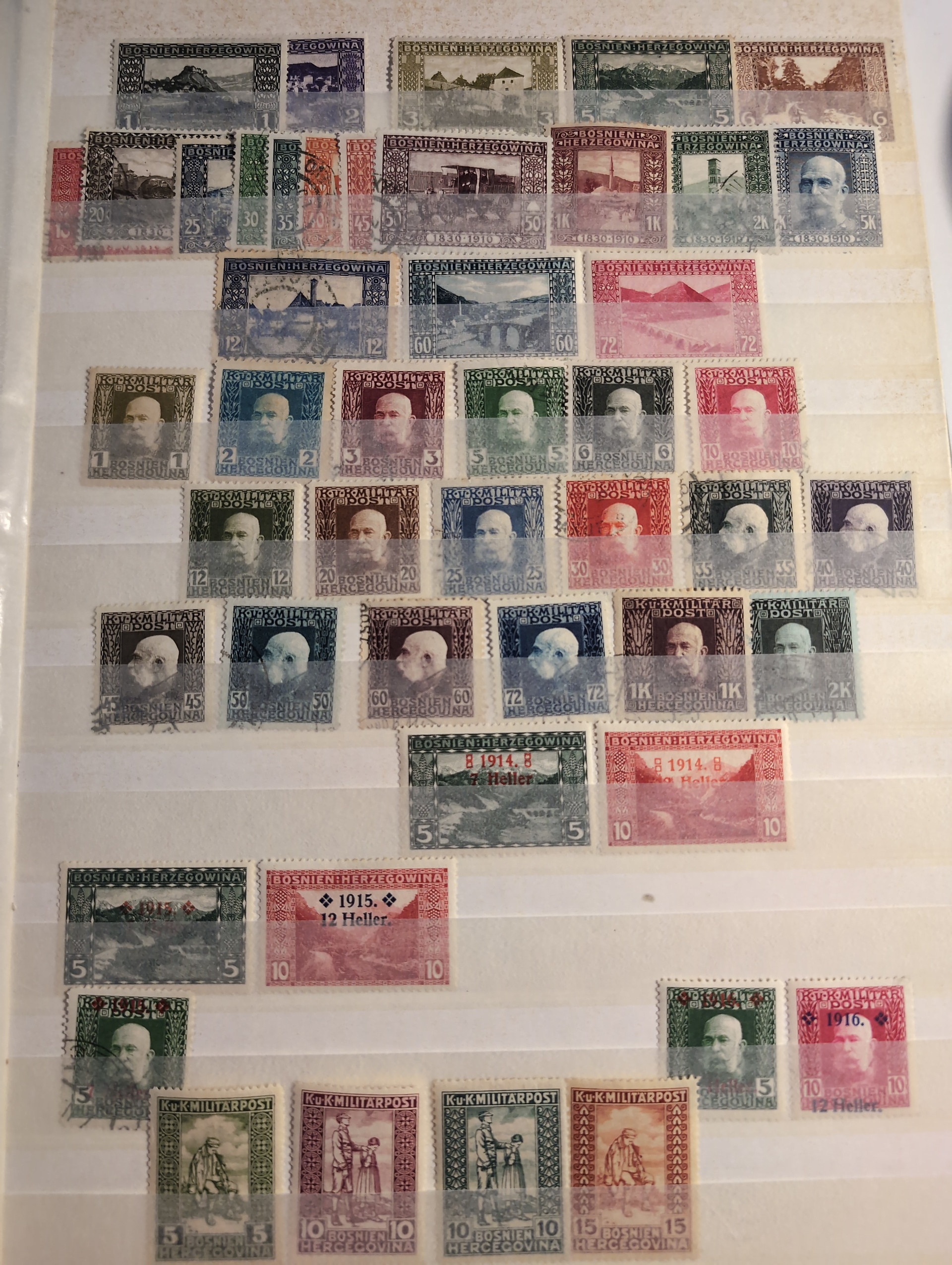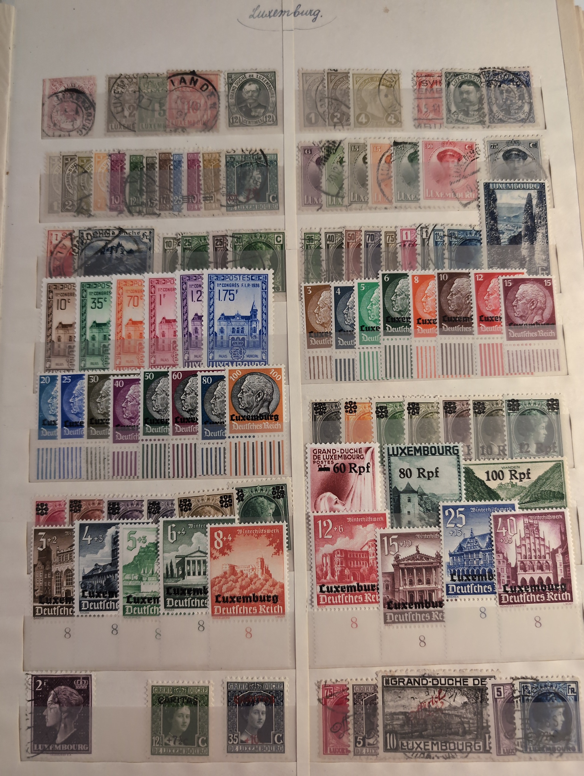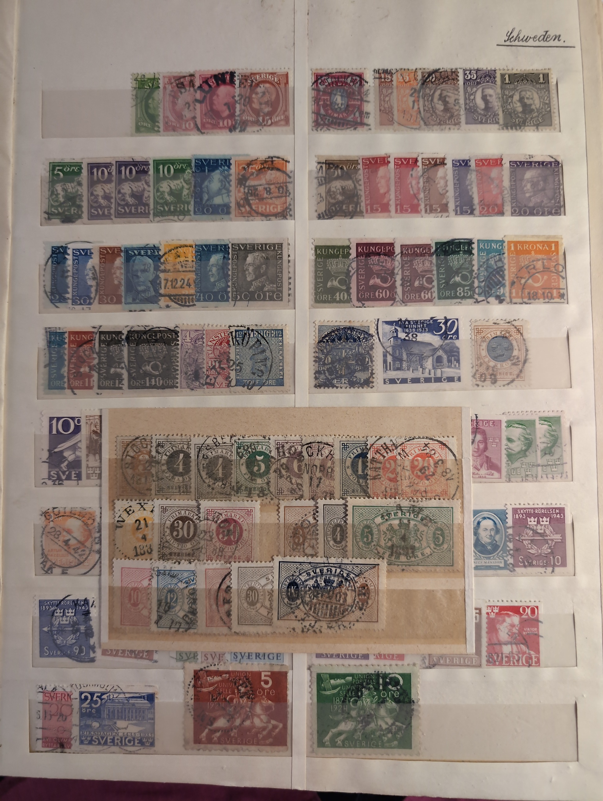 EUROPE. Collection/accumulation ★★/★/⊙ 1850s–1950s in box. Four old stockbooks with small collections from several european countries. incl better stamps and sets. Best value in Germany, Austria with B&H, BeNeLux and Hungary. A few non-european pages is included. Please see a selection of scans at www.philea.se. Mostly fine quality. Approx. 7 kg. (1000s)