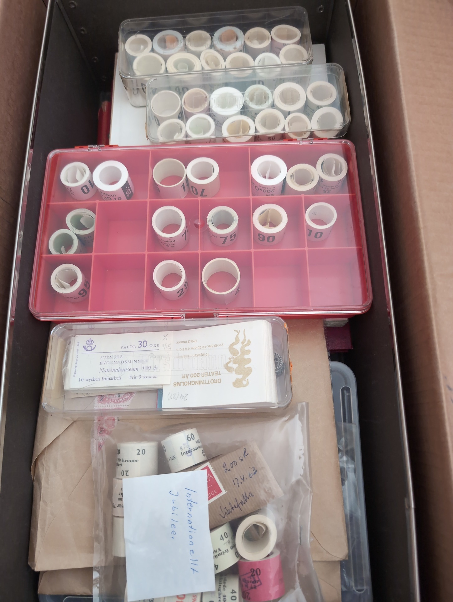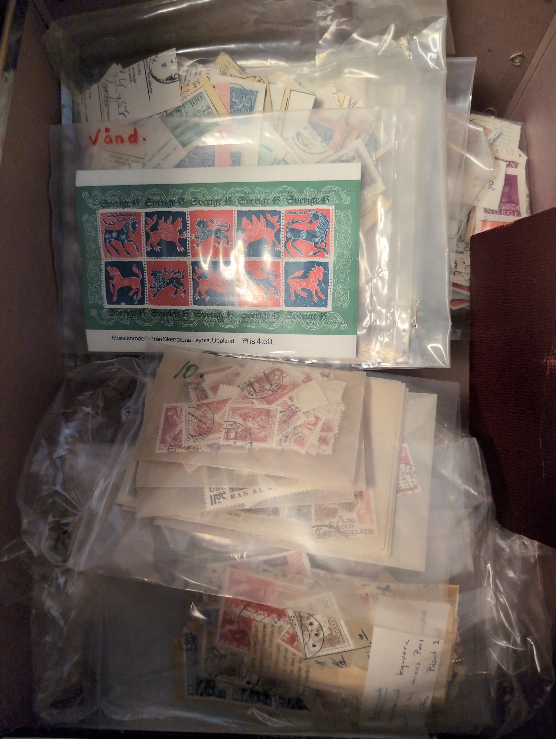 EUROPE. Accumulation ★★/★/⊙ 1890s–1970s in removal box. Much Sweden with full rolls, booklets and one album Oscar II, some europe with Lichtenstein and Turkey and a lot more incl. on paper and packets with stamps. In addition there is Swedish bank notes about 500 kr unc. Please see a selection of scans at www.philea.se. Good quality. Approx. 14 kg. (1000s)
