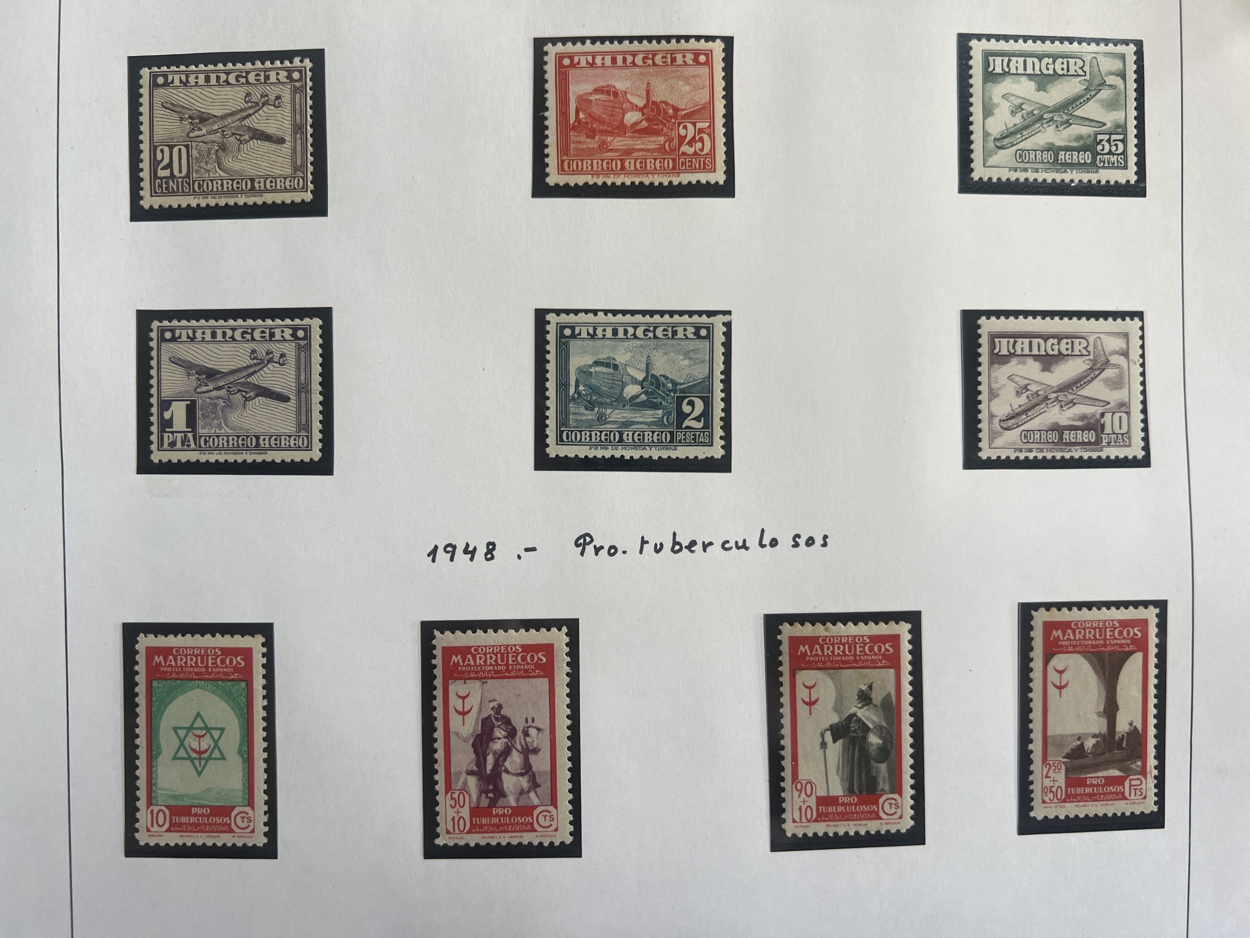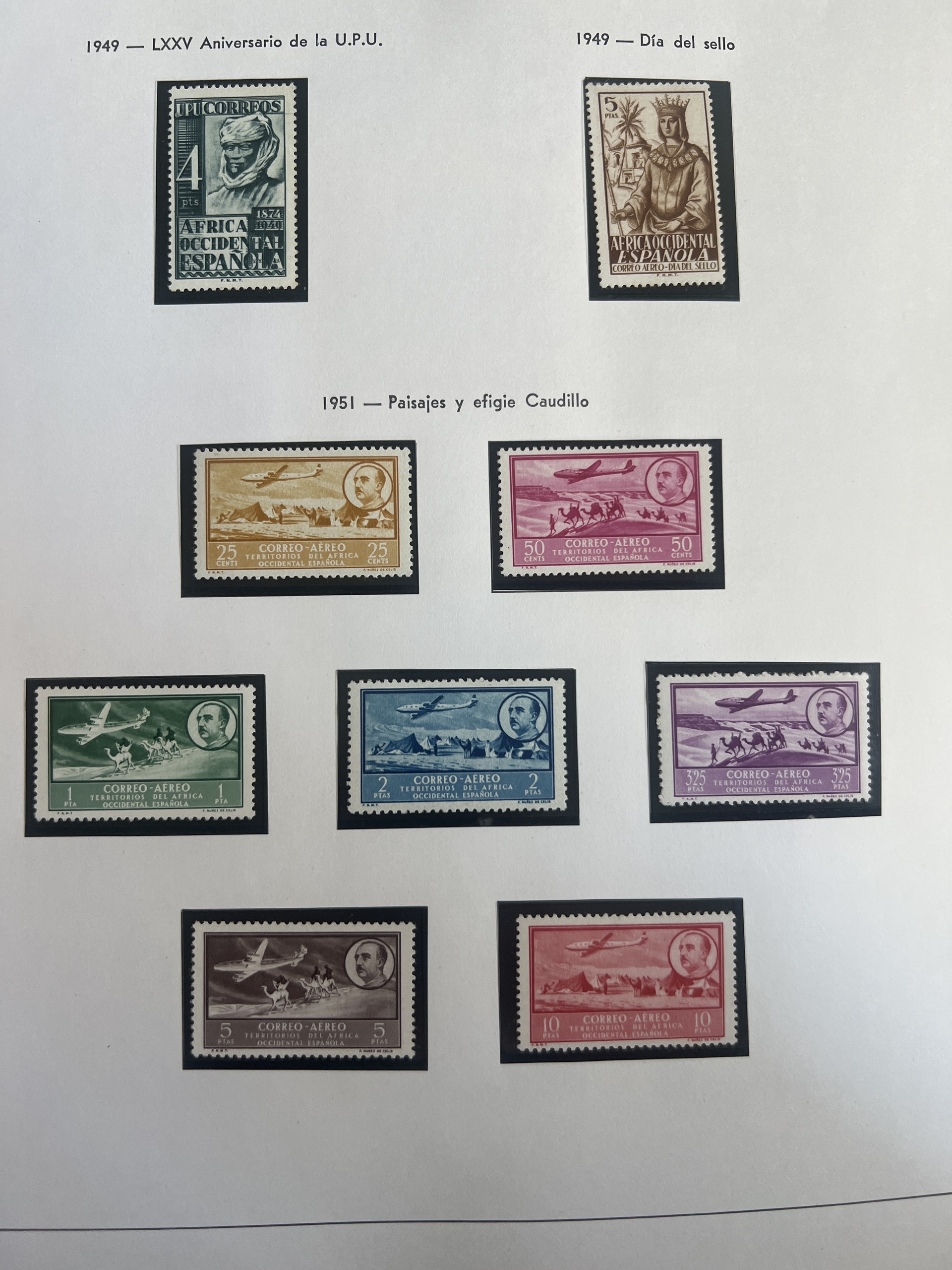 ALL WORLD. Collection ★★/★ 1880–2004 in two albums. Spanish Colonies in 2 albums with Equatiorial Guinea complete 1980–2004, Gulf of Guinea. Fernando Poo, Rio Muni, Spanish Morroco, Ifni, Cape Juby, Tanger and some Cuba and Puerto Rico lots of sets 1920s–1960s generally mint up to 1950 and then Mint never hinged. Please see a selection of scans at www.philea.se. Mostly fine quality. Approx. 6 kg. (1000–1500)