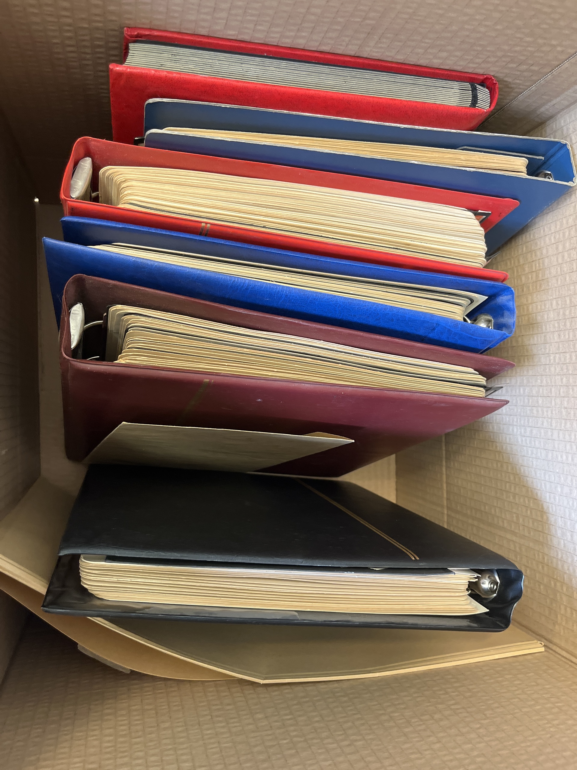 ALL WORLD. Accumulation used Old–modern in box with six albums. Most Europe – Germany. Approx. 11 kg.