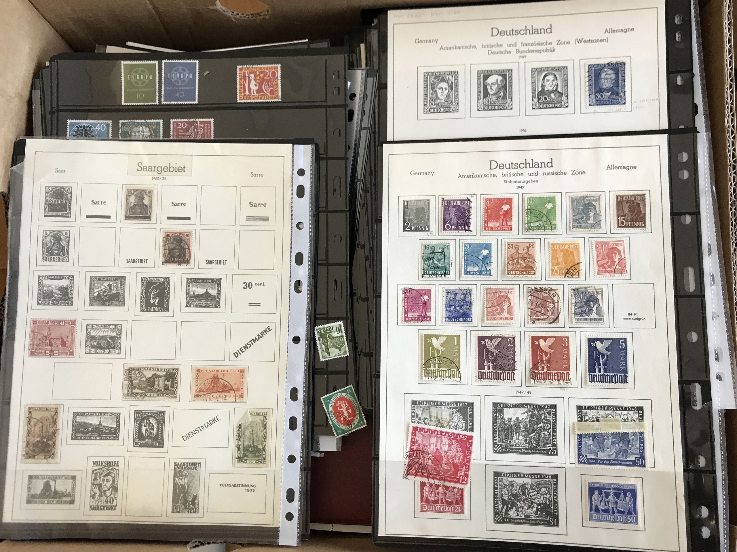 ALL WORLD. ★★/★/⊙. Banana box with 1000s of stamps old–modern in seven stockbooks, threee binders + several leaves incl. e.g. Sweden and Germany, some ** sheets, etc. Approx. 19 kg.
