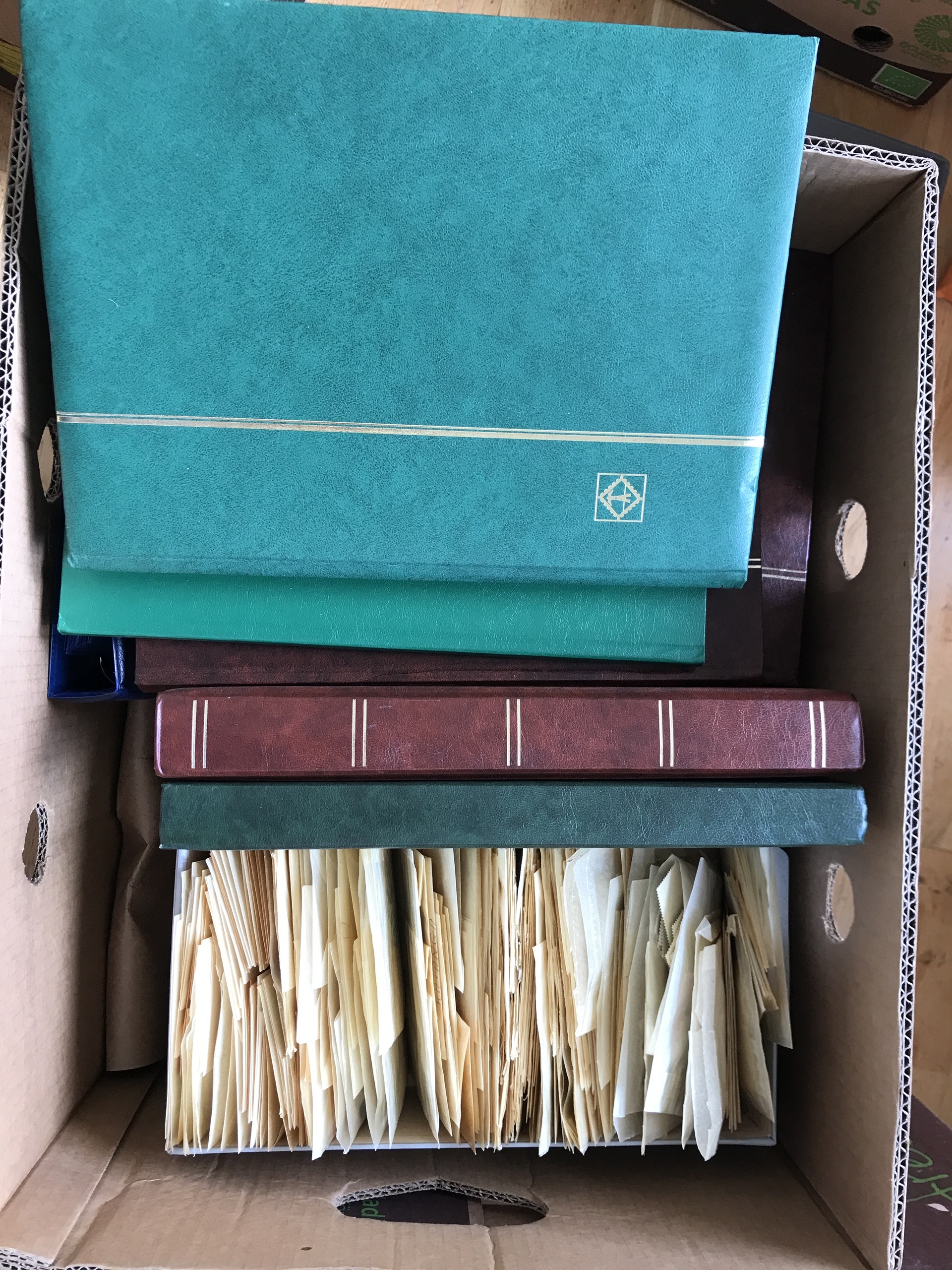ALL WORLD. Mostly used. Accumulation old-modern in eight stockbooks, leaves, glasin envelopes and some circulation booklets etc. Also five empty stockbooks. Approx. 16 kg.