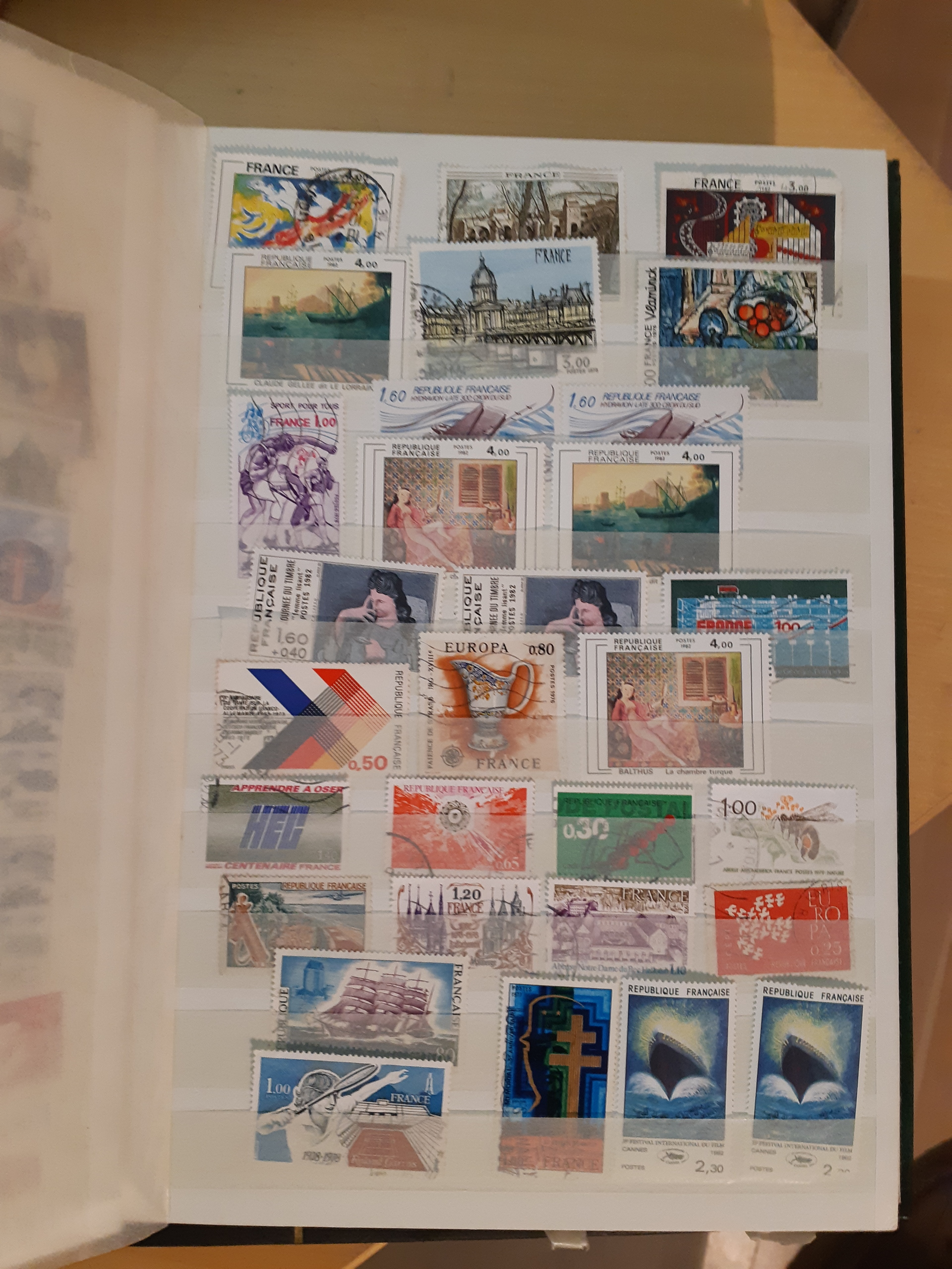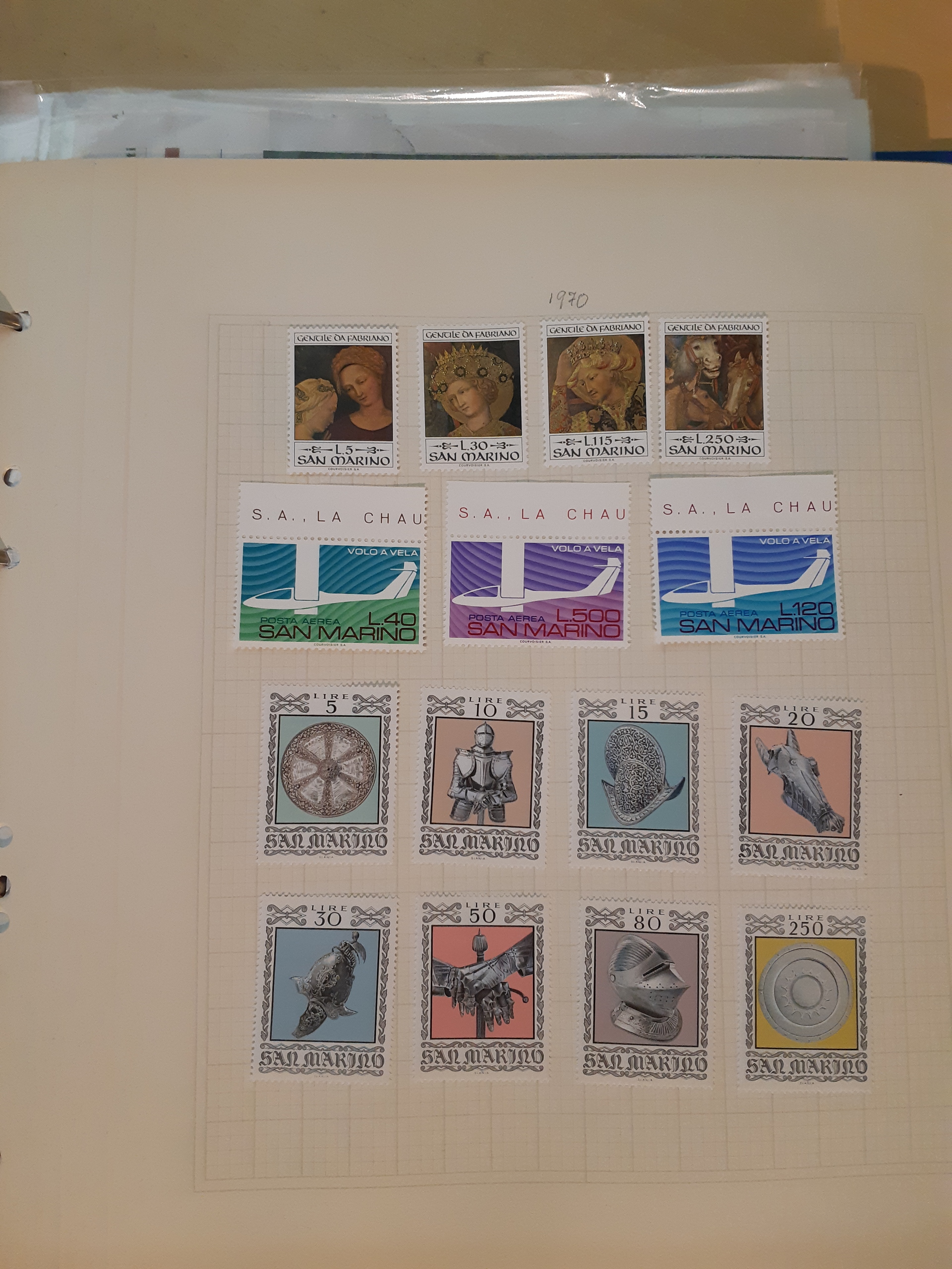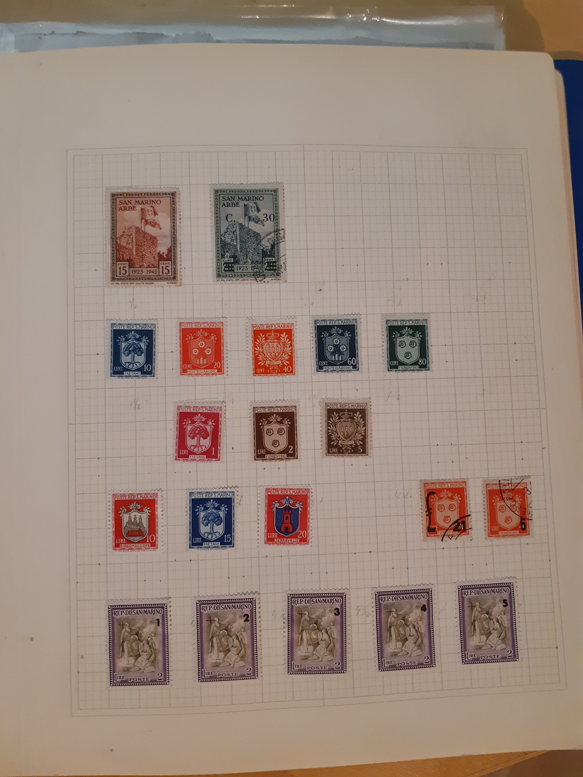 ALL WORLD. Accumulation ★★/★/⊙ old–1990s in seven stockbooks/albums in box. Incl. e.g. San Marino and air ships. Also one small stockbook with forgeries (photo copies). Somewhat mixed quality. Approx. 10 kg. (1000s)