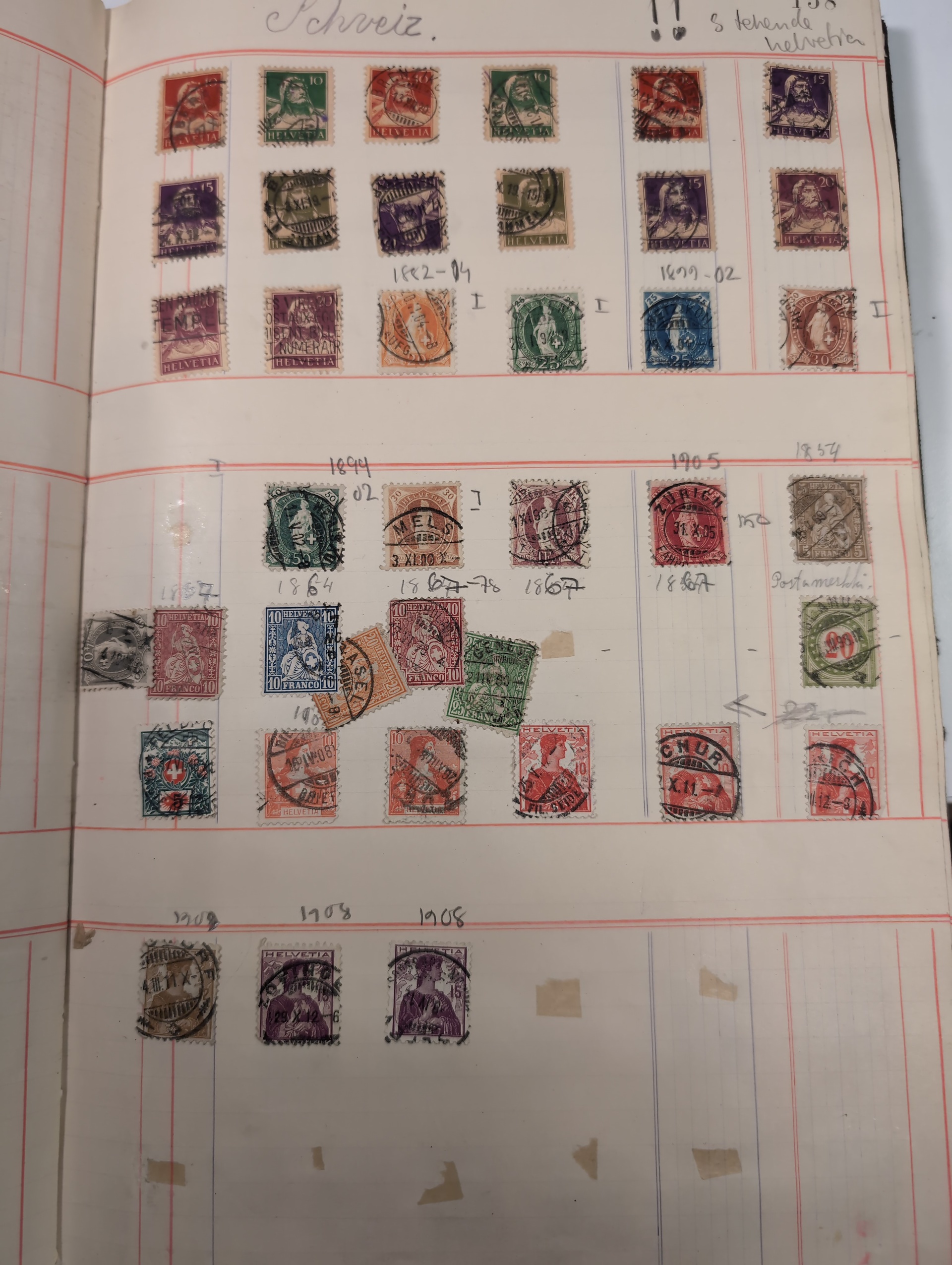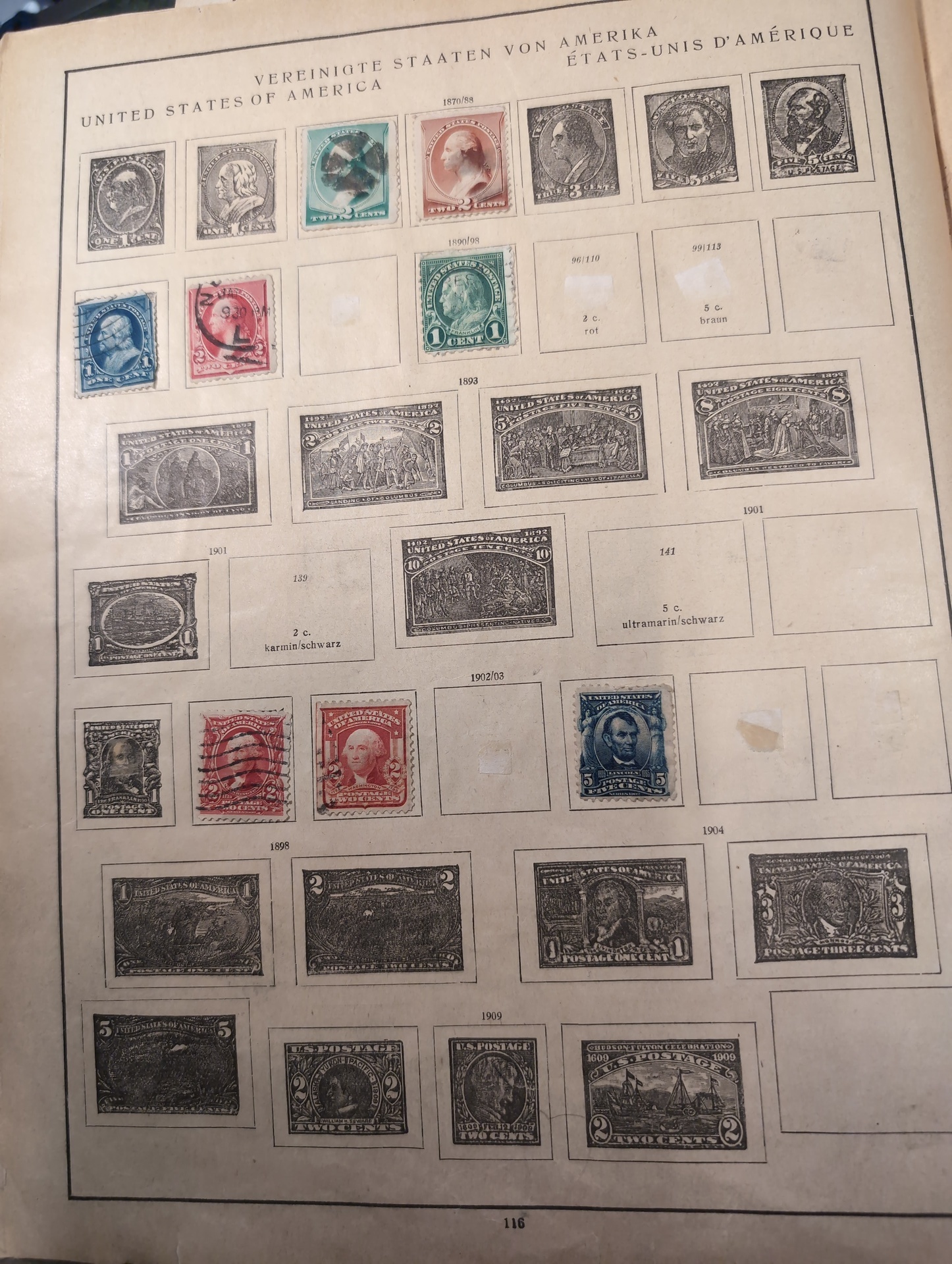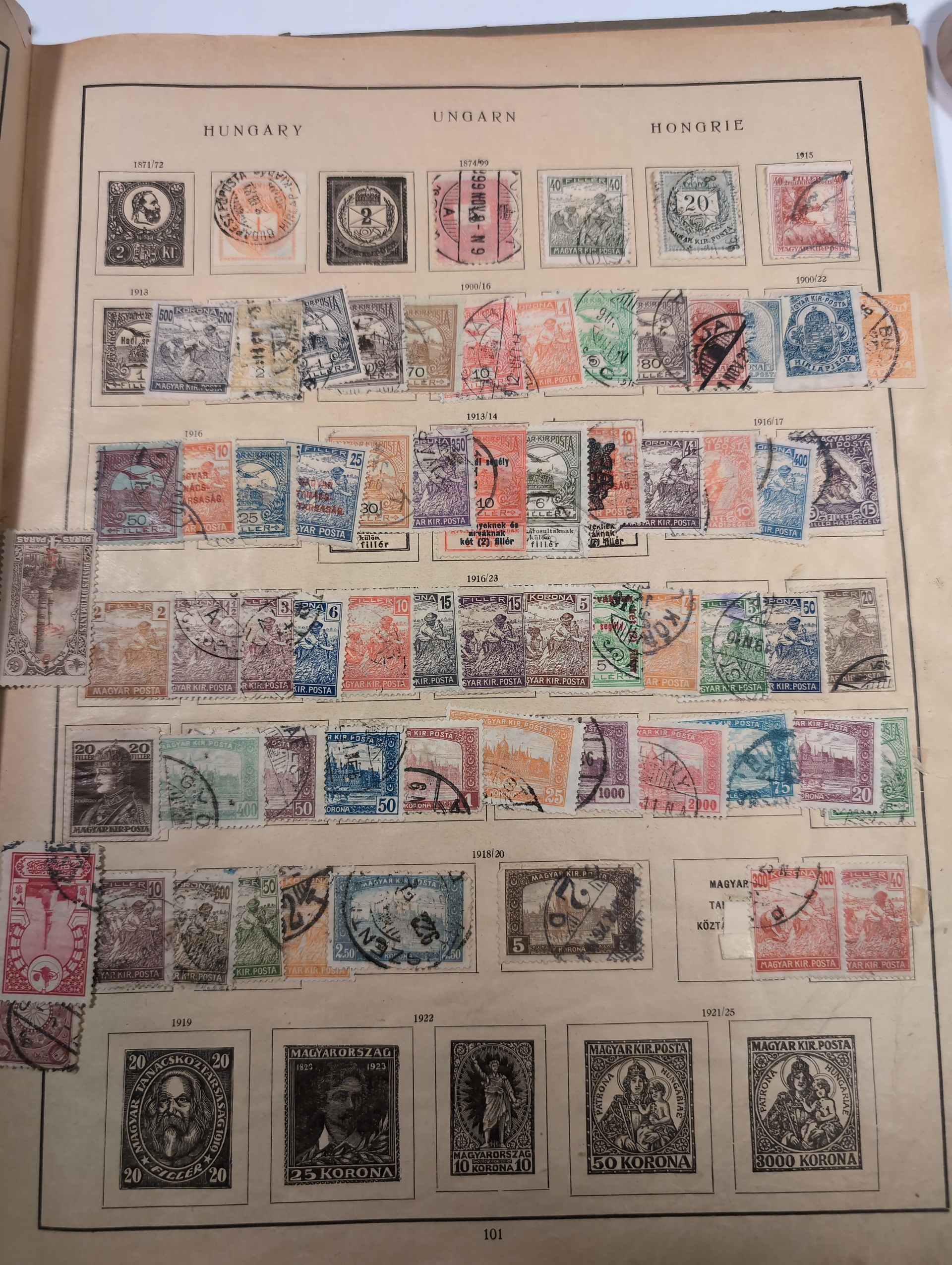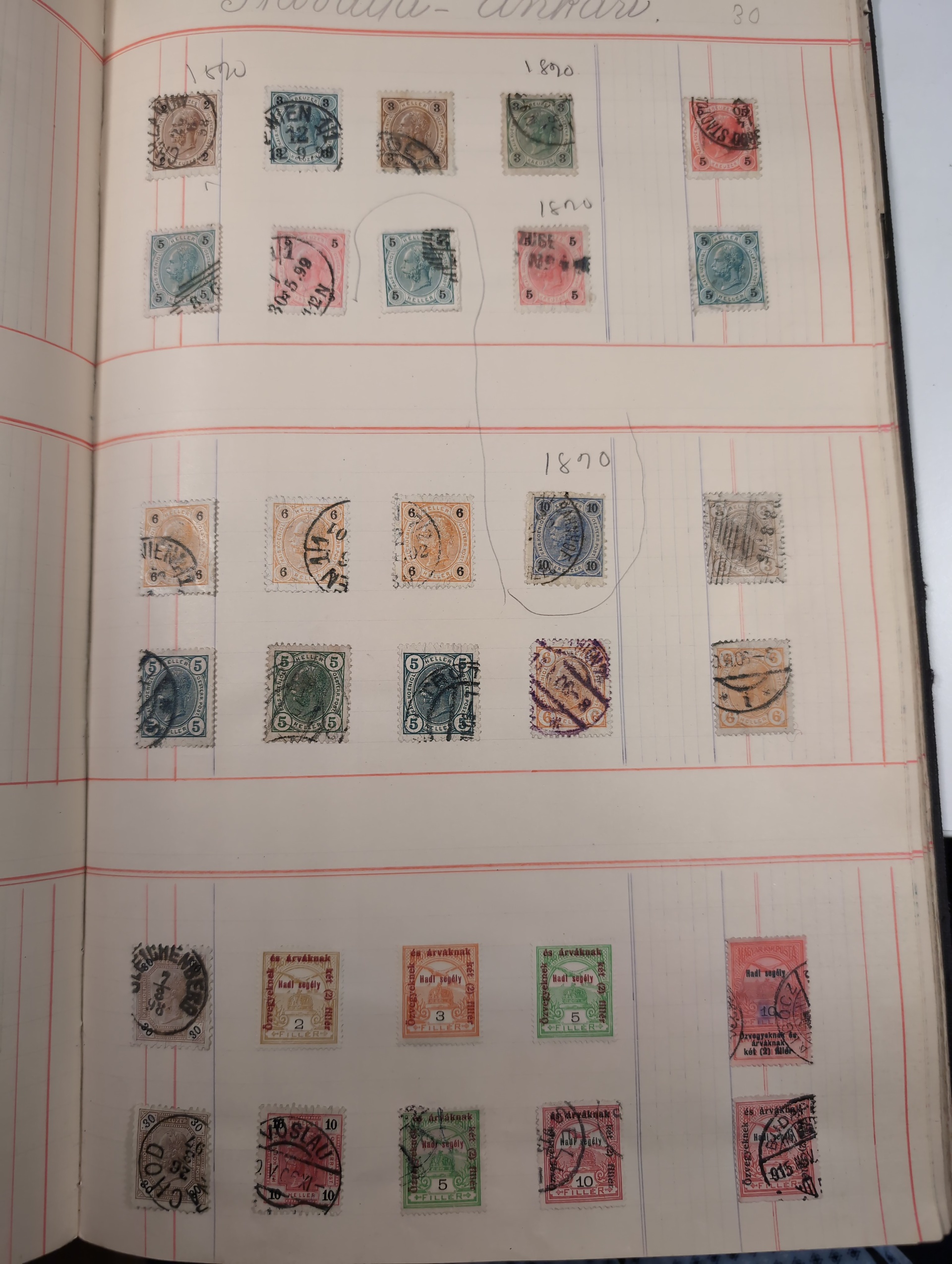ALL WORLD. Collection/accumulation used 1870s–1950s in album. Old tattered album with some better stamps here and there. Please see a selection of scans at www.philea.se. Good quality. (1000s)