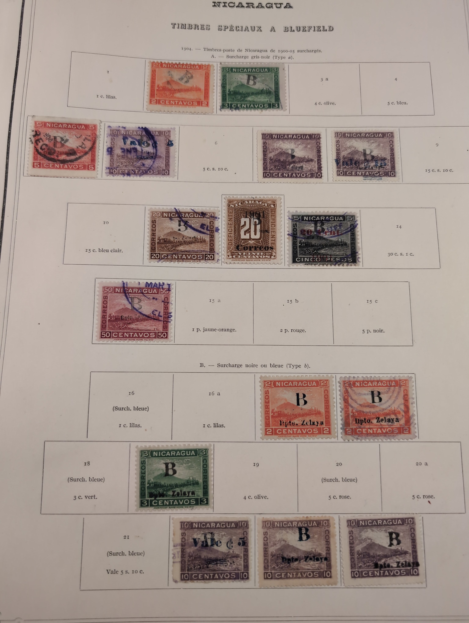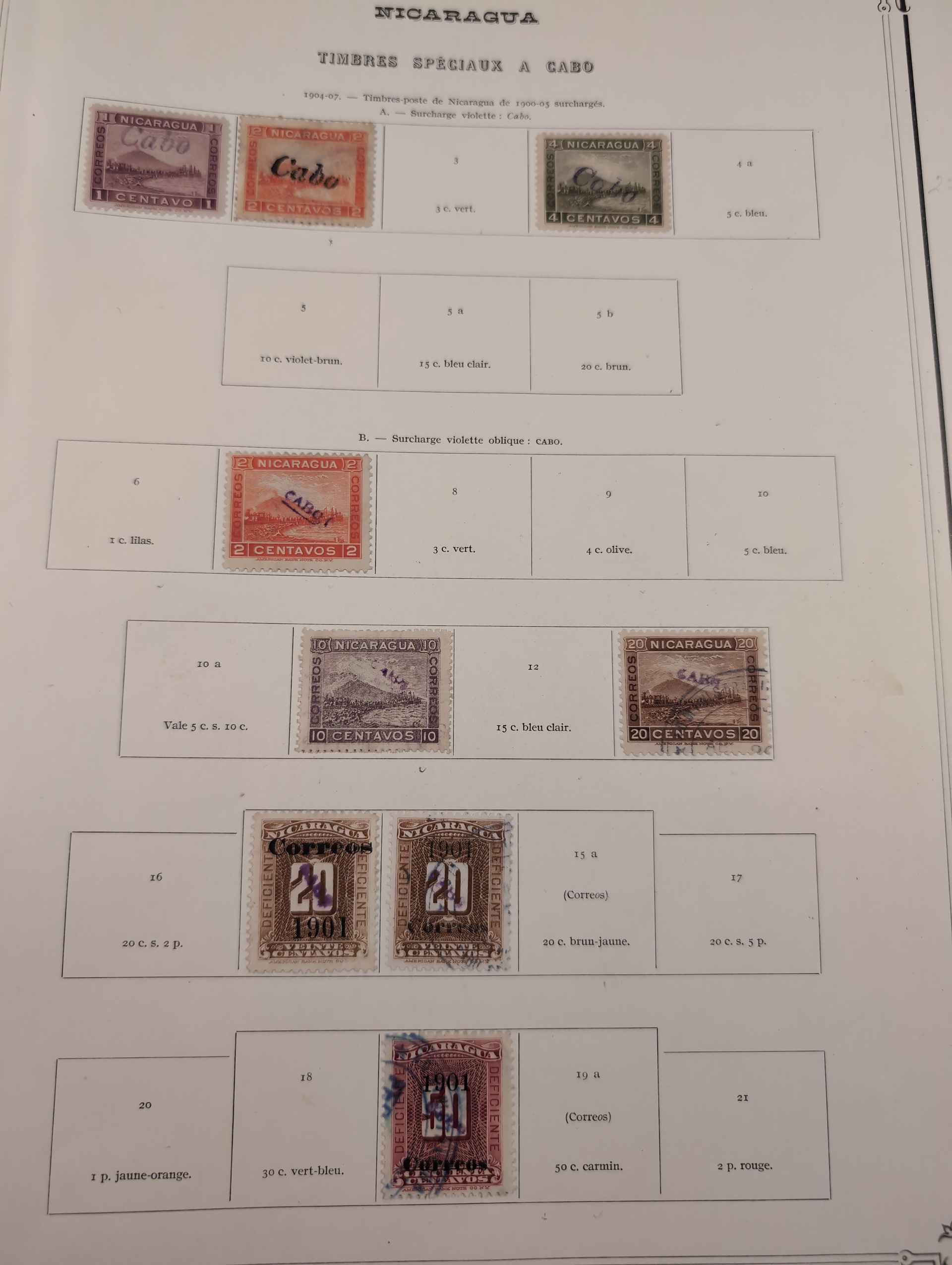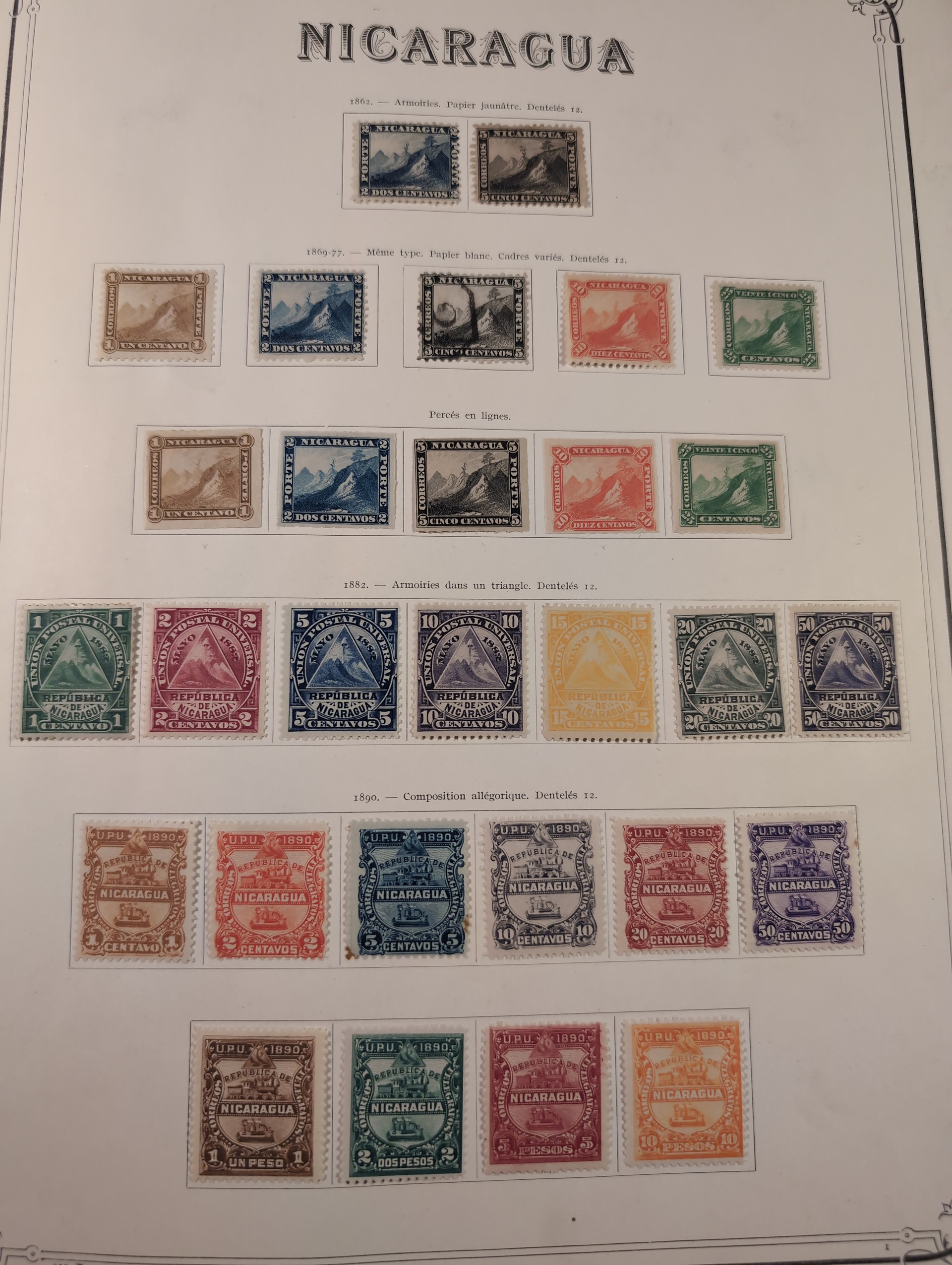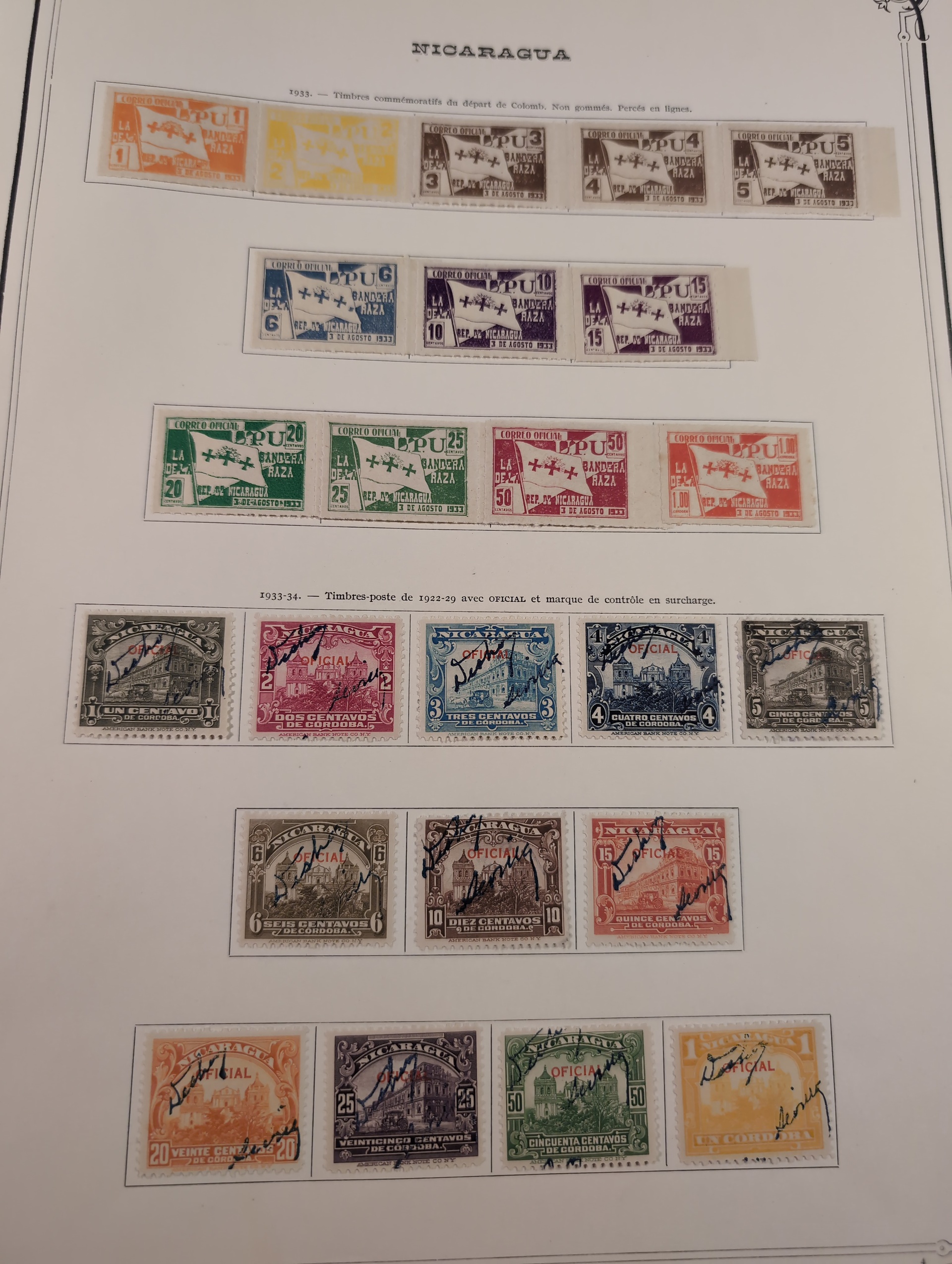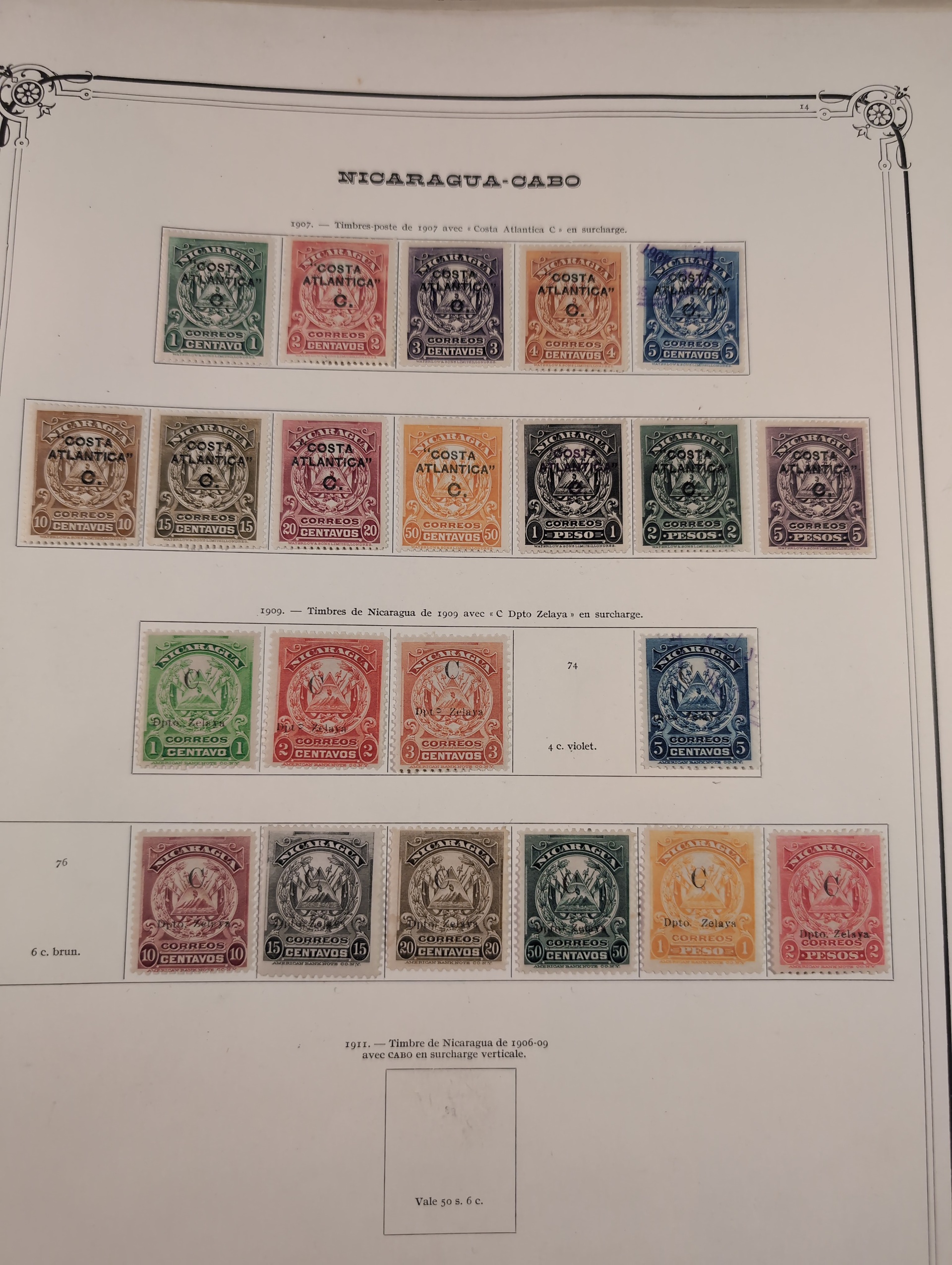 ALL WORLD, LATIN AMERICA. Collection ★/⊙ 1862–1956 in large Y&T album. CUBA and NICARAGUA. Two good collections in one album with plenty of scarcer stamps and sets. Cuba incl. 1874 1p* (thin) and good air mail, Nicaragua incl. Mi 1-2 used, useful Air mails, back of the book and Bluefields and Cabo sections. Mostly fine quality. (about 1000)