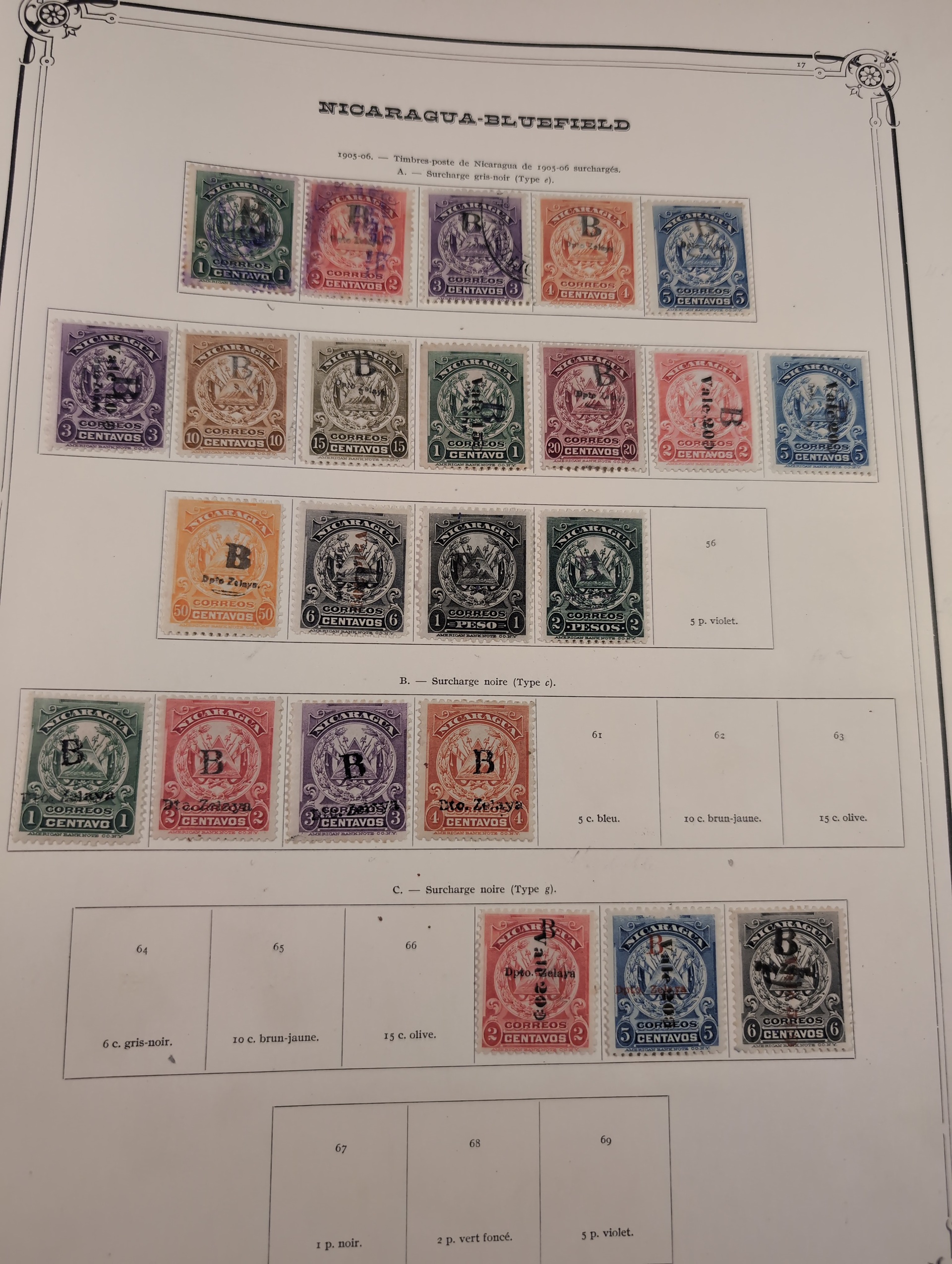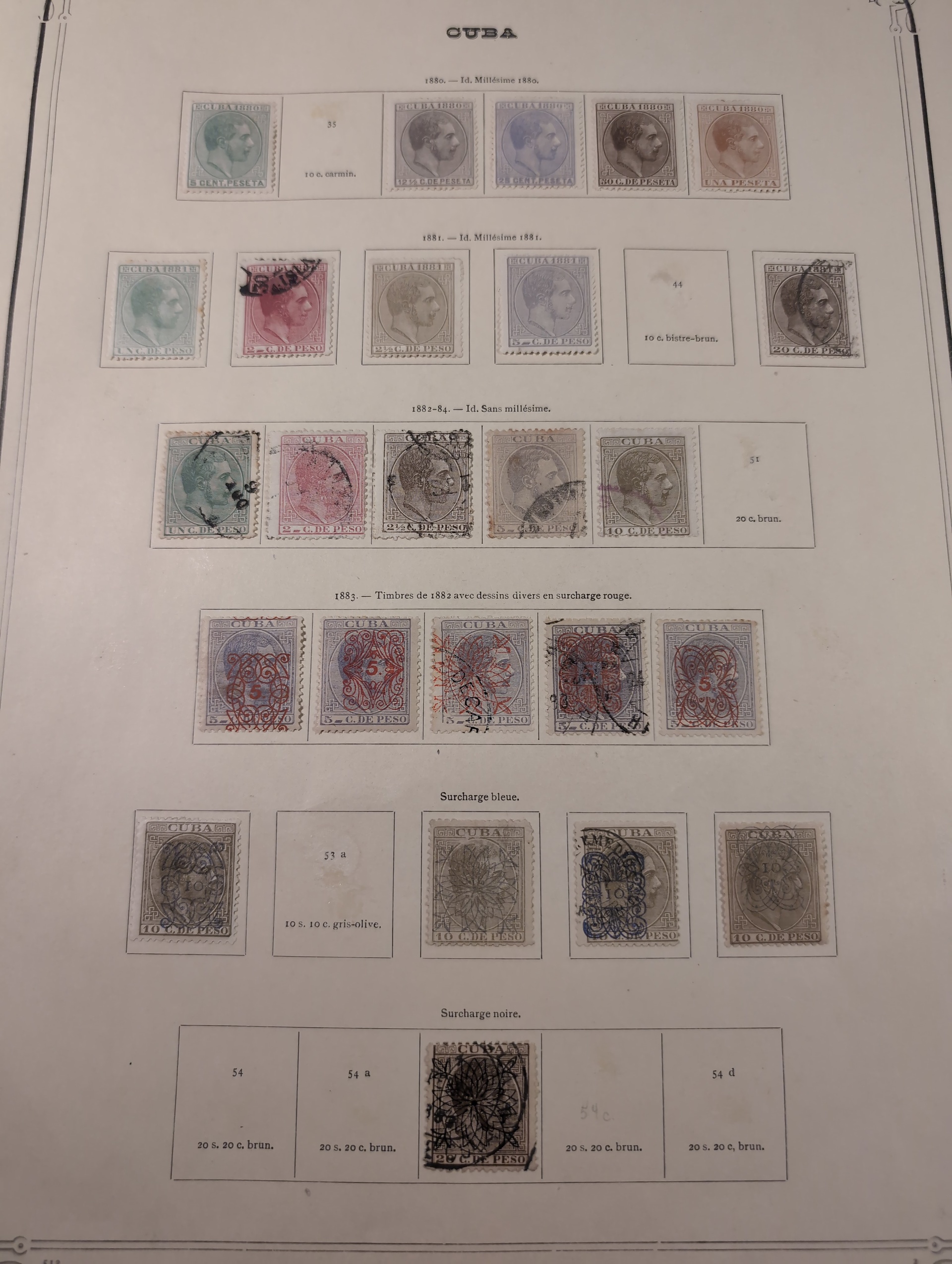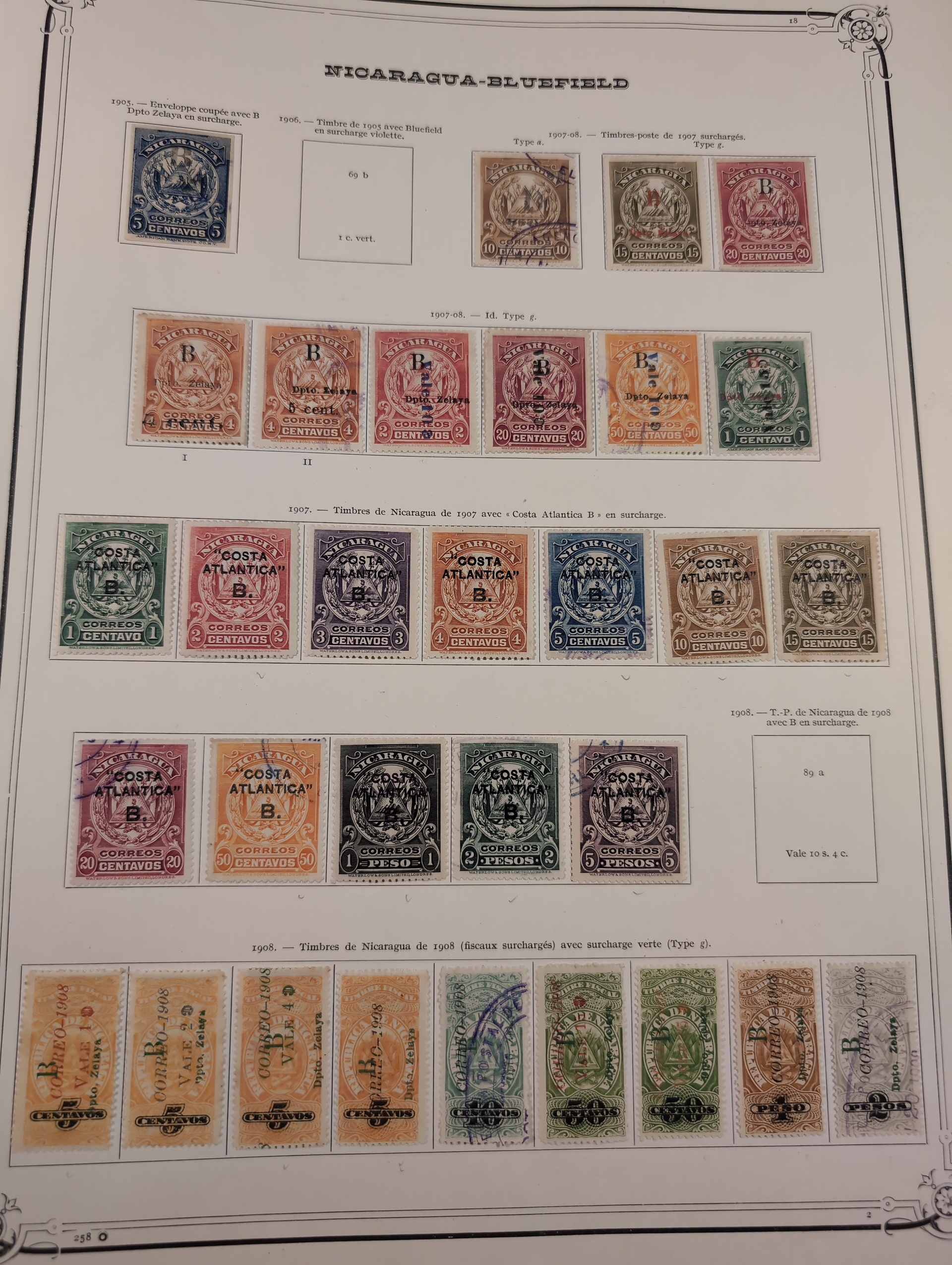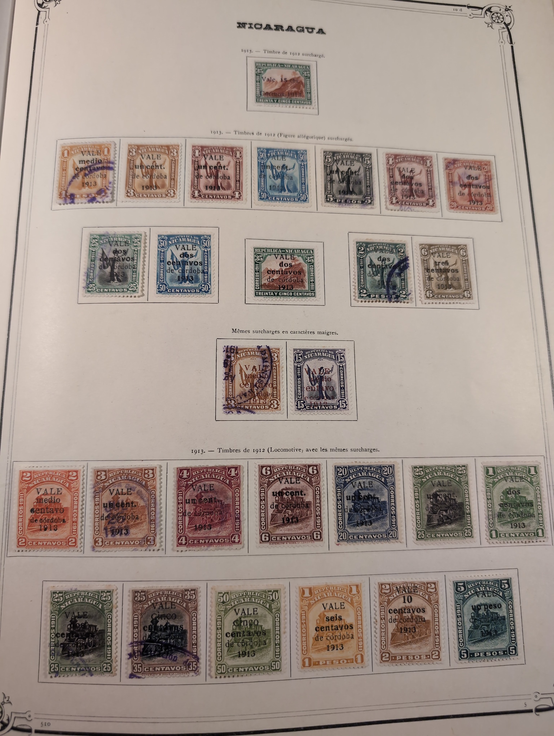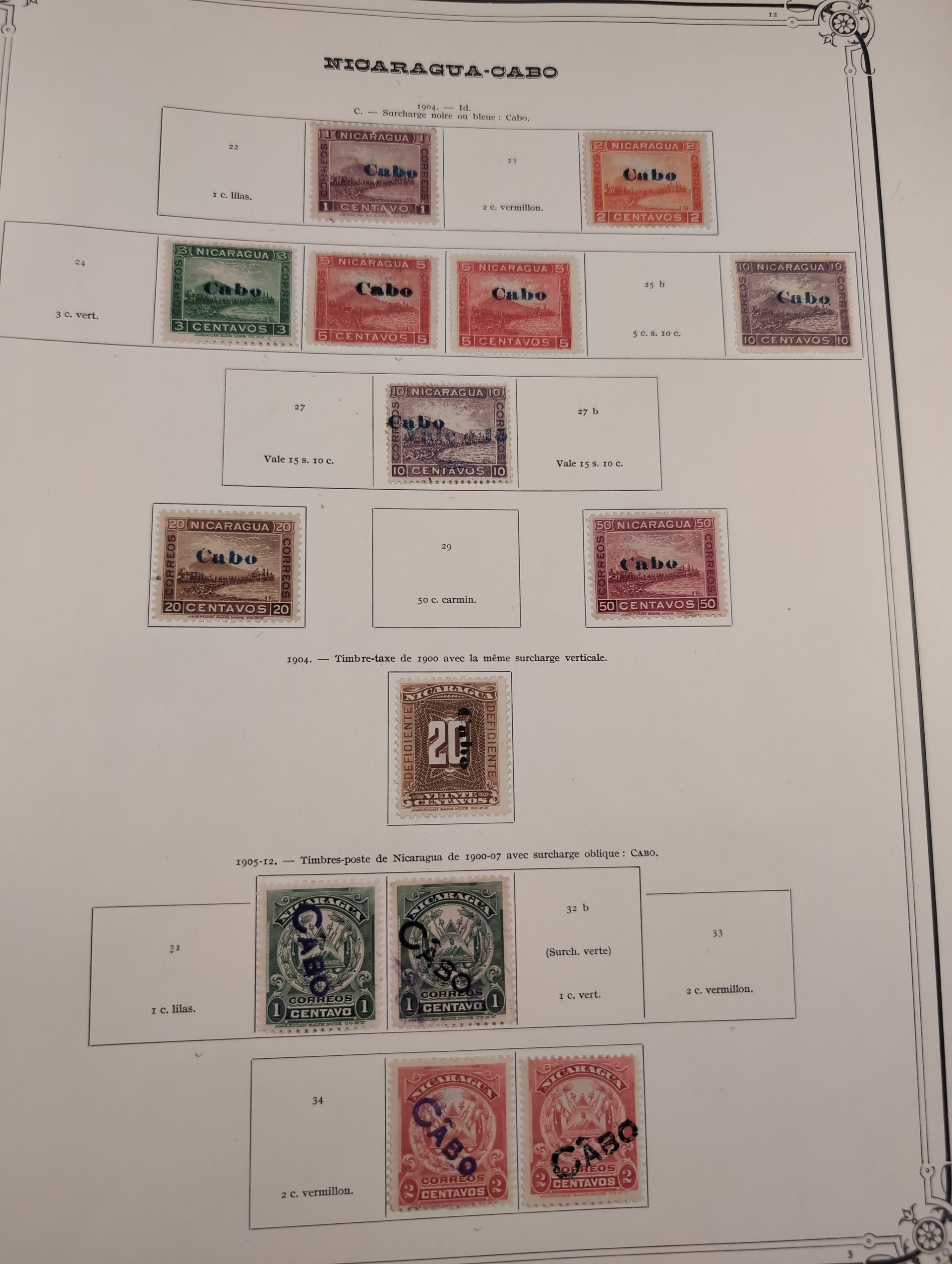 ALL WORLD, LATIN AMERICA. Collection ★/⊙ 1862–1956 in large Y&T album. CUBA and NICARAGUA. Two good collections in one album with plenty of scarcer stamps and sets. Cuba incl. 1874 1p* (thin) and good air mail, Nicaragua incl. Mi 1-2 used, useful Air mails, back of the book and Bluefields and Cabo sections. Mostly fine quality. (about 1000)