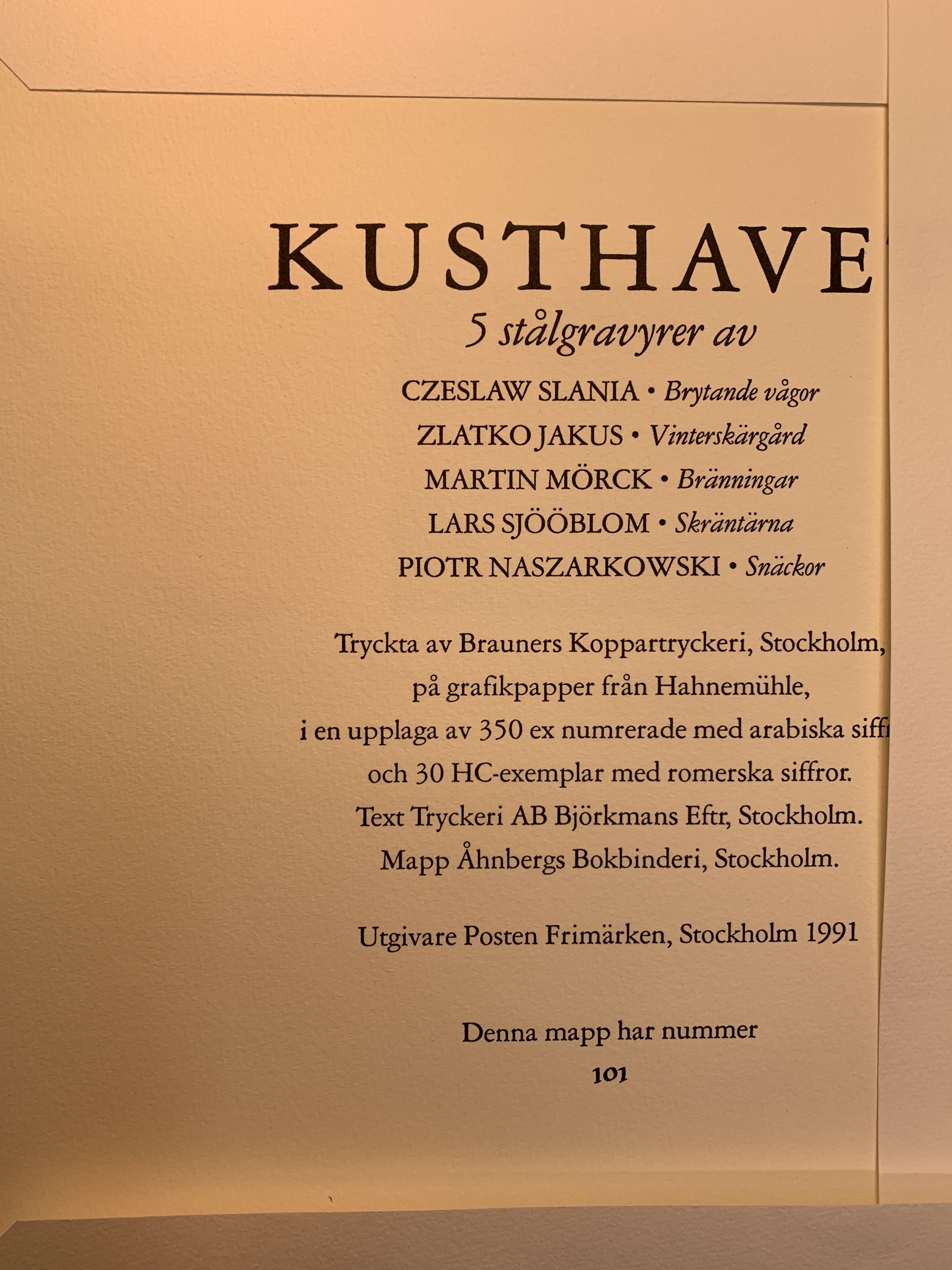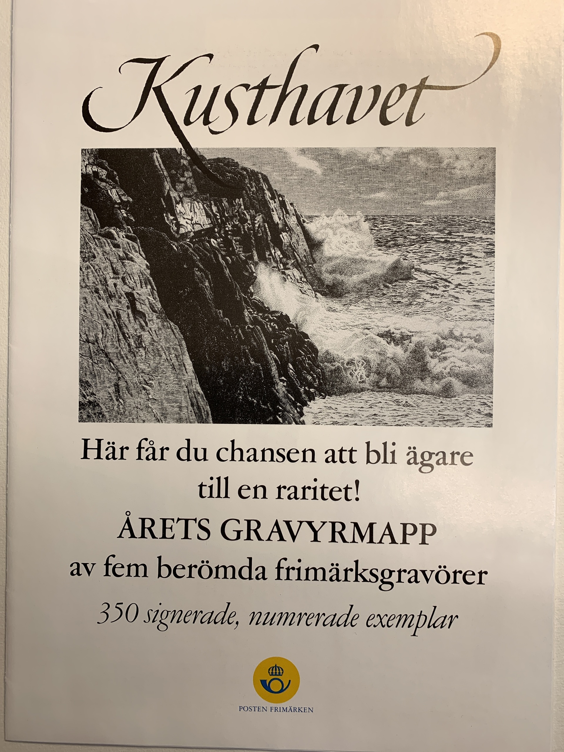 Thematics, Slania. (★). "KUSTHAVET" 101/350. Folder with five engravings. Please see a selection of scans at www.philea.se.