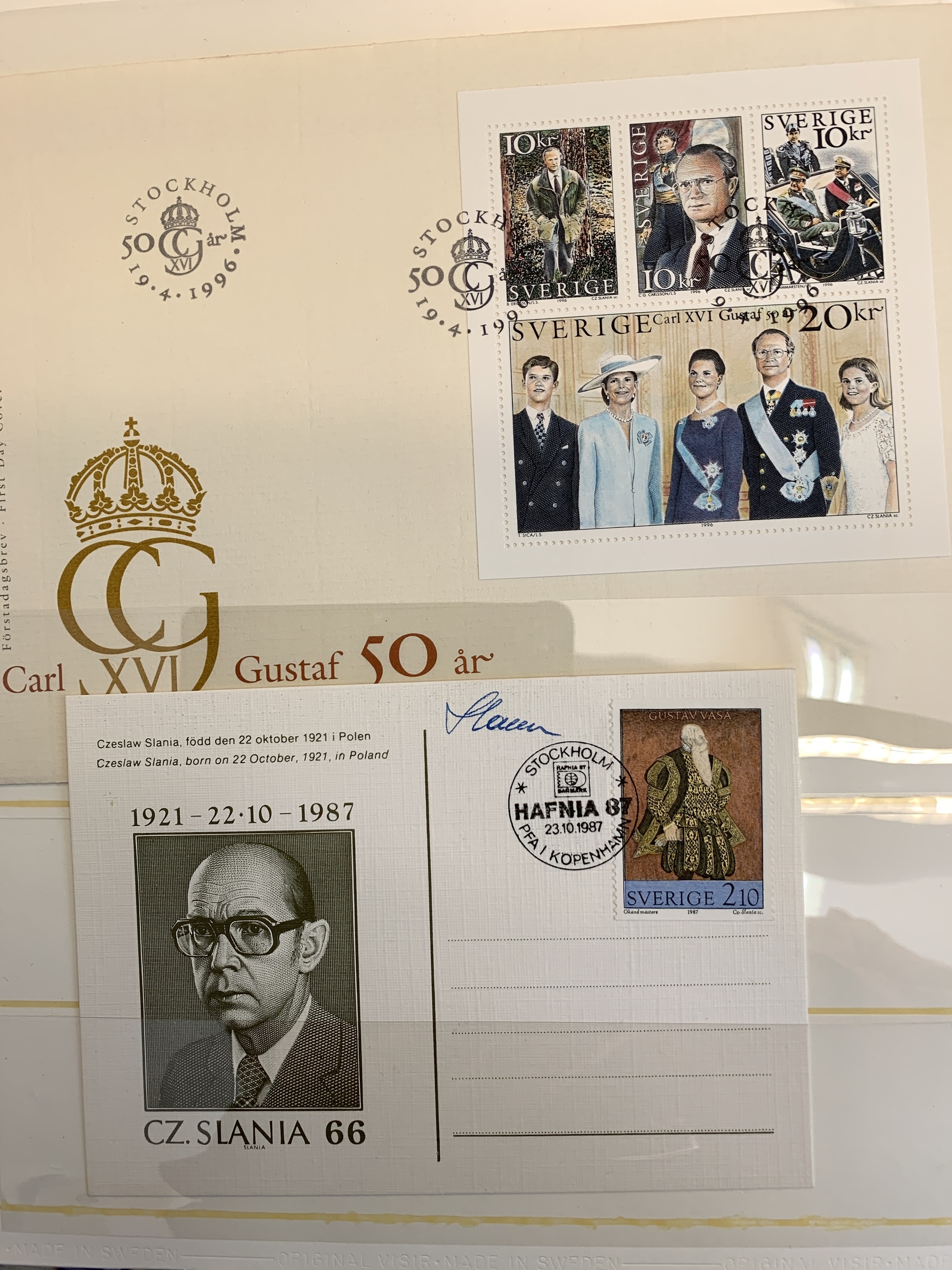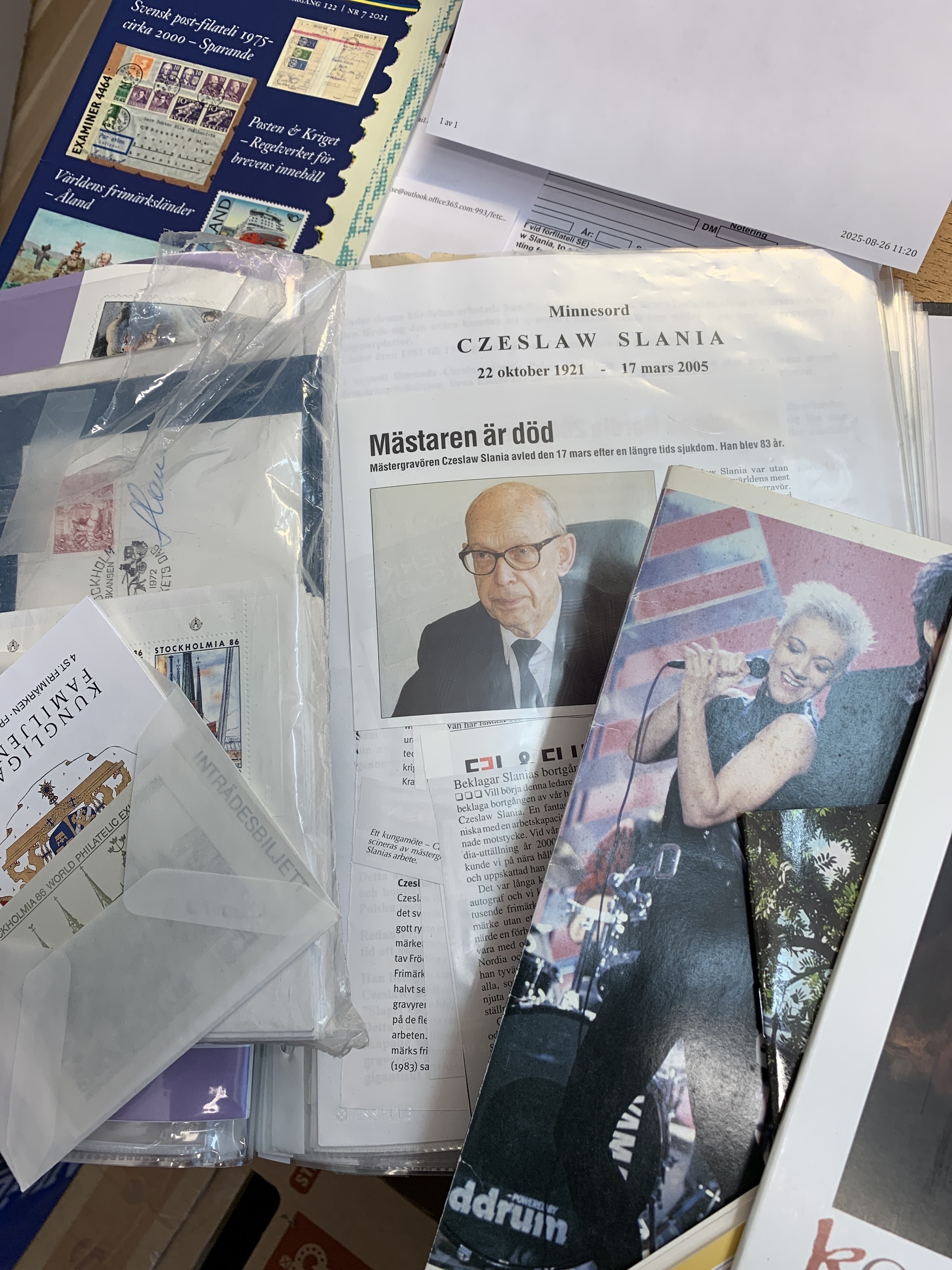 Thematics, Slania. Miscellaneous. Box with several different items, e.g. album with stamps from the Nordic countries, literature and information leaflets. Please inspect! Approx. 8 kg.