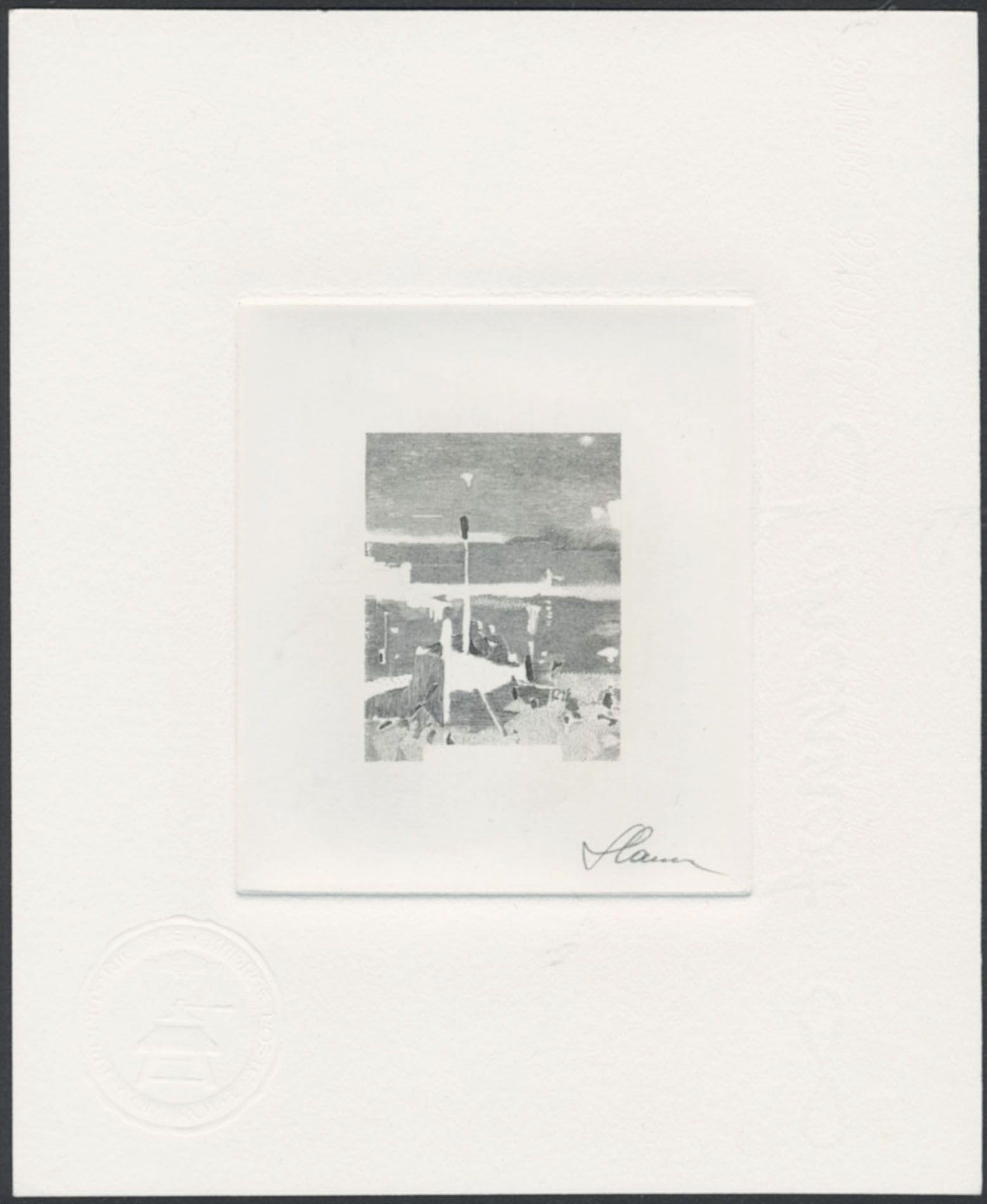 Thematics, Slania, Monaco. Michel 1934. (★). 1989 Belle Epoque VIII 7 Fr. Plate proof in black, signed "Slania".