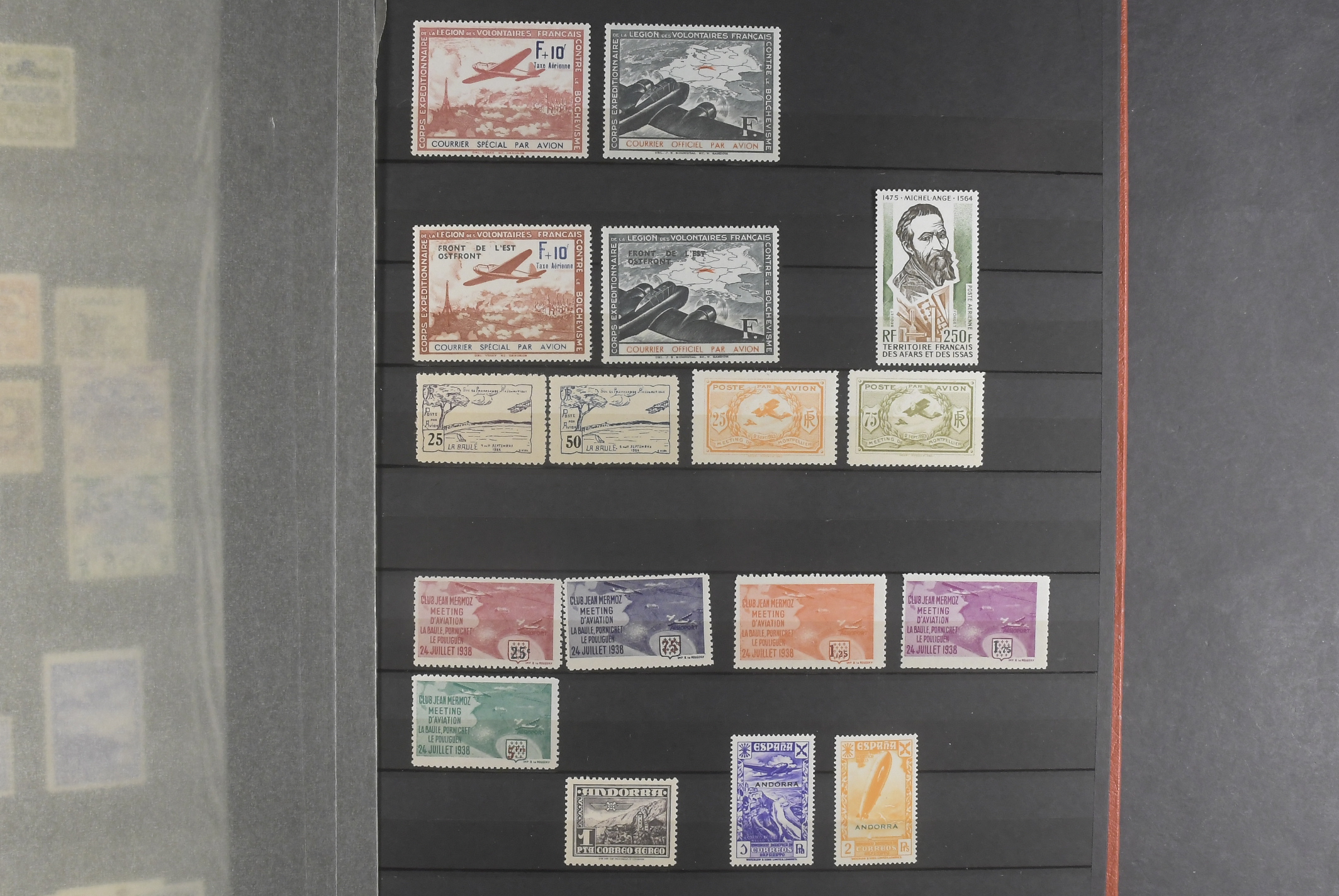 Thematics, Air mail. Collection/accumulation ★★/★/⊙ in album. Many unusual stamps from many different countries, also with some varieties as Soviet Mi 1021Ur (imperf at right) *, local issues. Please see a selection of scans at www.philea.se.