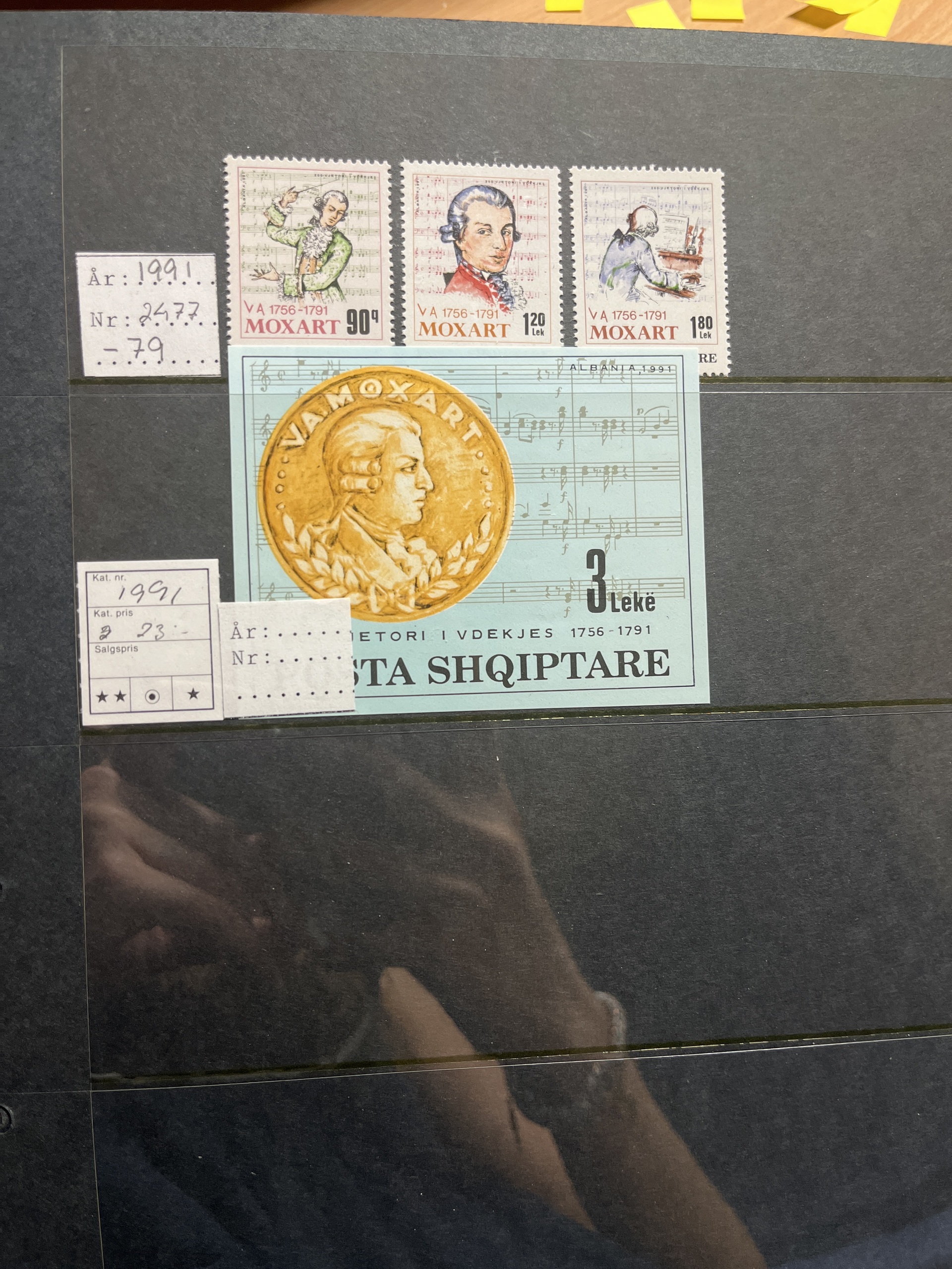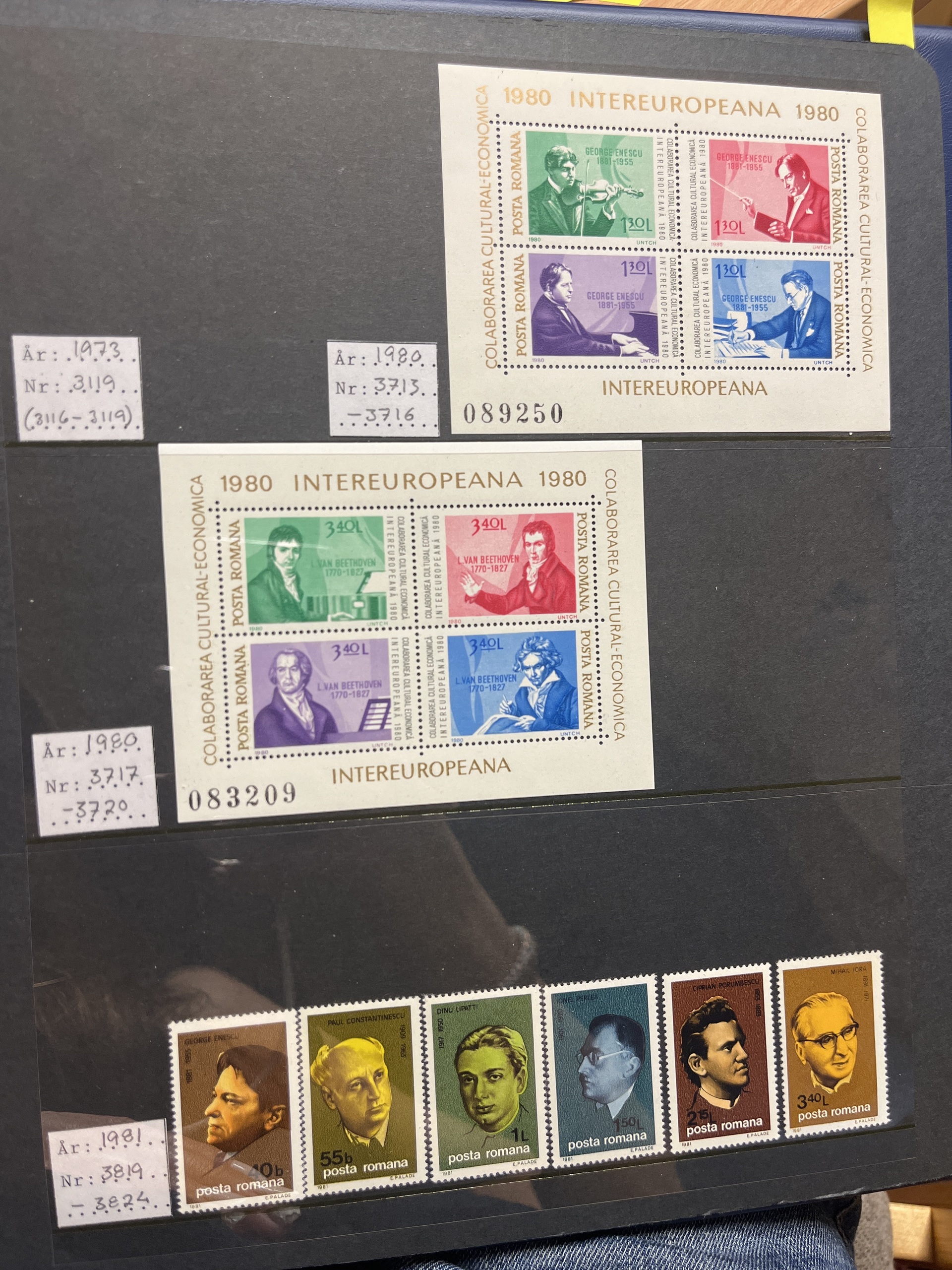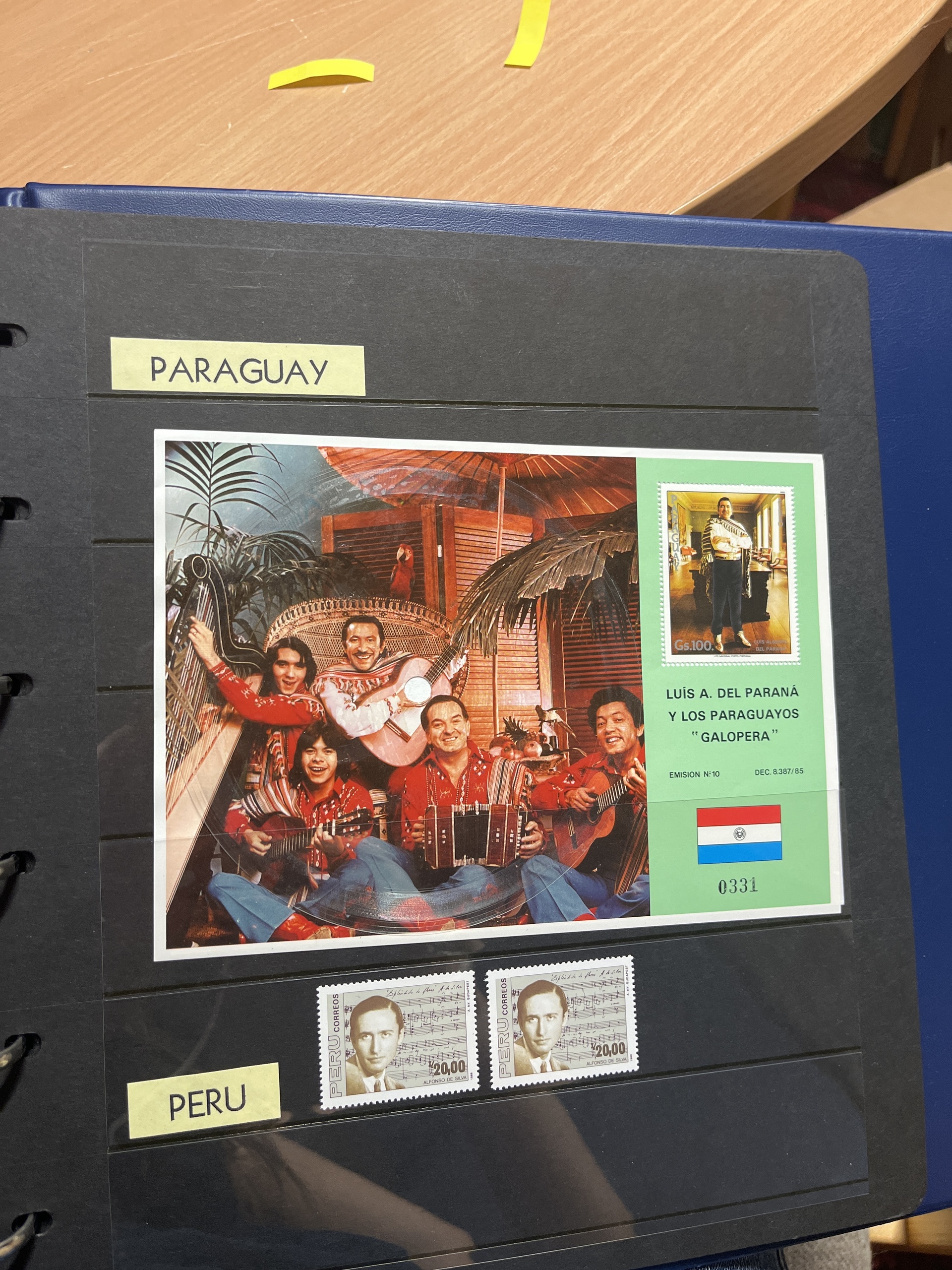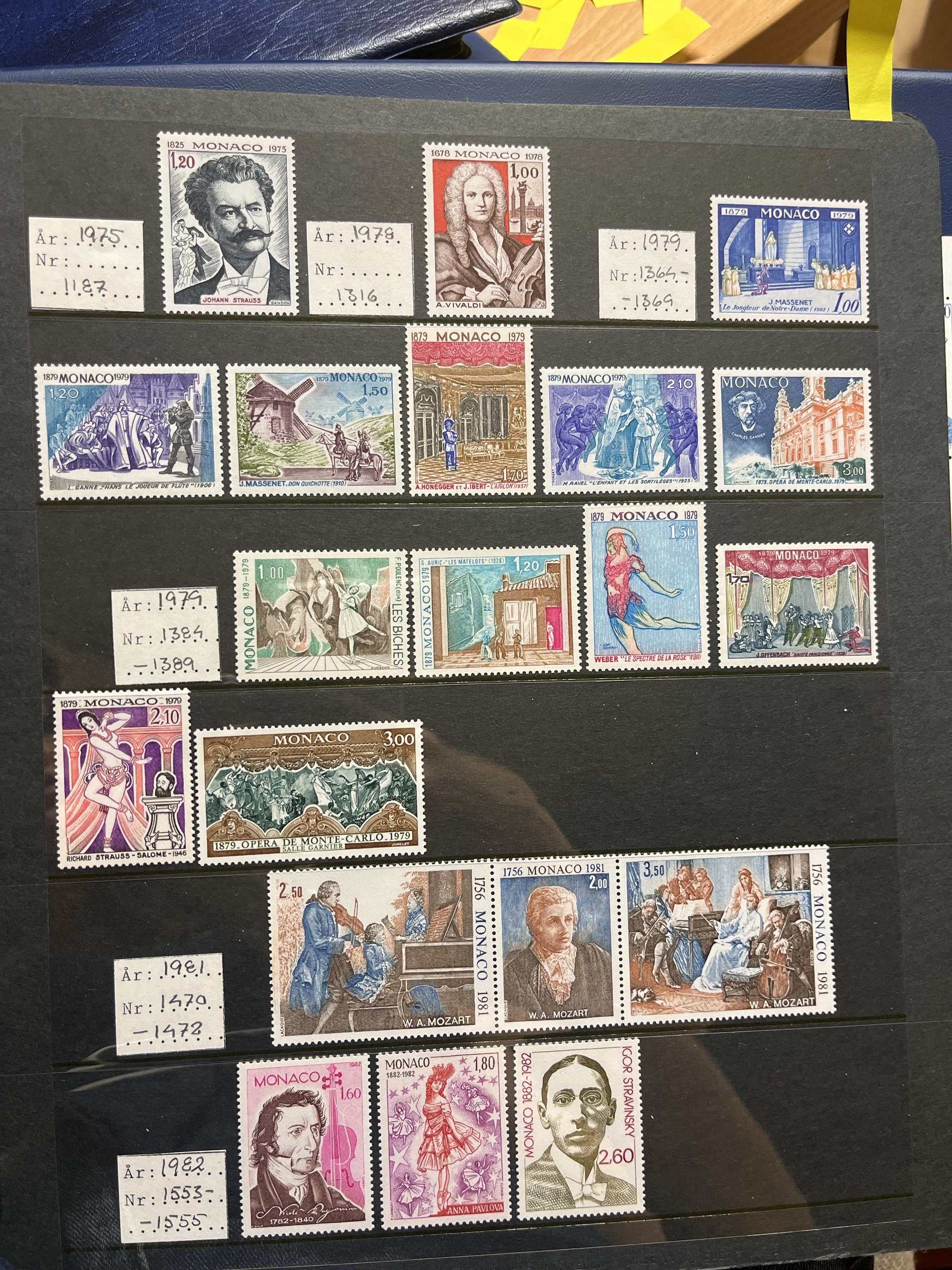 Thematics, Music. Collection/accumulation ★★/★/⊙ 1920s–1990s in medium removal box. Eleven visiralbums with much xx sets and souvenir sheets. Some better stamps included. Please see a selection of scans at www.philea.se. Mostly good quality. Approx. 16 kg. (1000s)