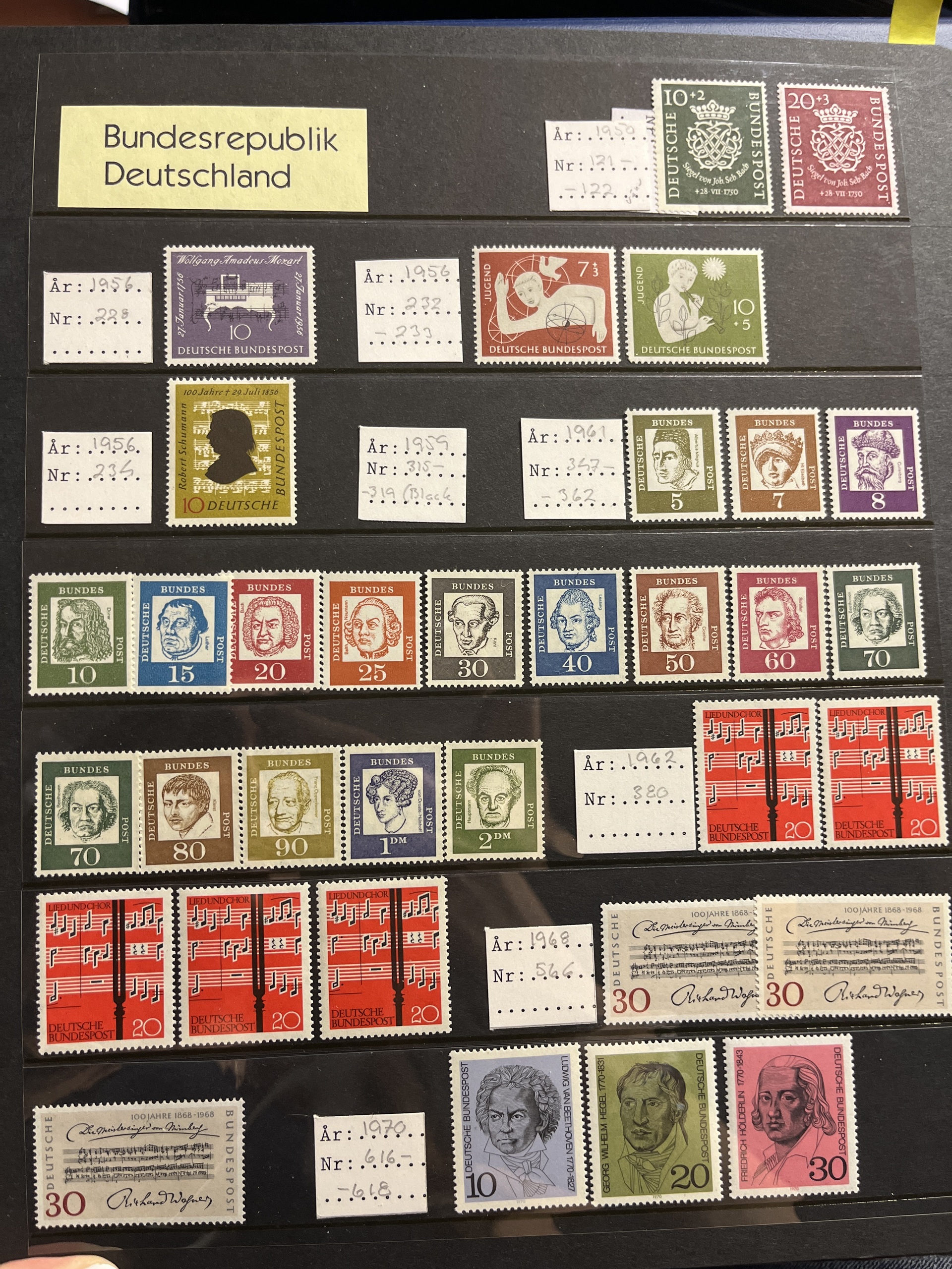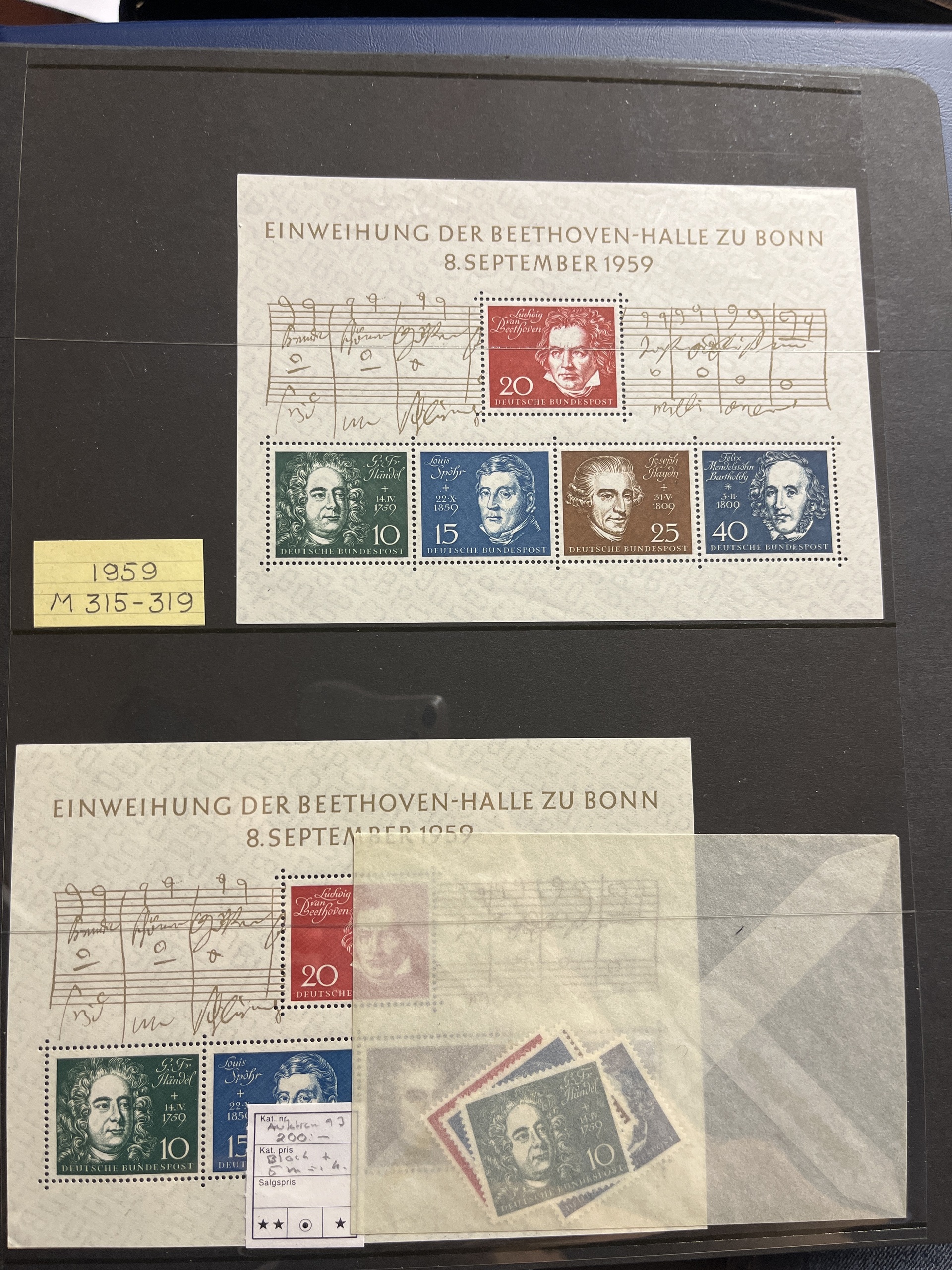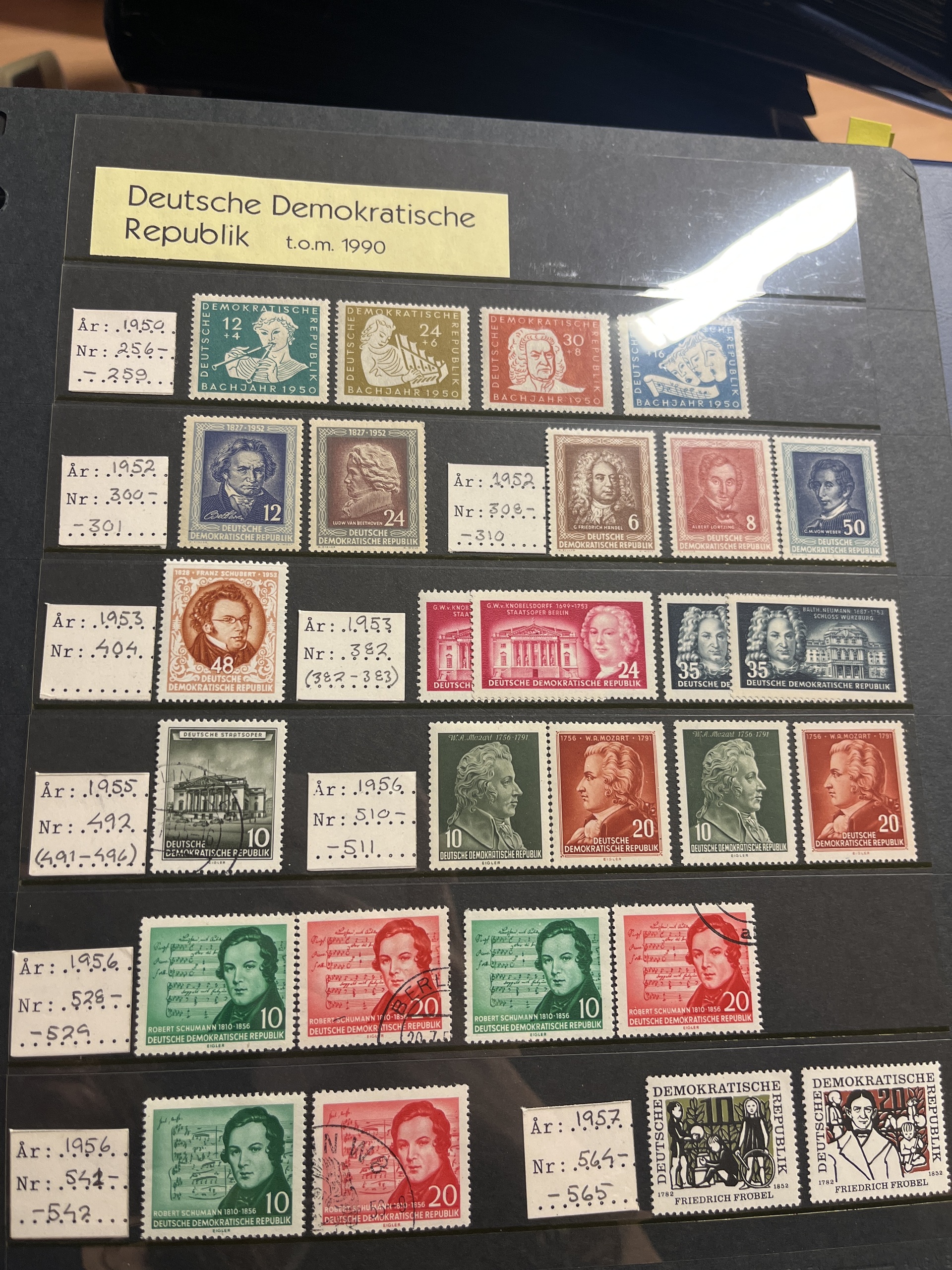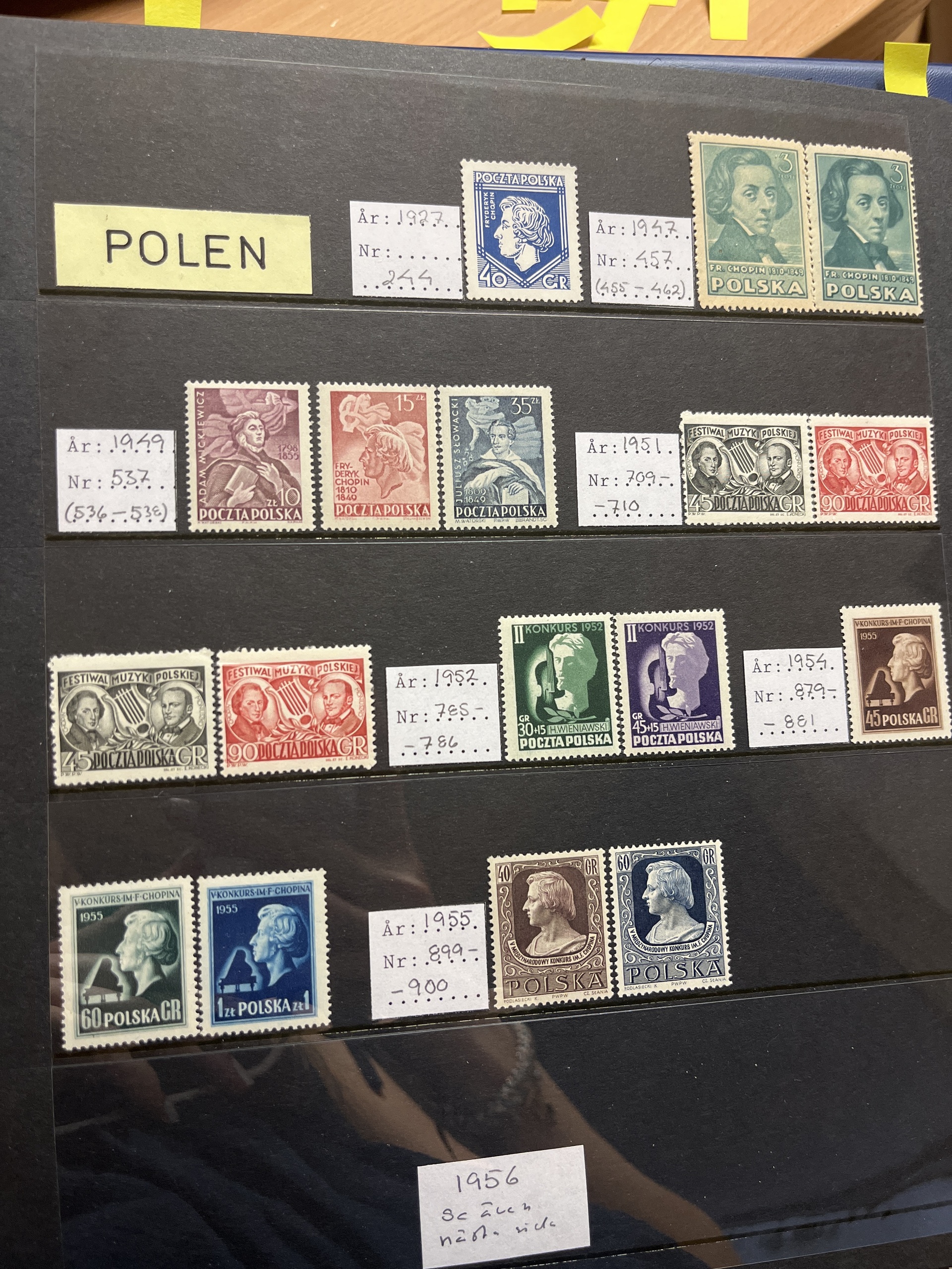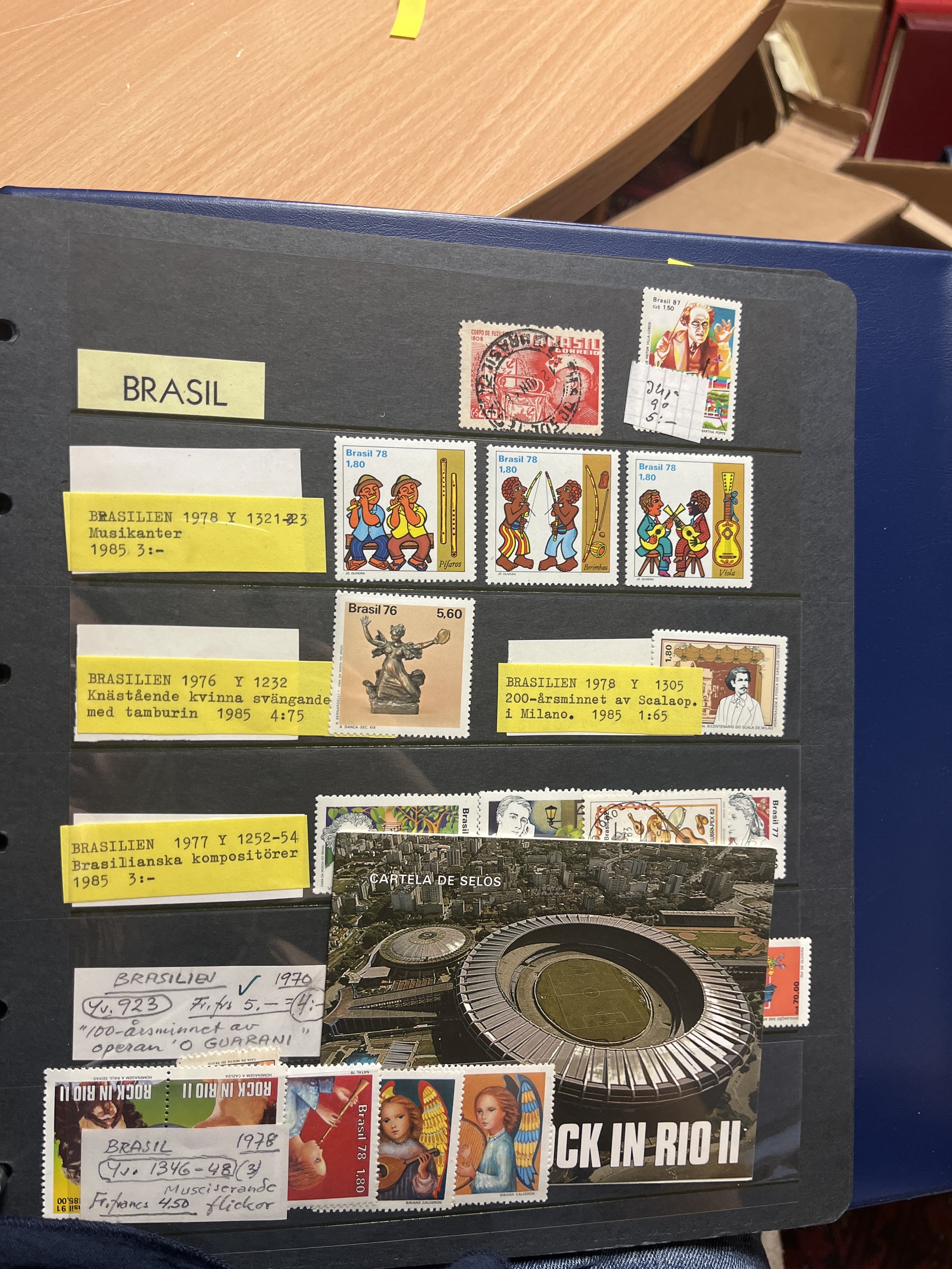 Thematics, Music. Collection/accumulation ★★/★/⊙ 1920s–1990s in medium removal box. Eleven visiralbums with much xx sets and souvenir sheets. Some better stamps included. Please see a selection of scans at www.philea.se. Mostly good quality. Approx. 16 kg. (1000s)
